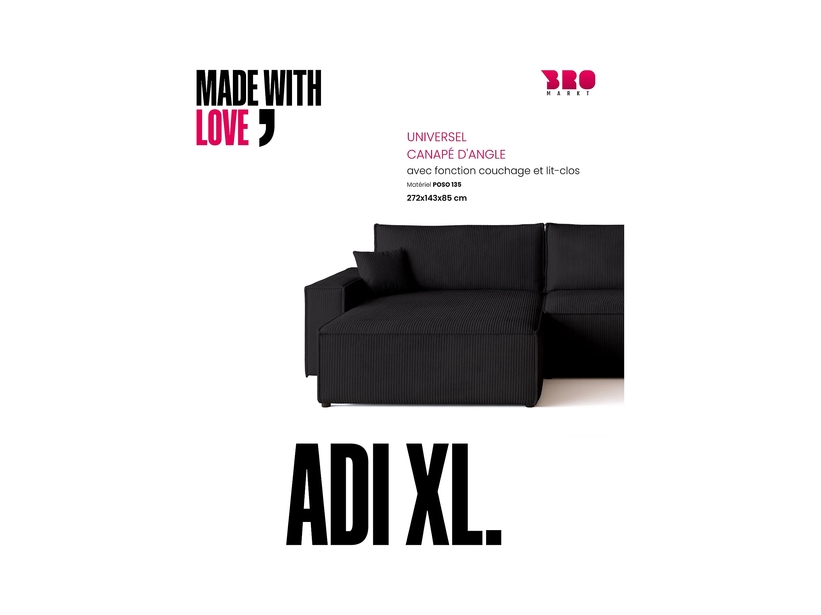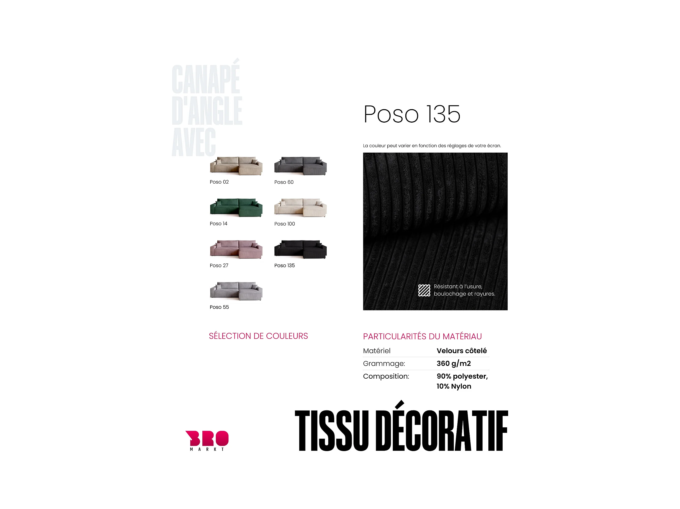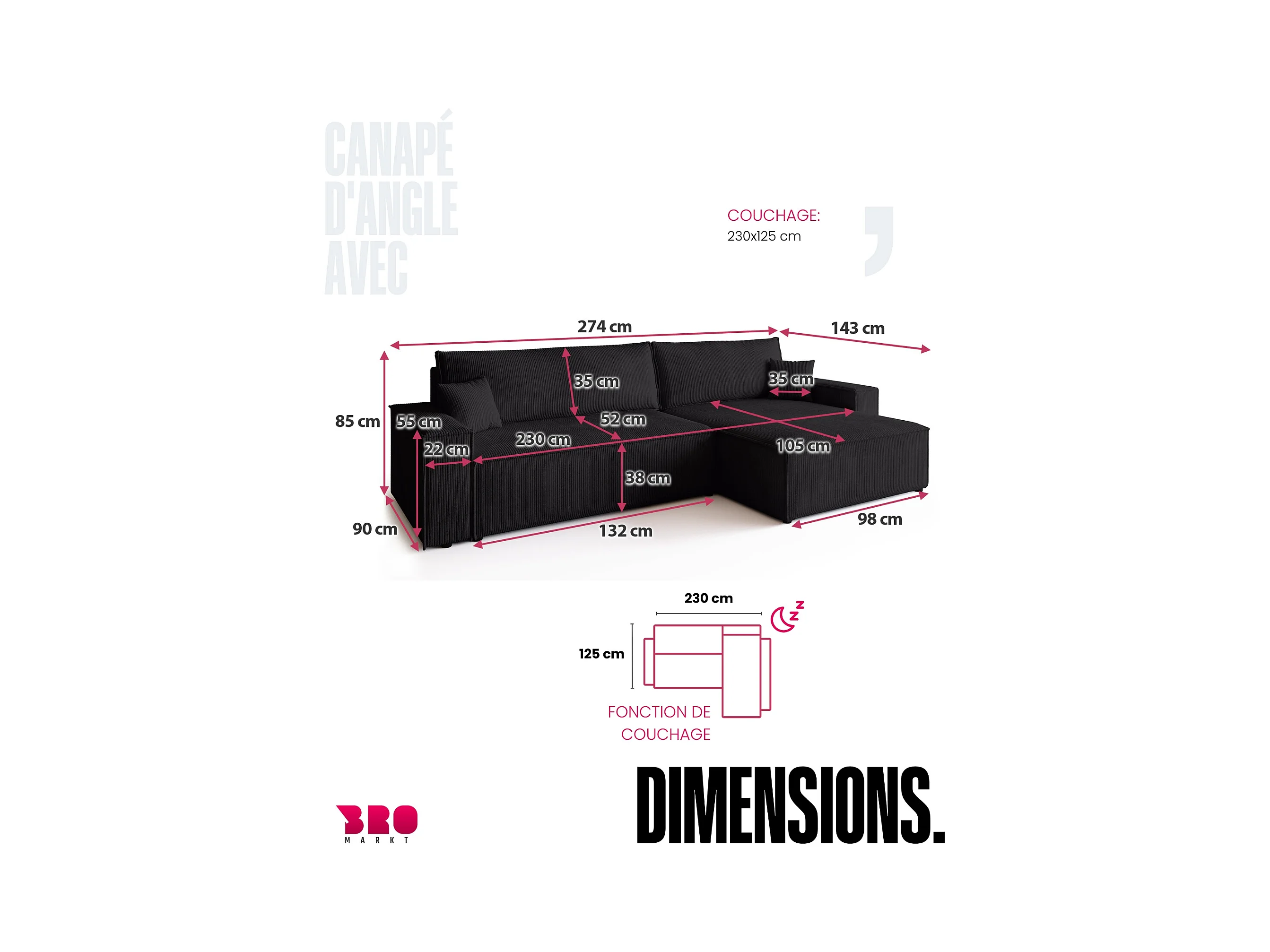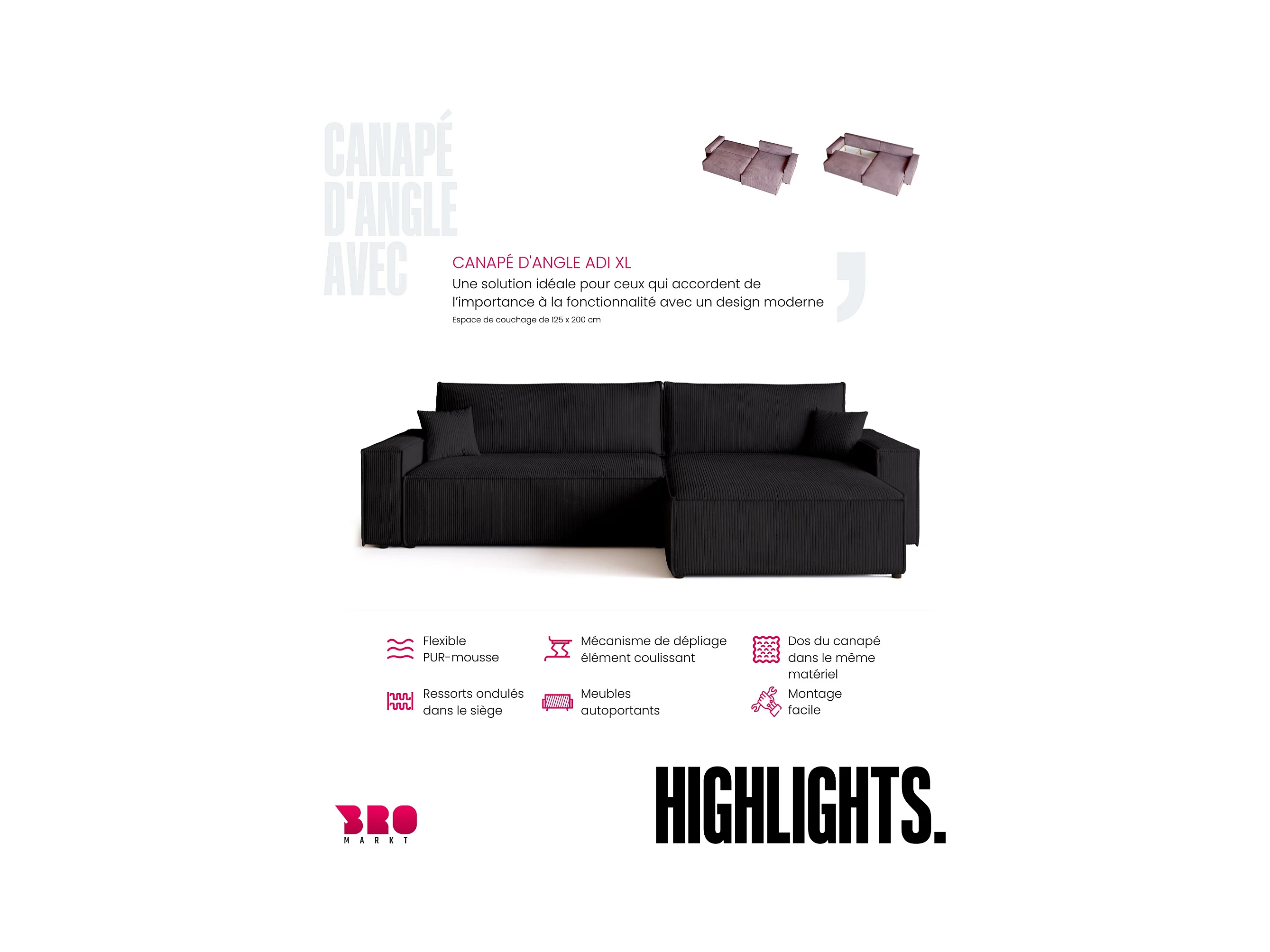 Hoekbankbed in ribfluweel JIMMY Zwart