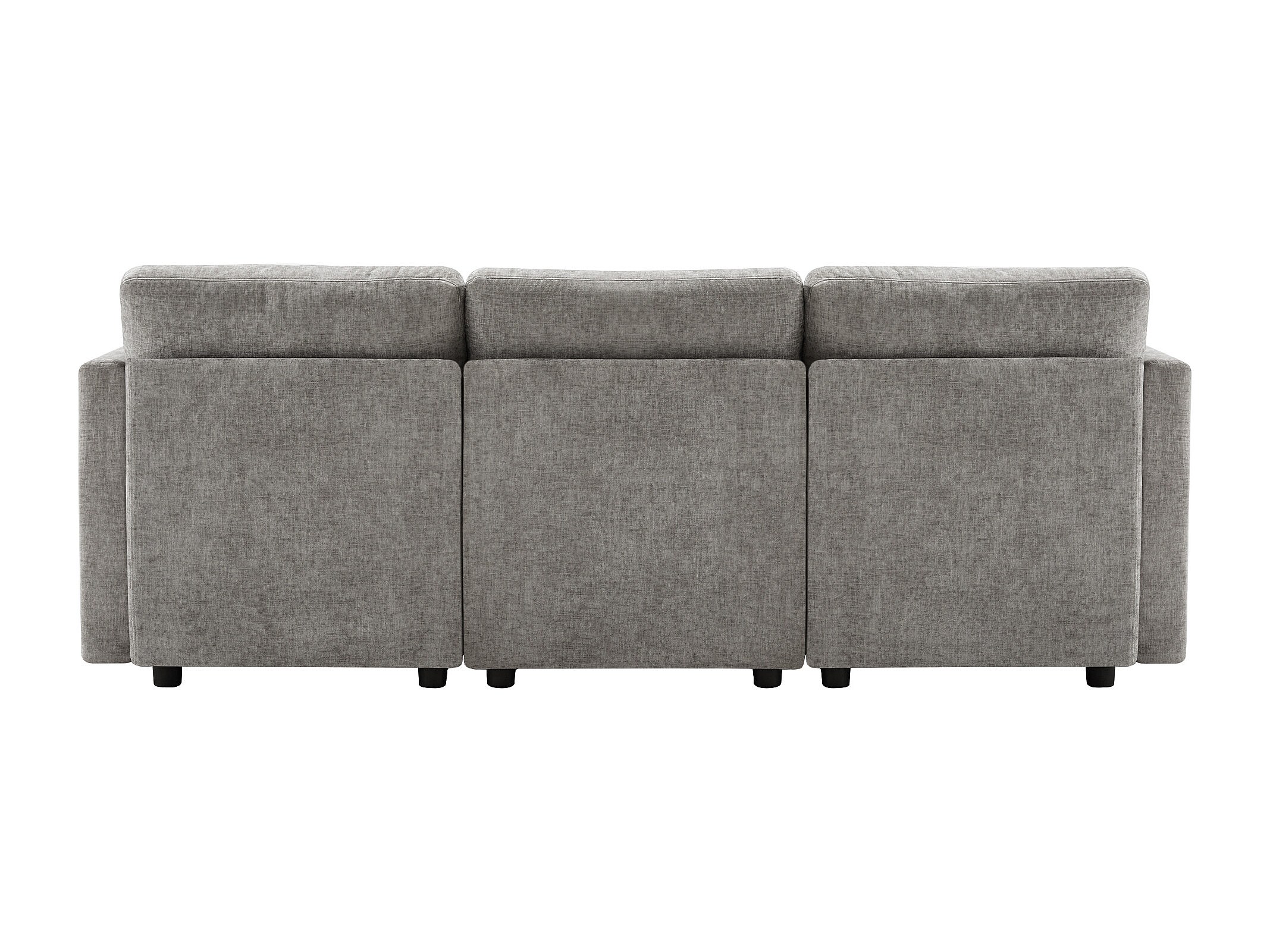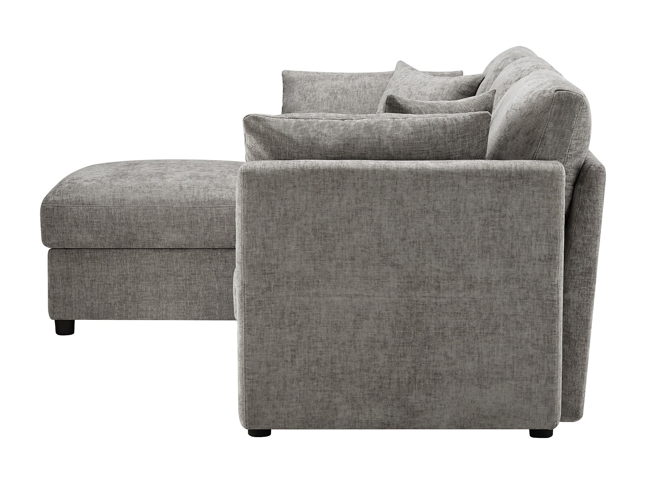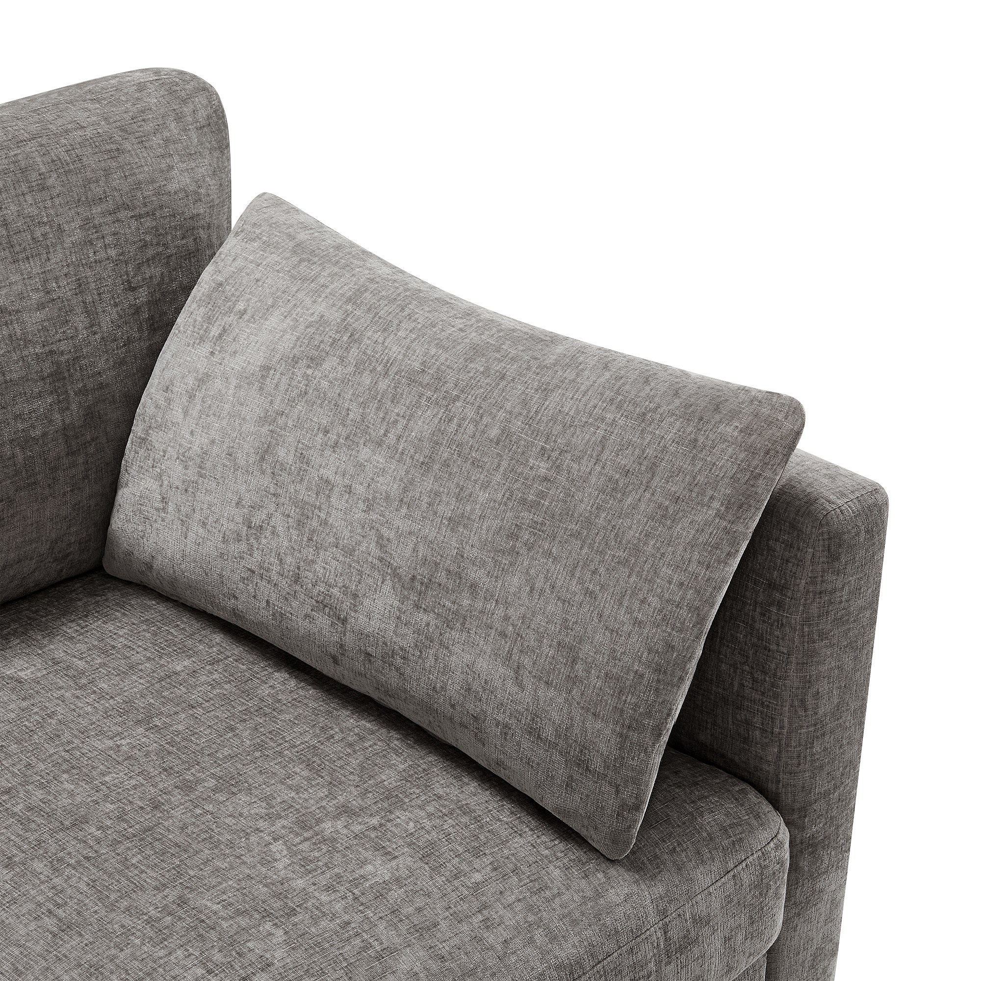 Grijze hoekbank - 3-zitsbank met 3 kussens en 2 hoofdsteunen - chenille