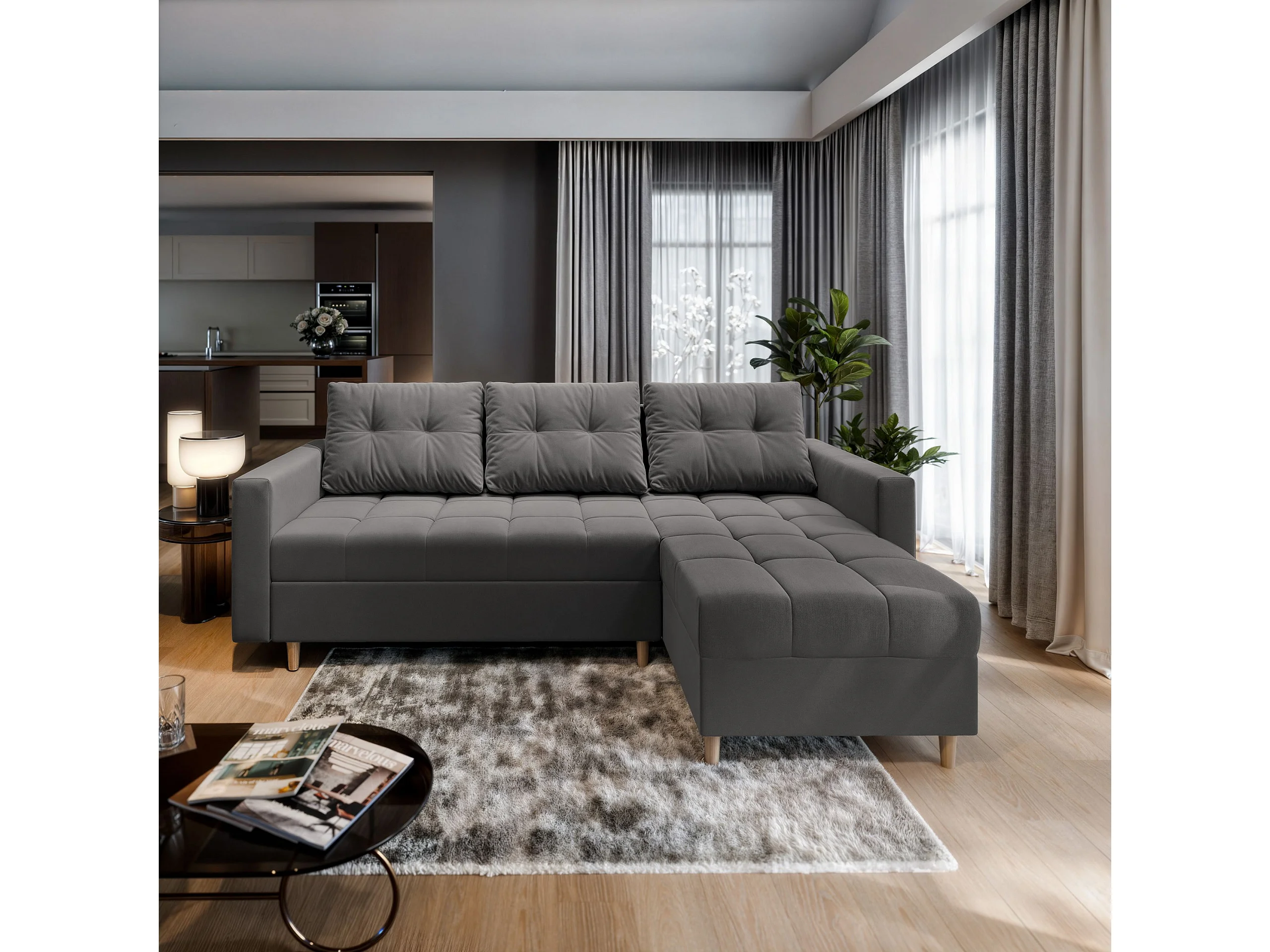 Hoekbank MILO van fluweel met slaapfunctie Grau