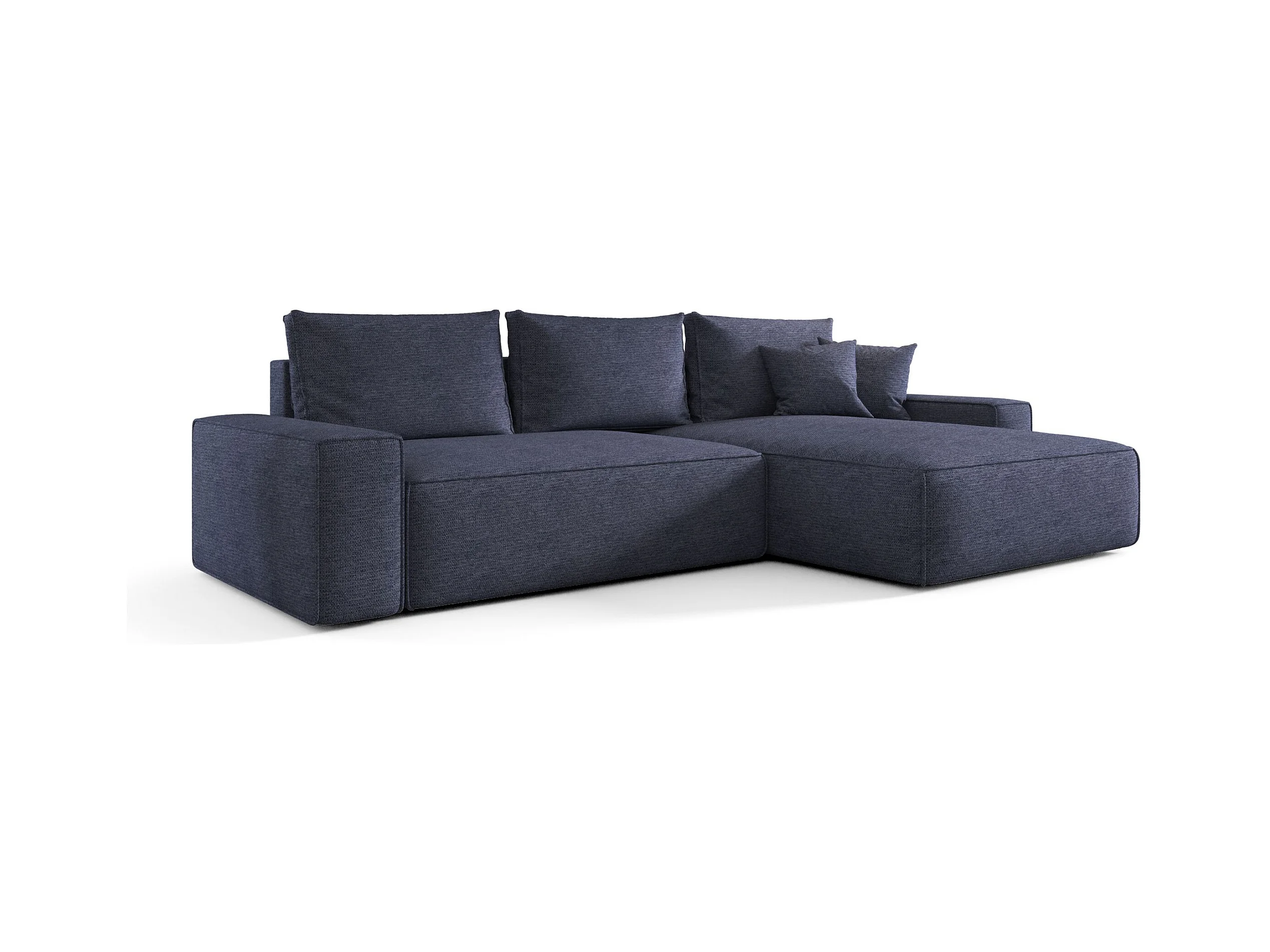 HOEKBANK EMILY met slaapfunctie Poso 05 Donkerblauw Rechts L-vorm bank met opbergruimte, slaapbank, woonkamerbank