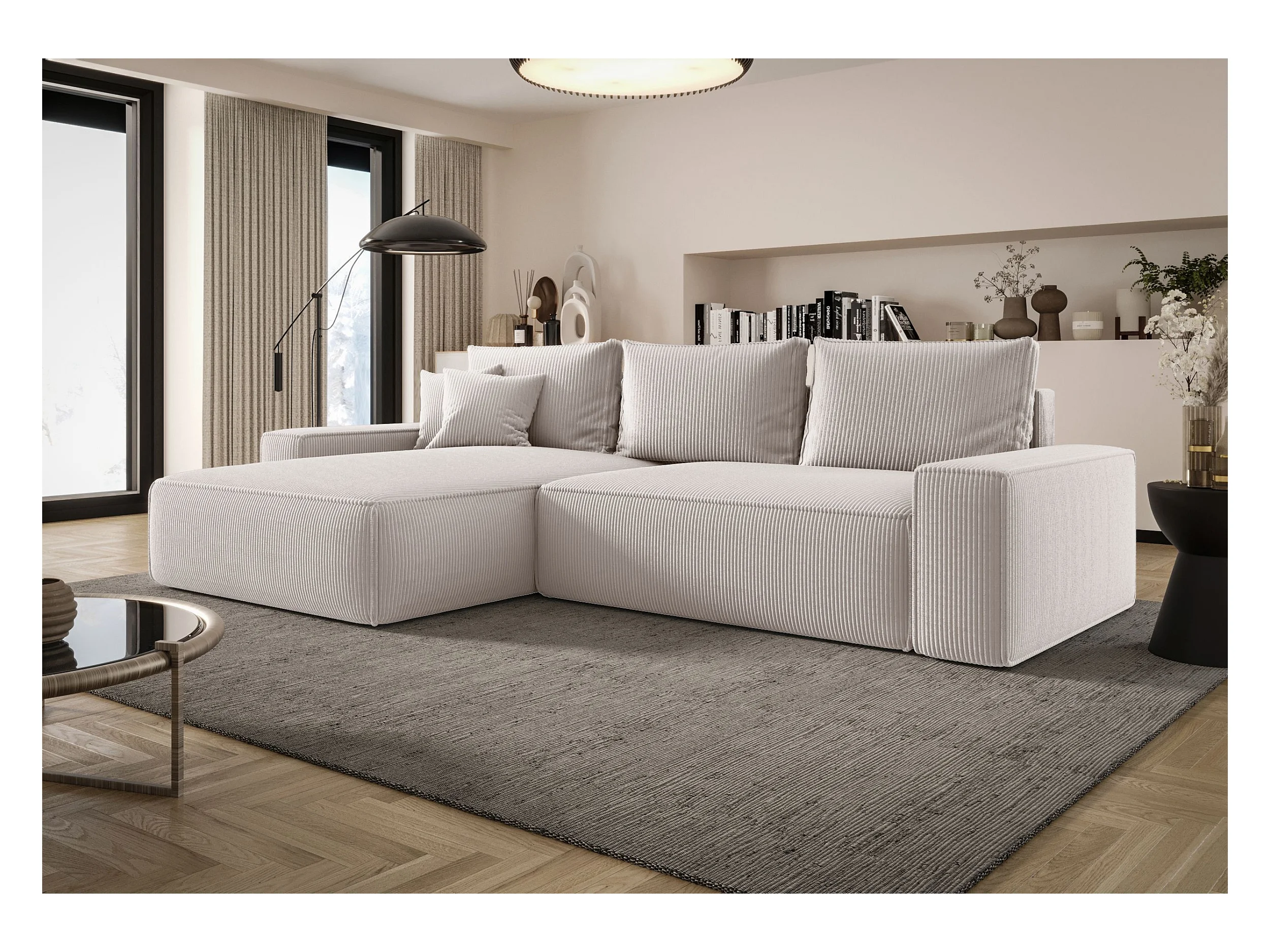 Hoekbank MONA met slaapfunctie POSO 100 ecru links L-vormige bank met opbergruimte woonkamerbank slaapbank