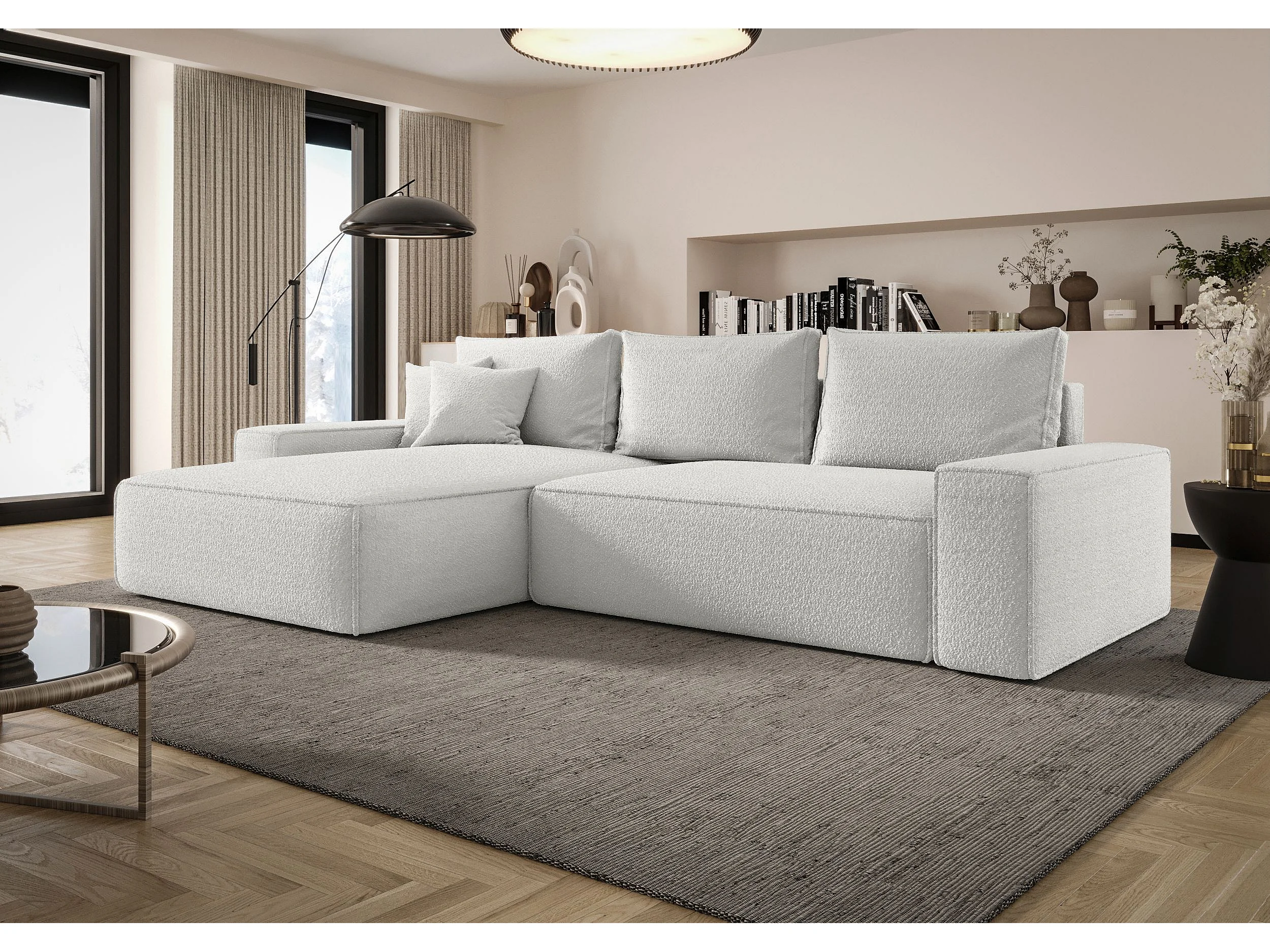 Hoekbank met slaapfunctie LUCAS Quelle 01 wit links L-vormige bank met opbergruimte woonkamerbank, slaapbank, bank met opbergruimte