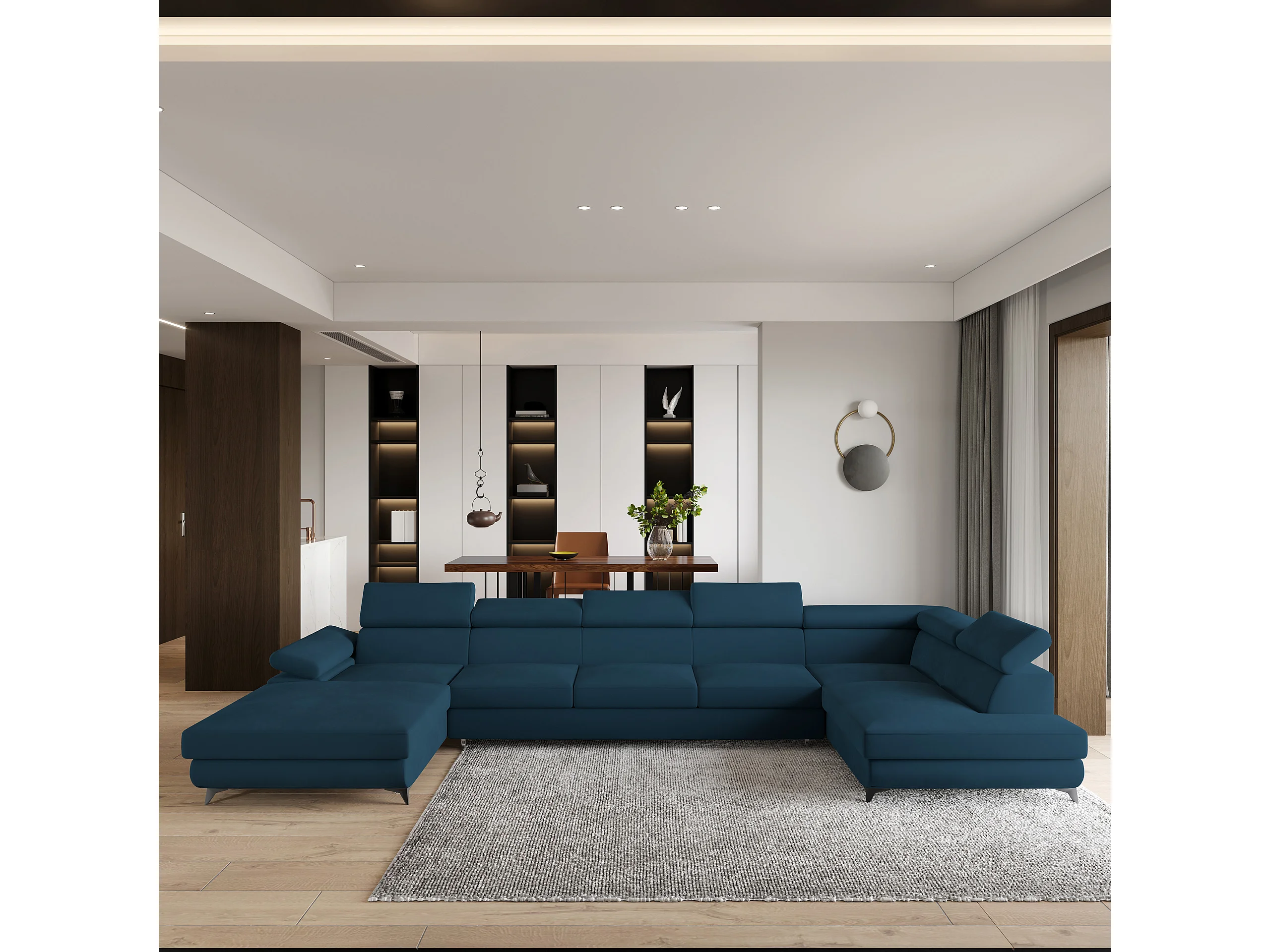 Hoekbank MONTIVA van fluweel met slaapfunctie Blau