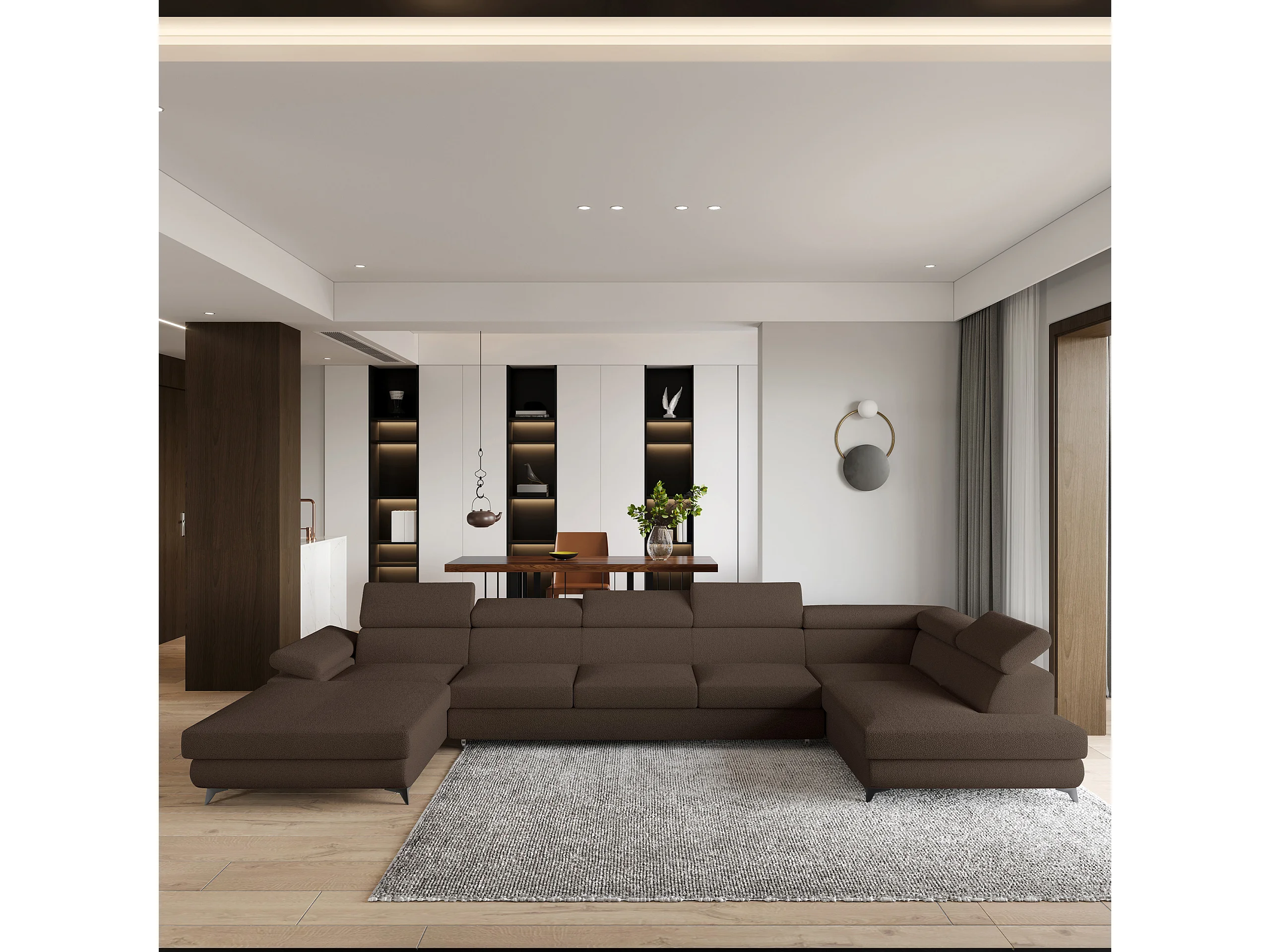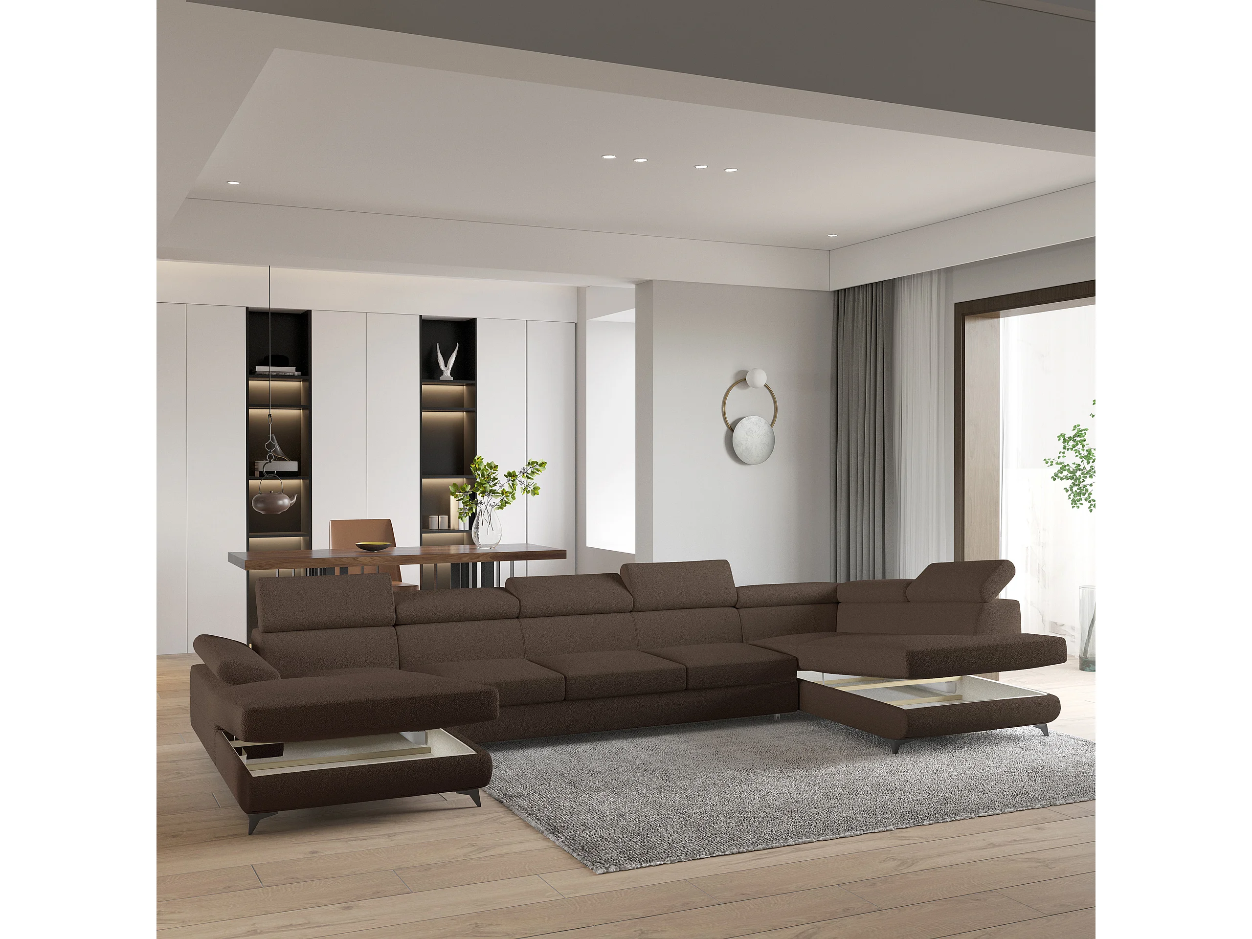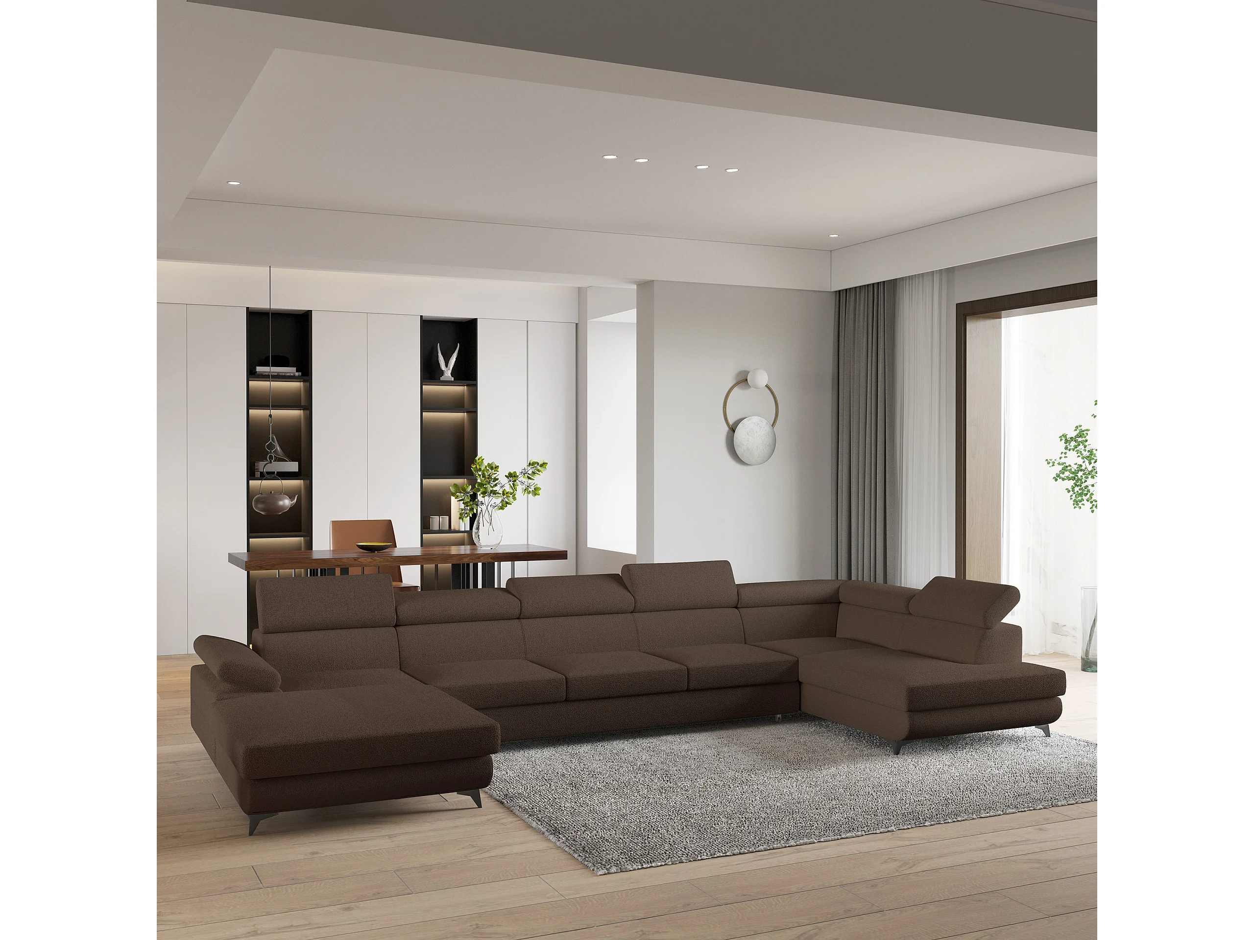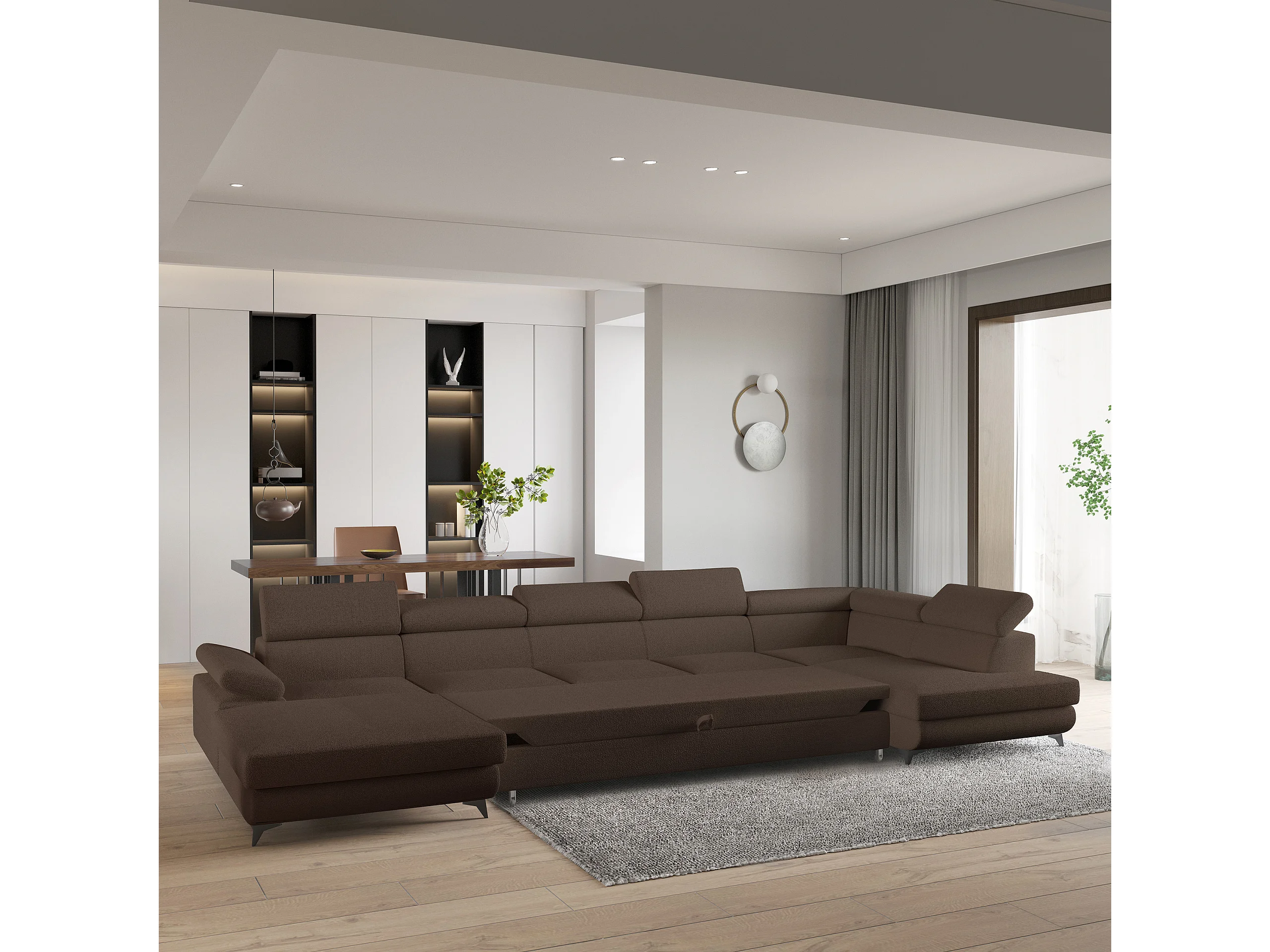 Hoekbank MONTIVA van fluweel met slaapfunctie Braun