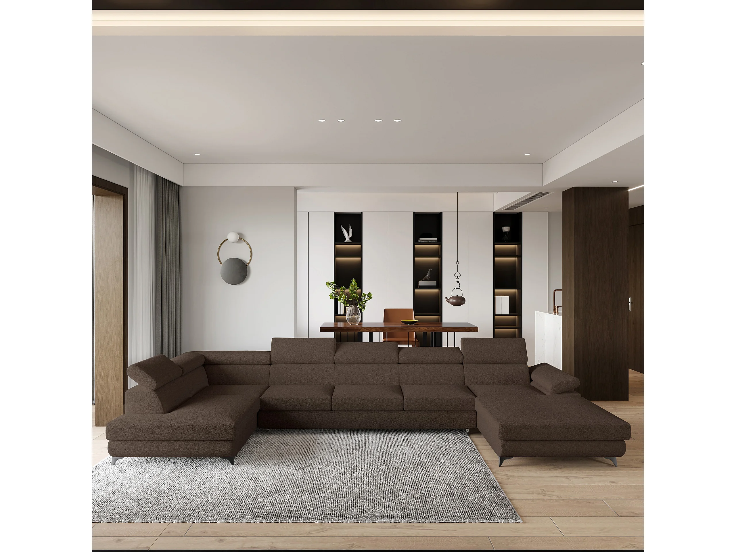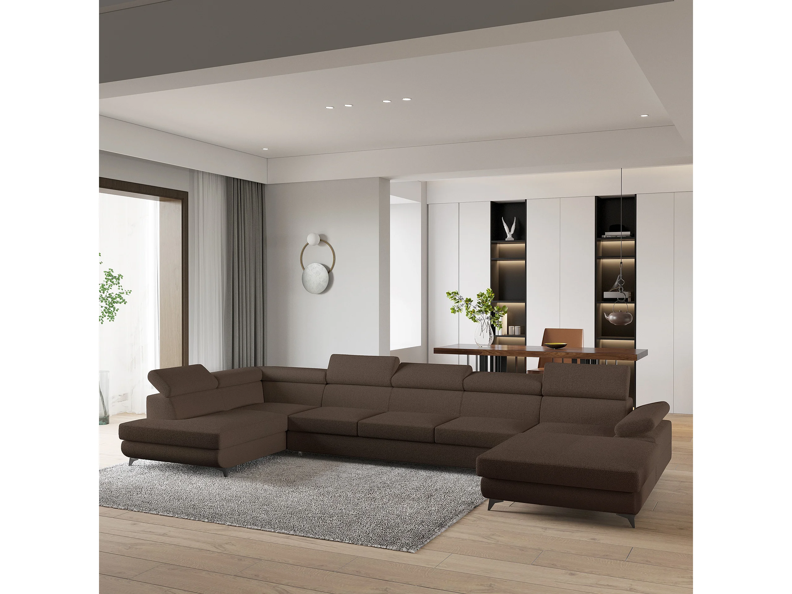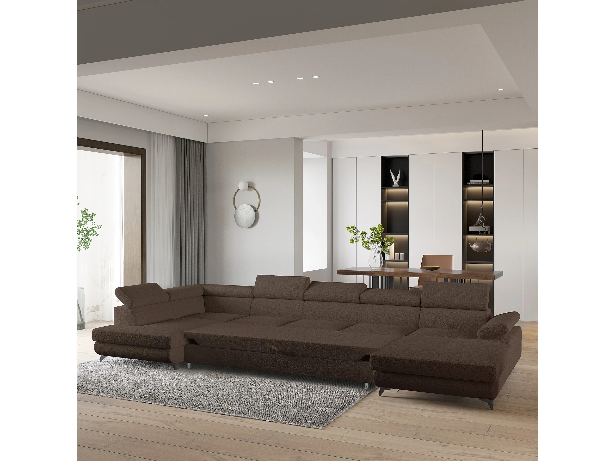 Hoekbank MONTIVA van fluweel met slaapfunctie Braun