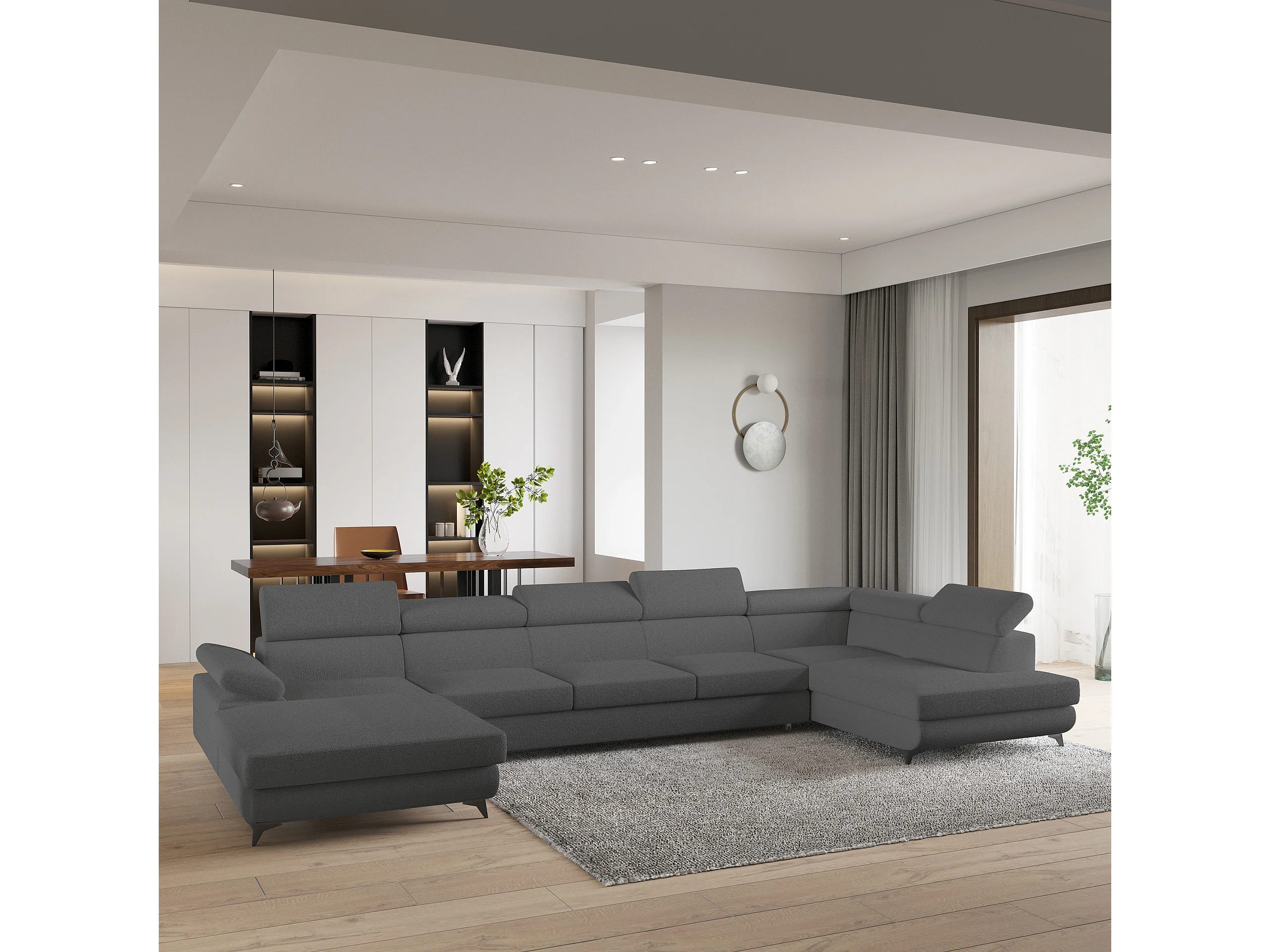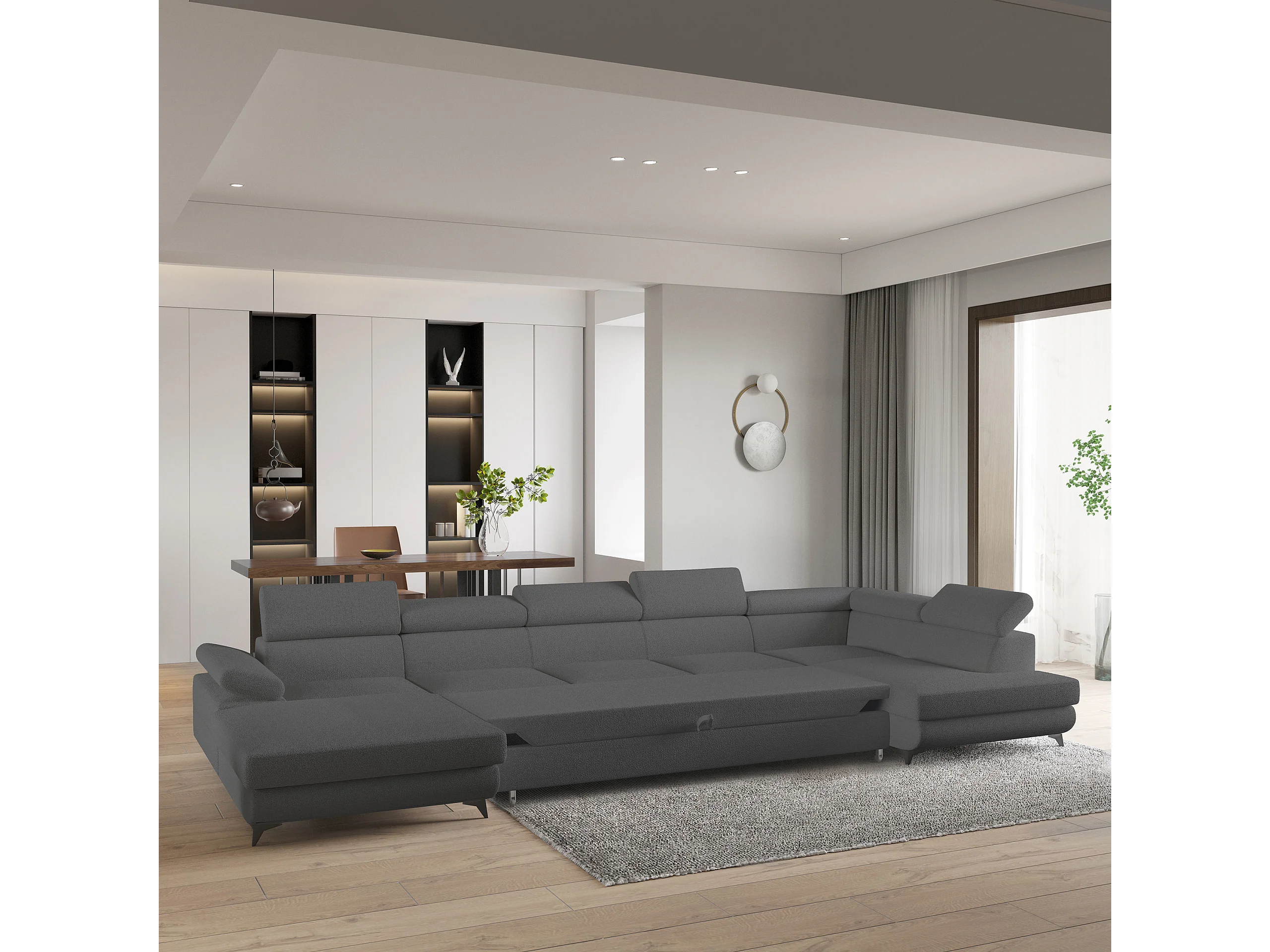 Hoekbank MONTIVA van fluweel met slaapfunctie Grau