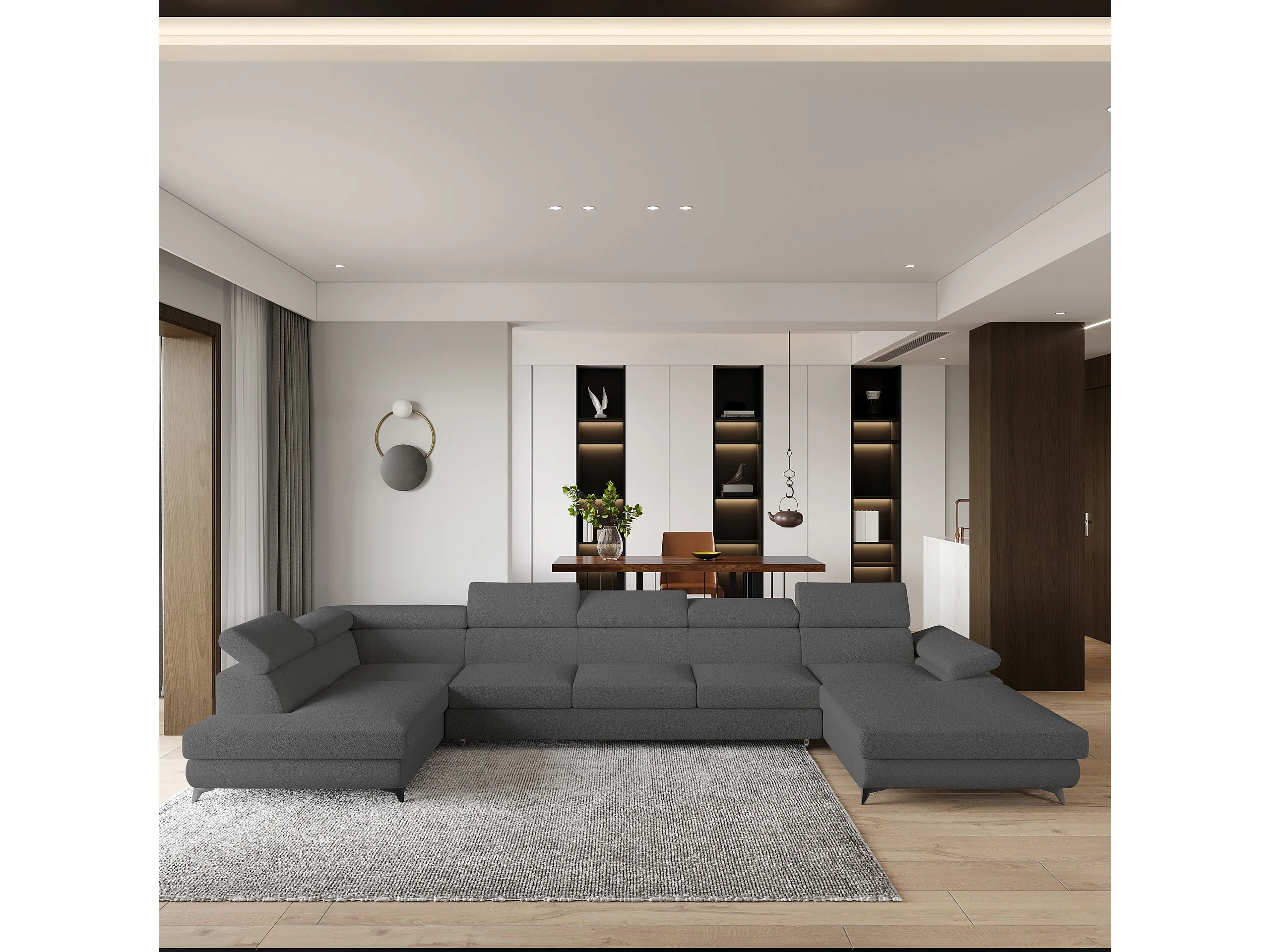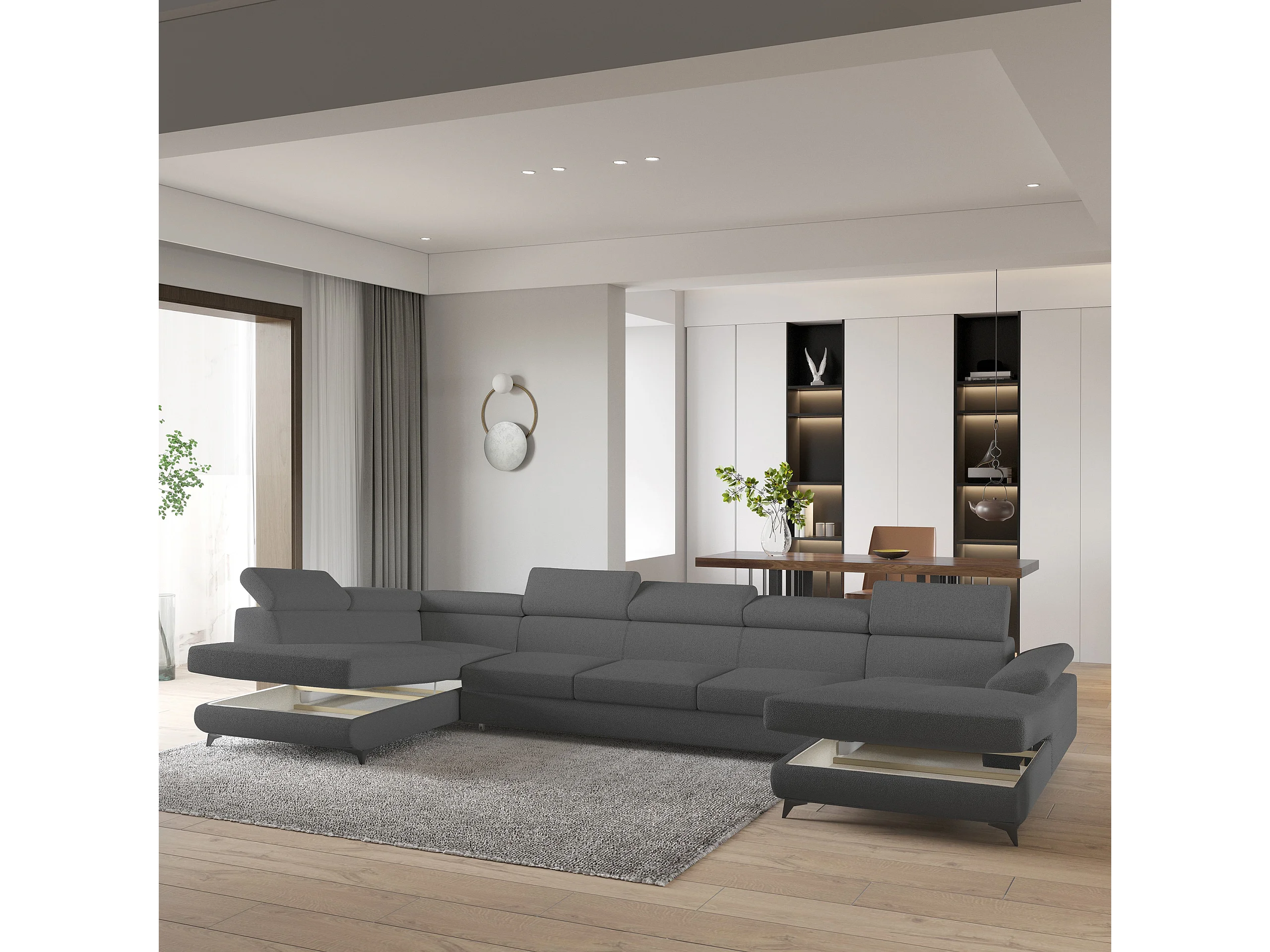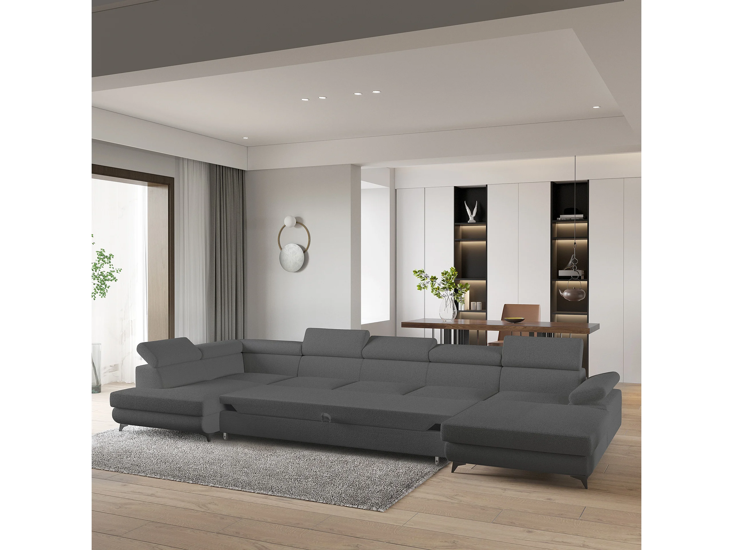 Hoekbank MONTIVA van fluweel met slaapfunctie Grau