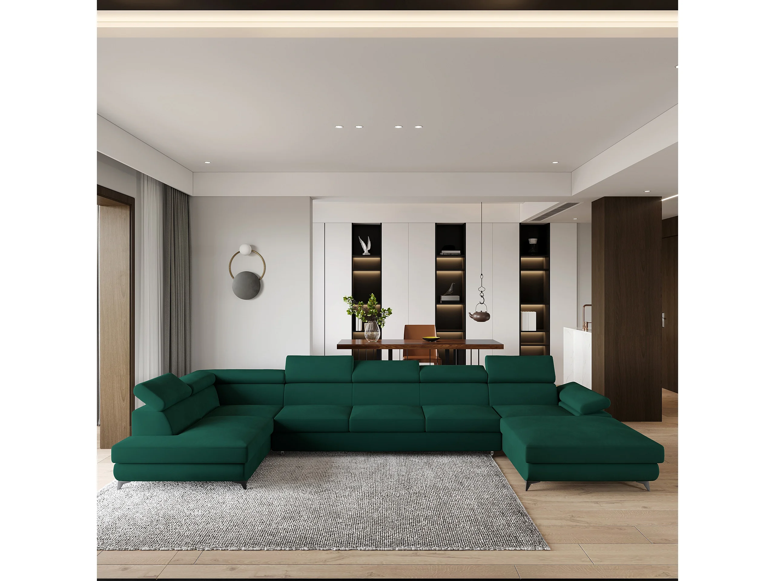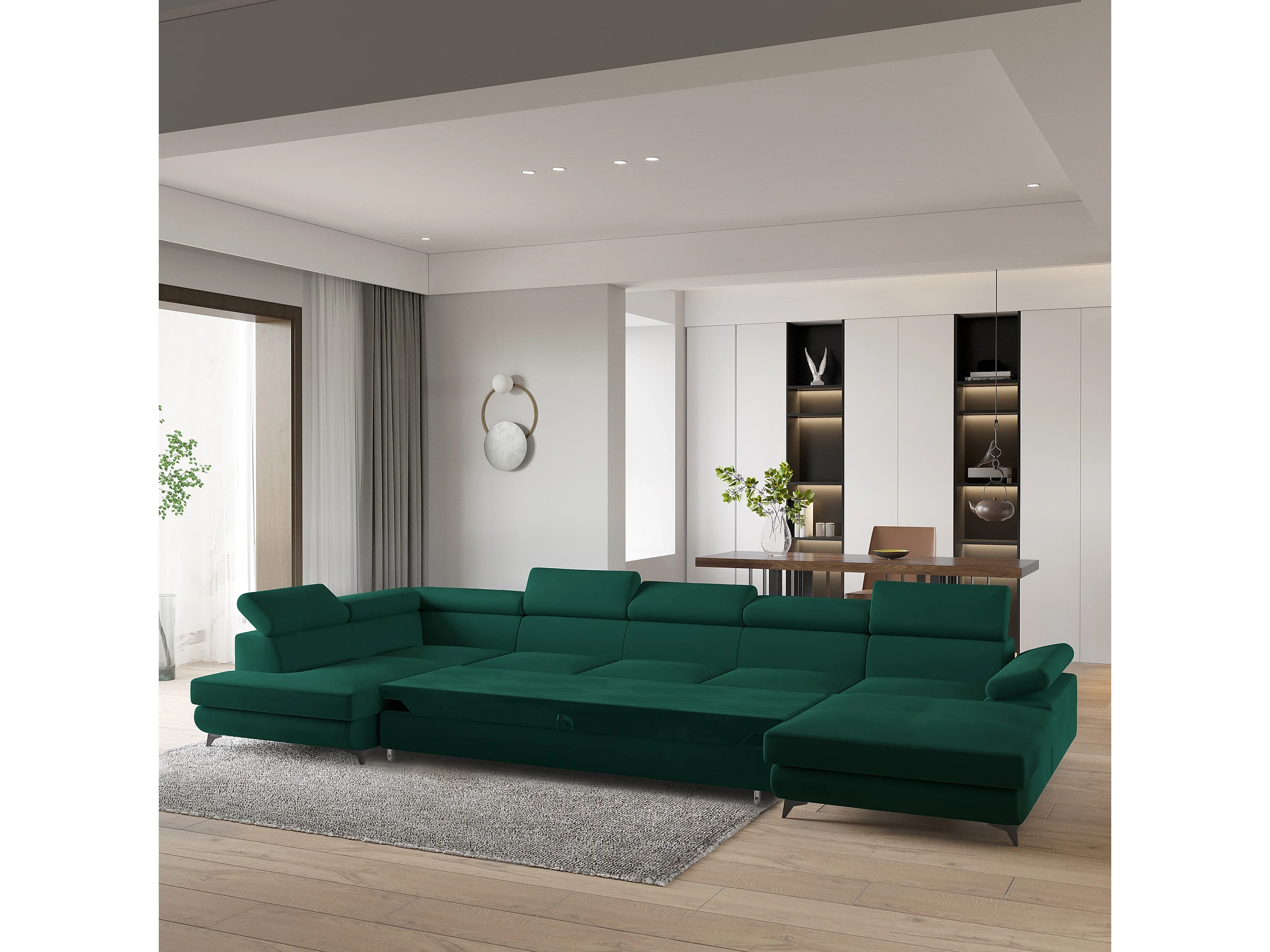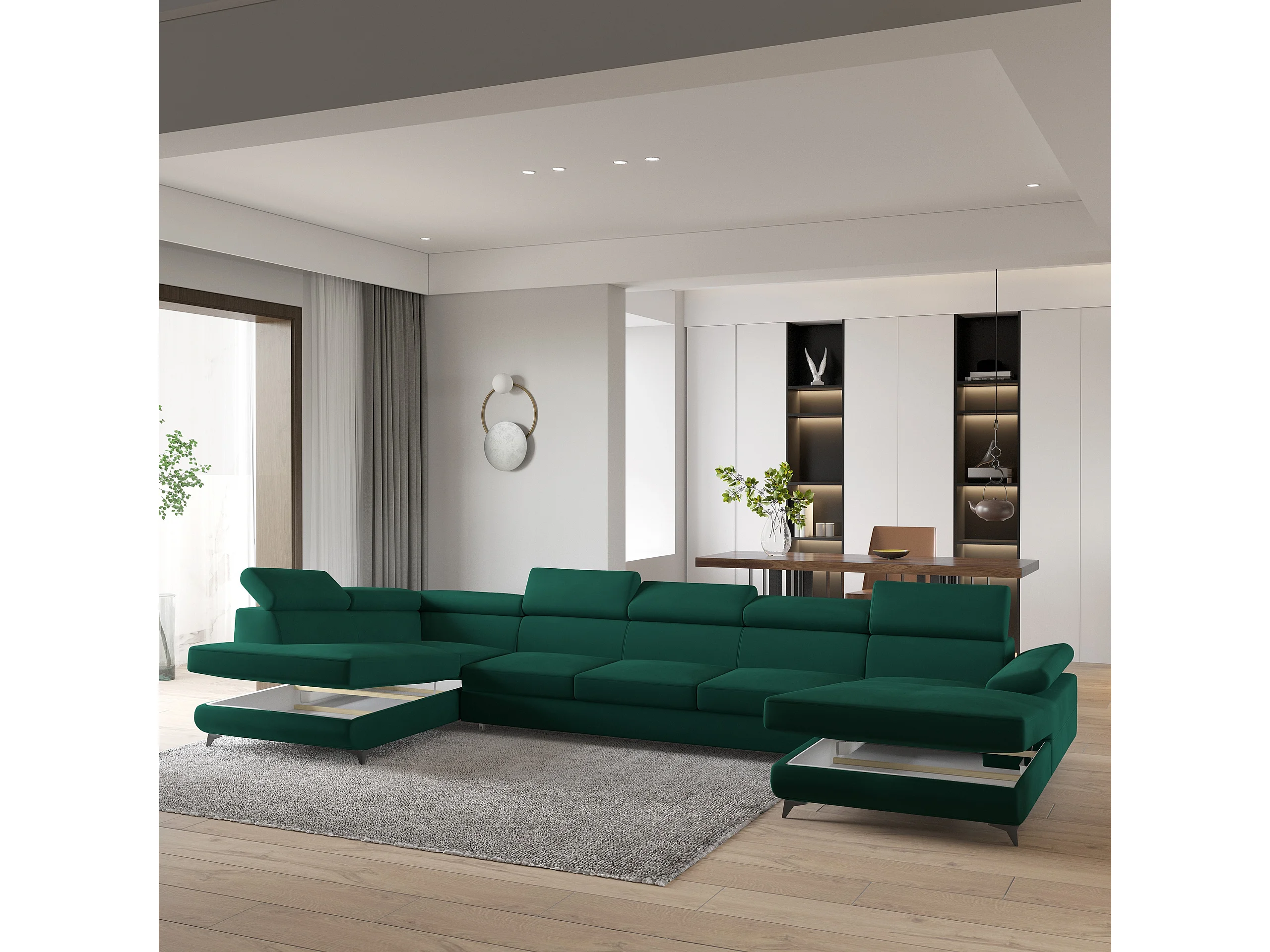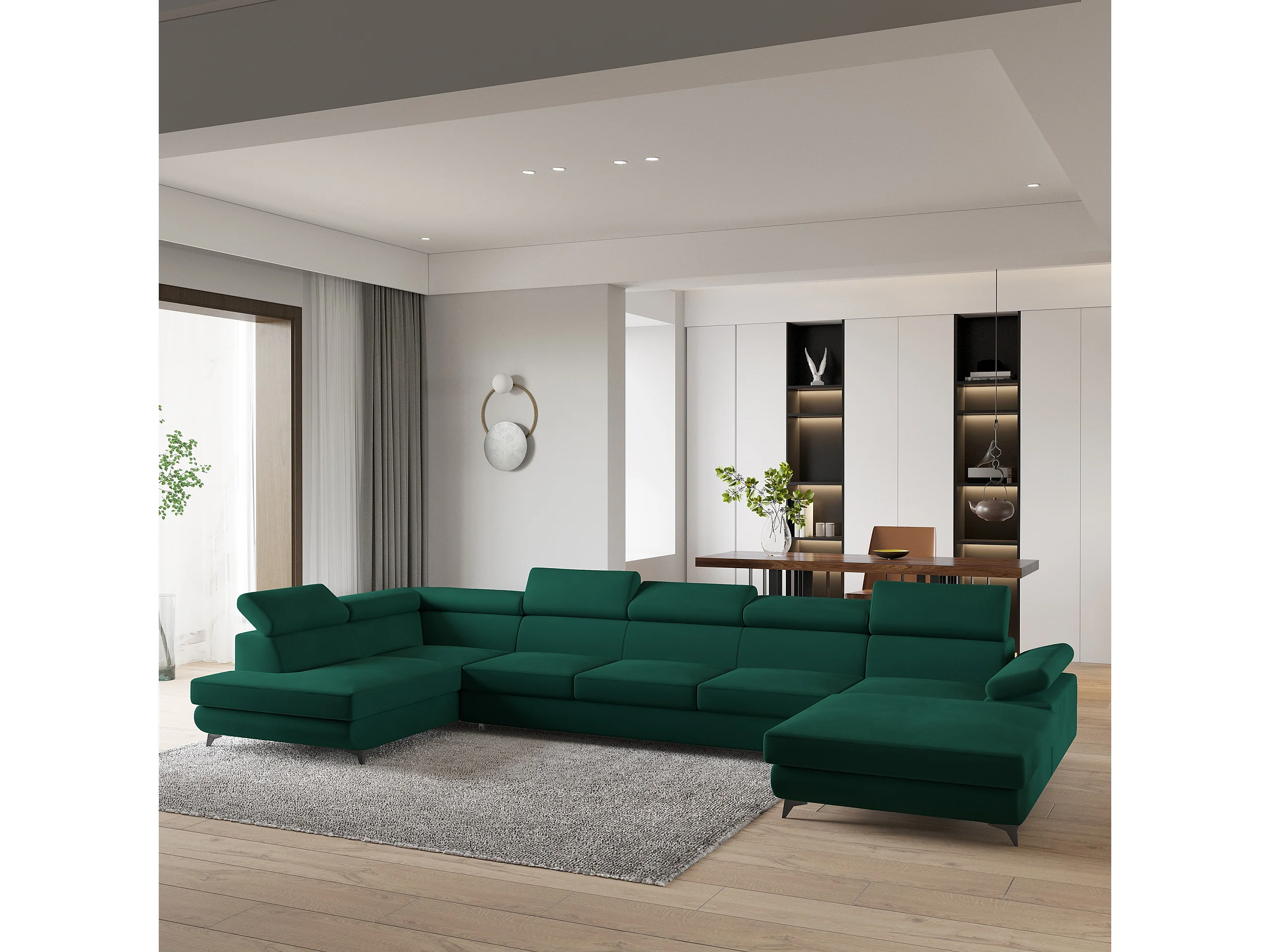 Hoekbank MONTIVA van fluweel met slaapfunctie Grün