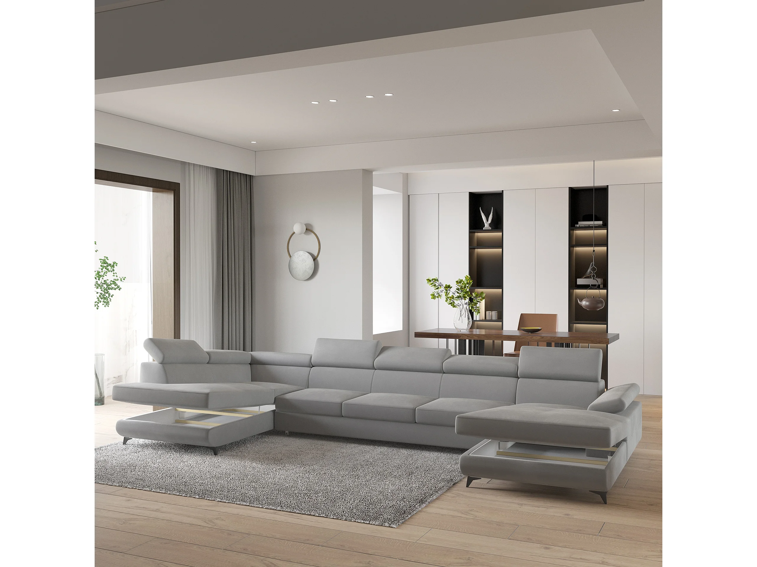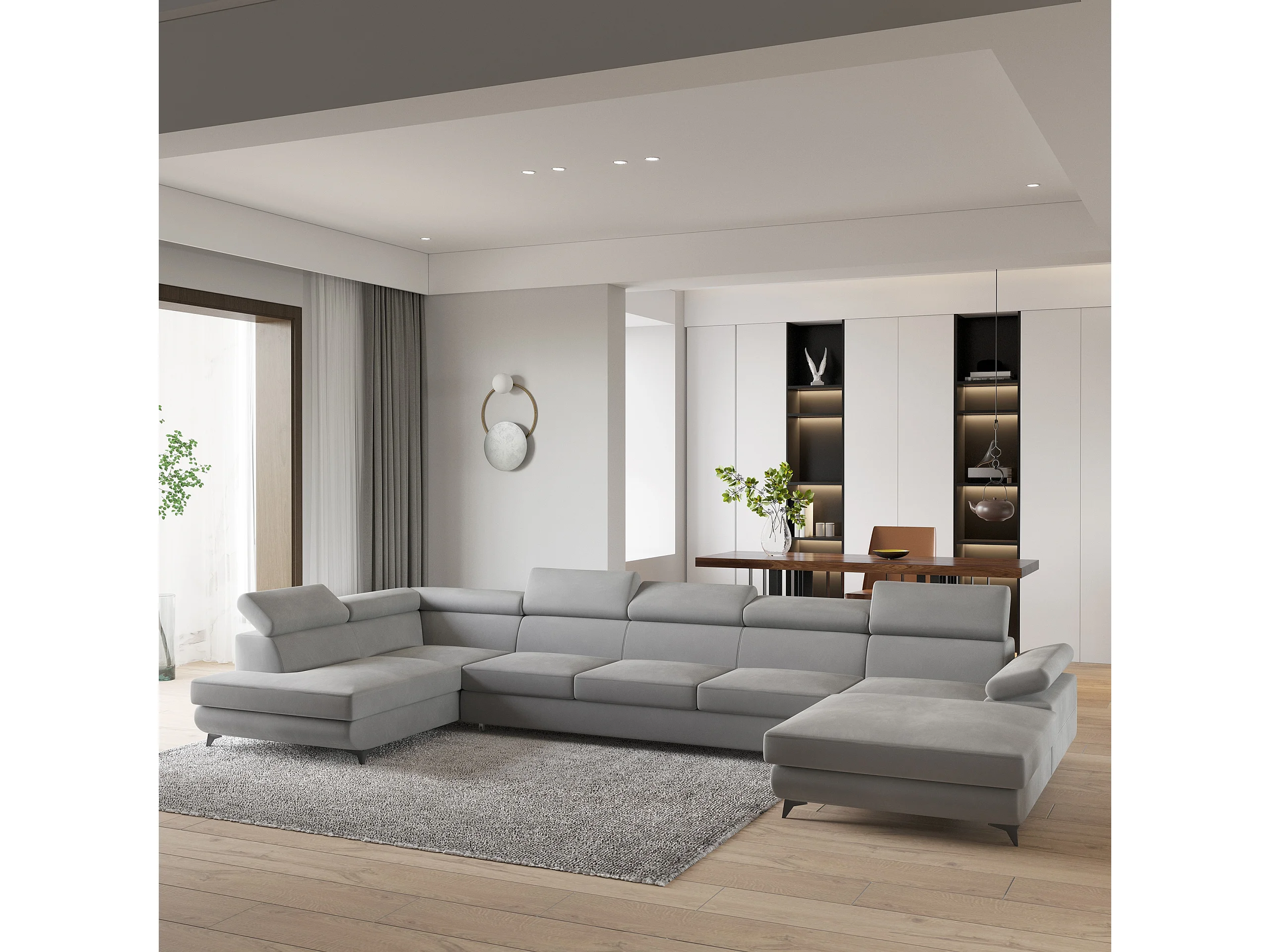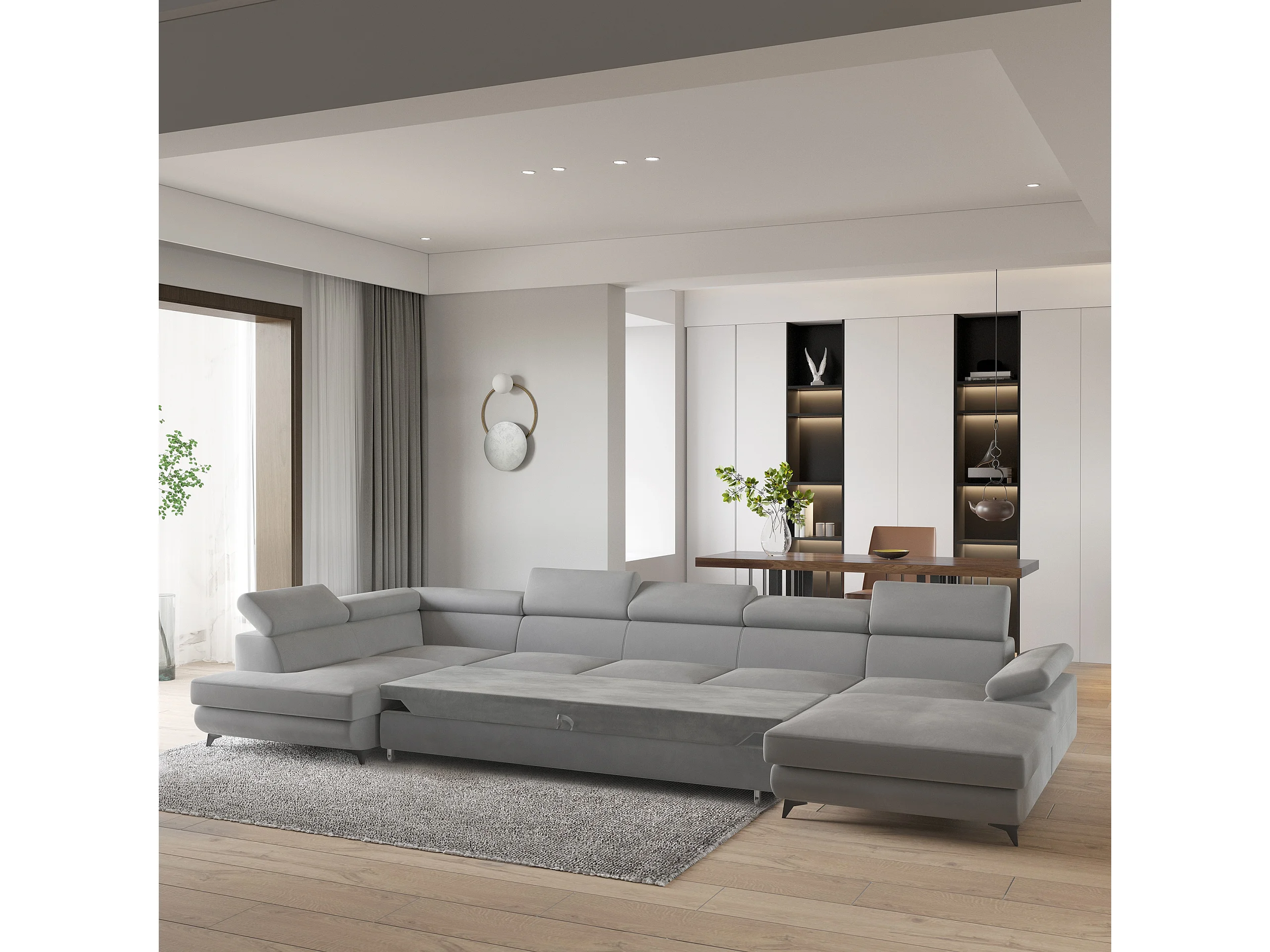 Hoekbank MONTIVA van fluweel met slaapfunctie Hellgrau