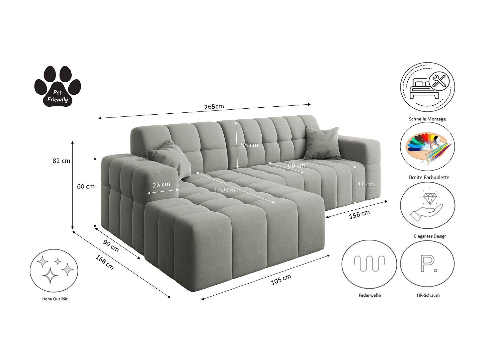 Hoekbank NIMES L-vorm, stof Portland, grijs, rechts