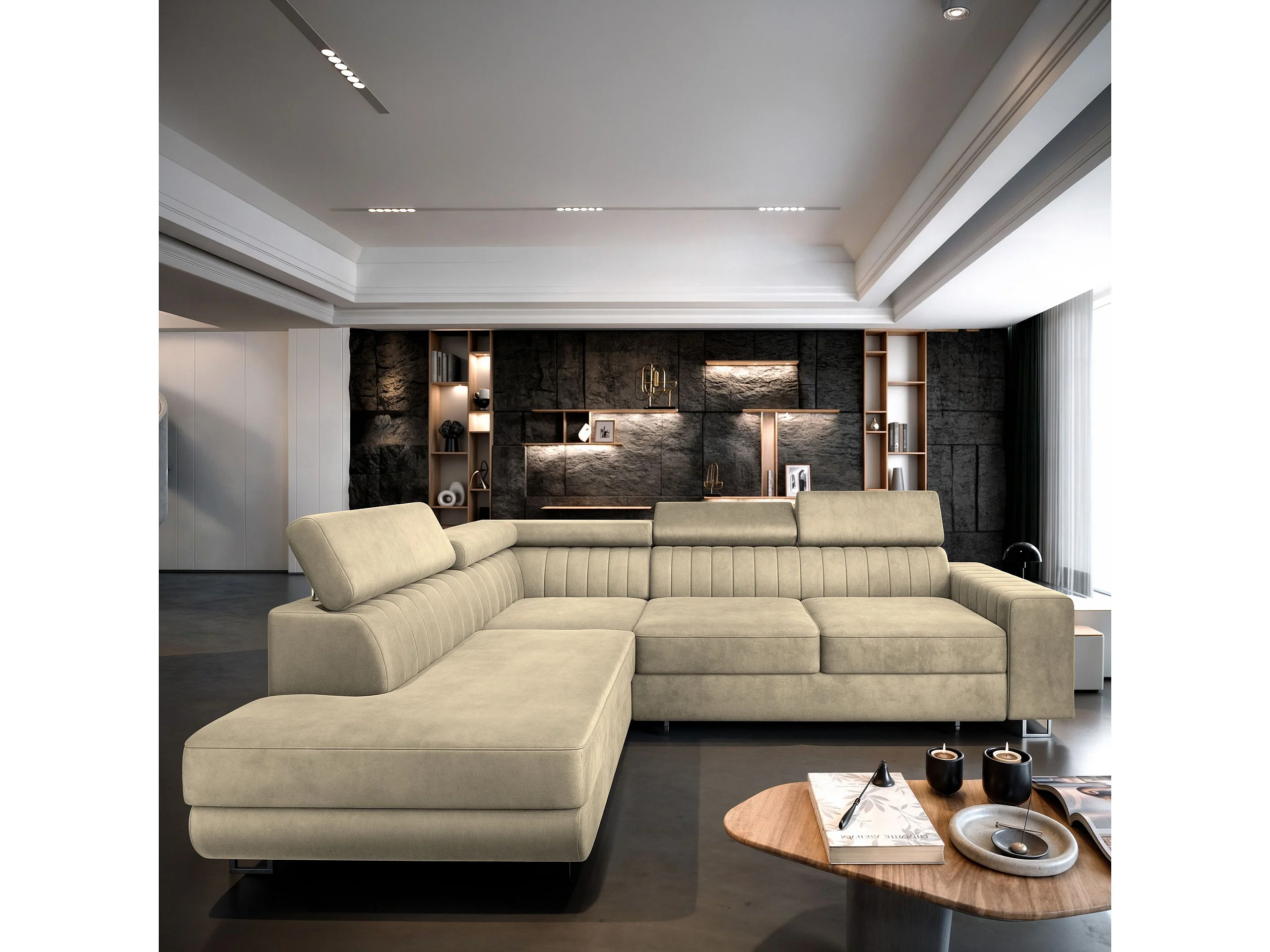 Hoekbank NOLA van fluweel met slaapfunctie Creme