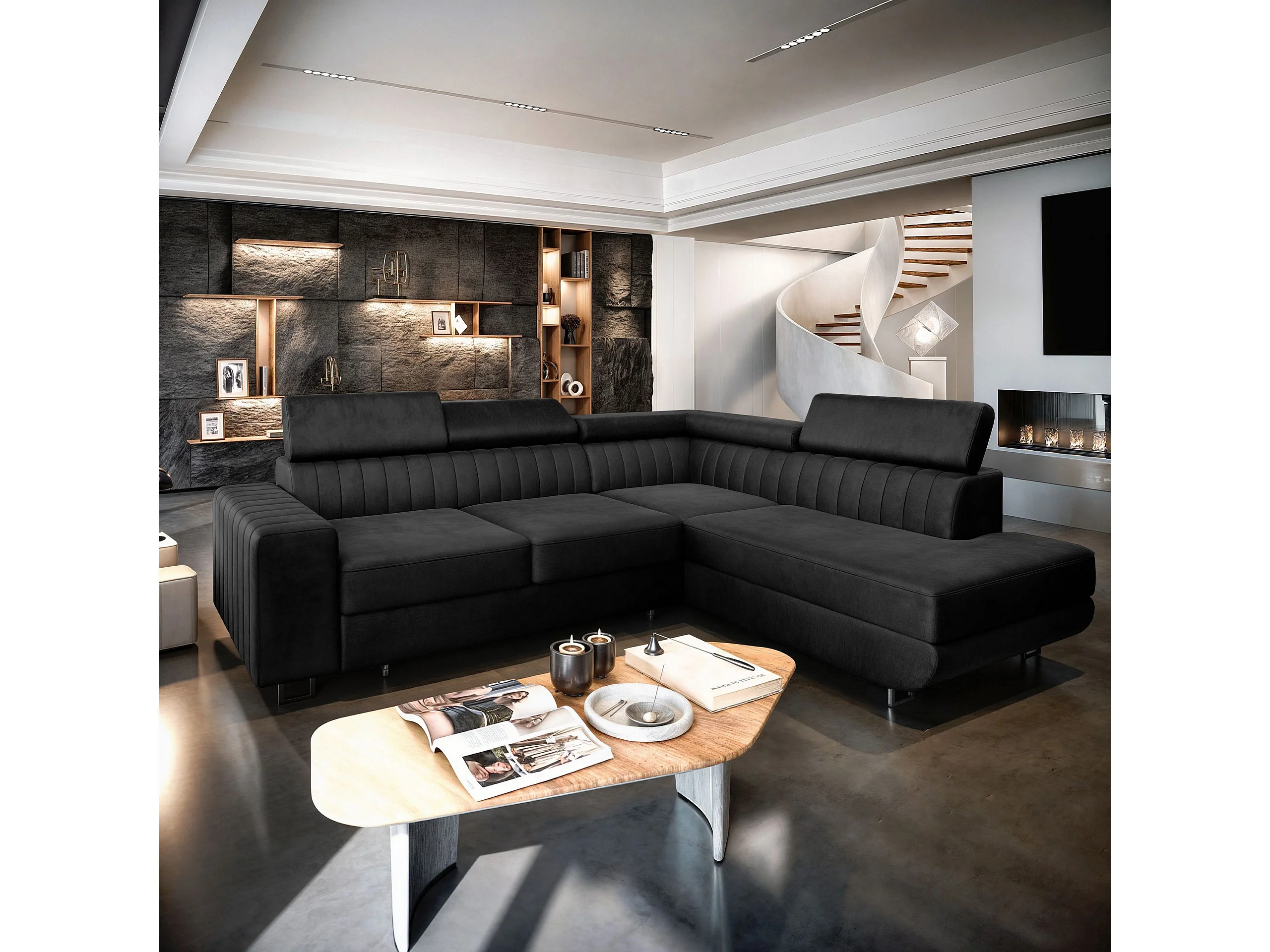 Hoekbank NOLA van fluweel met slaapfunctie Schwarz