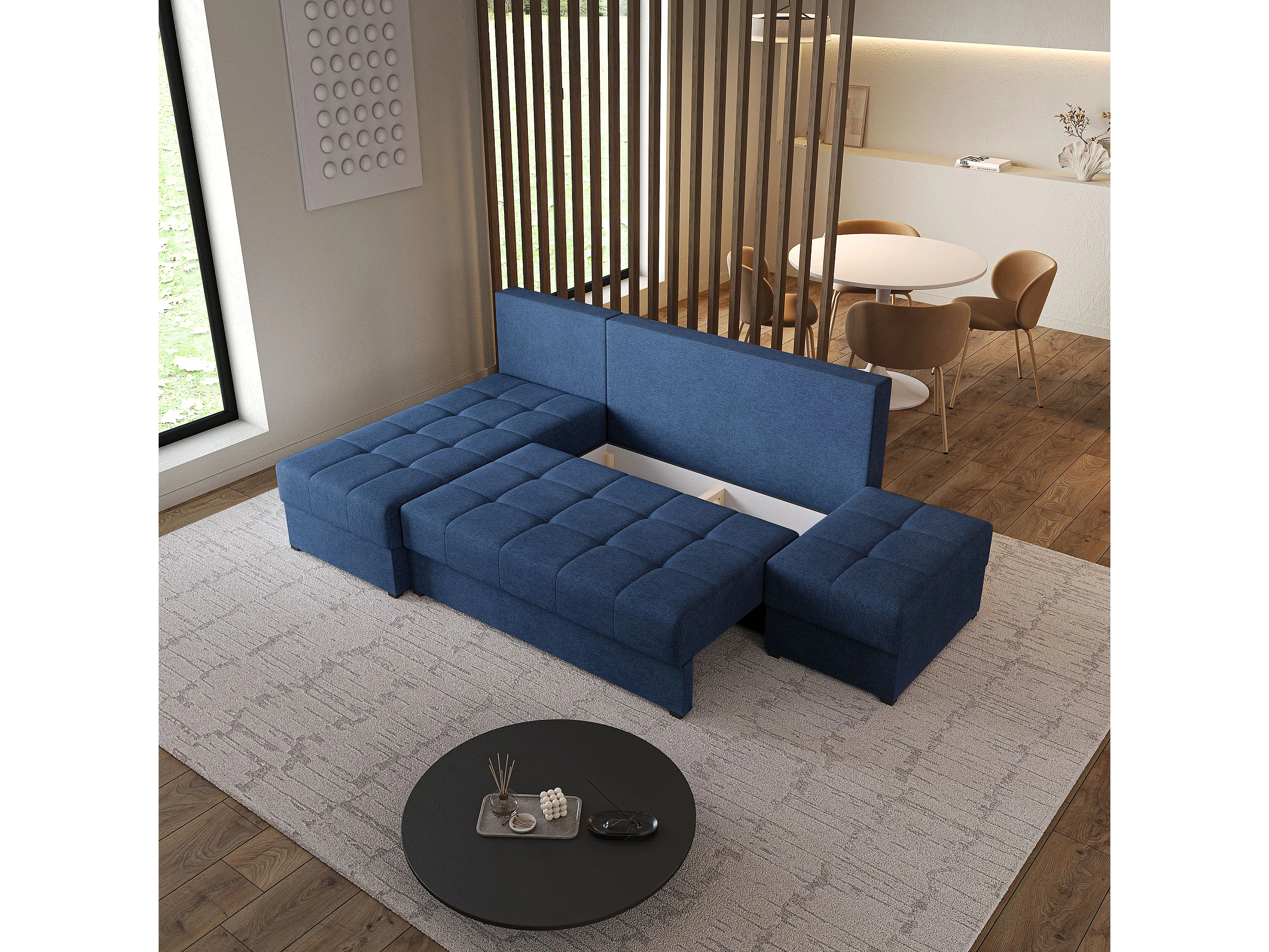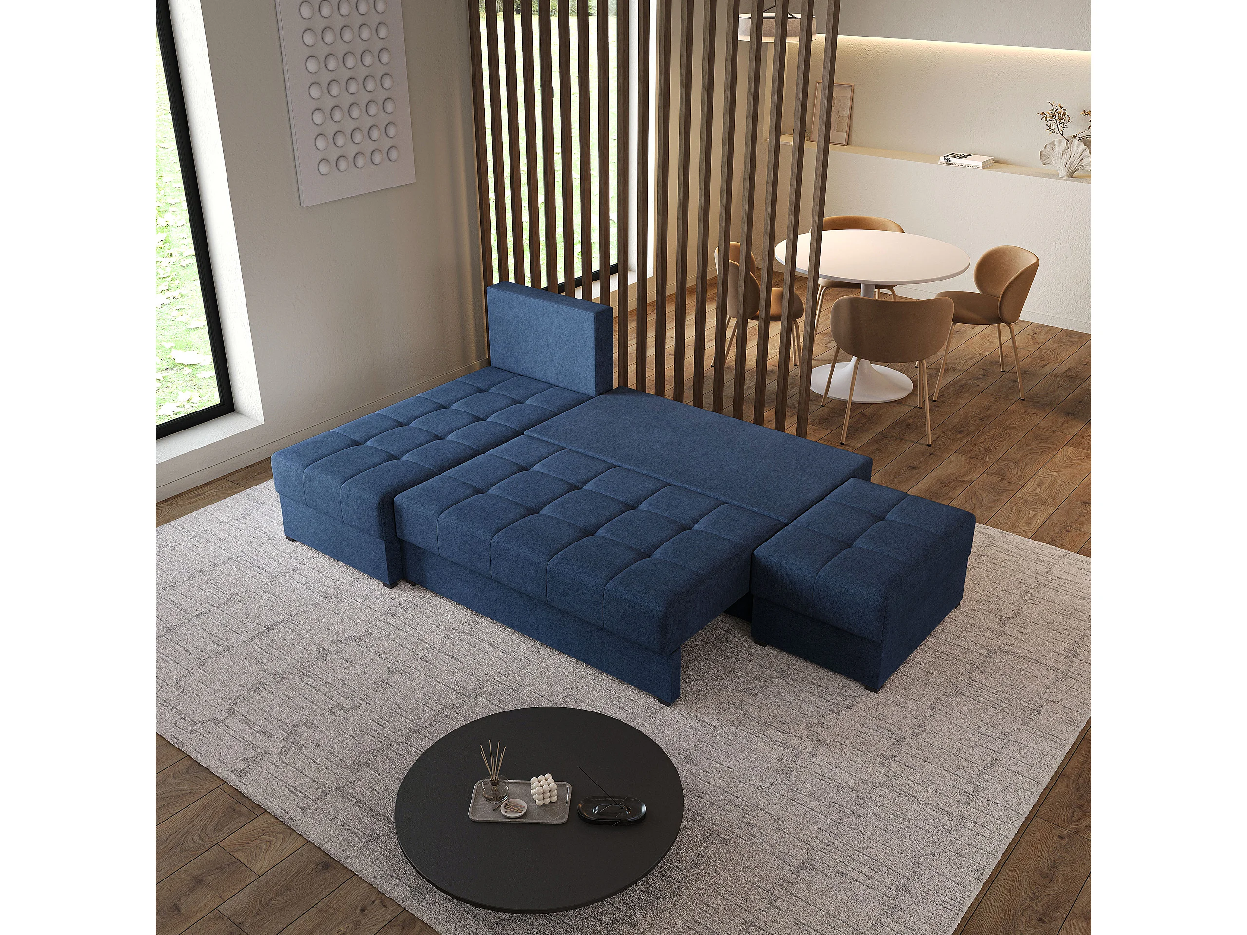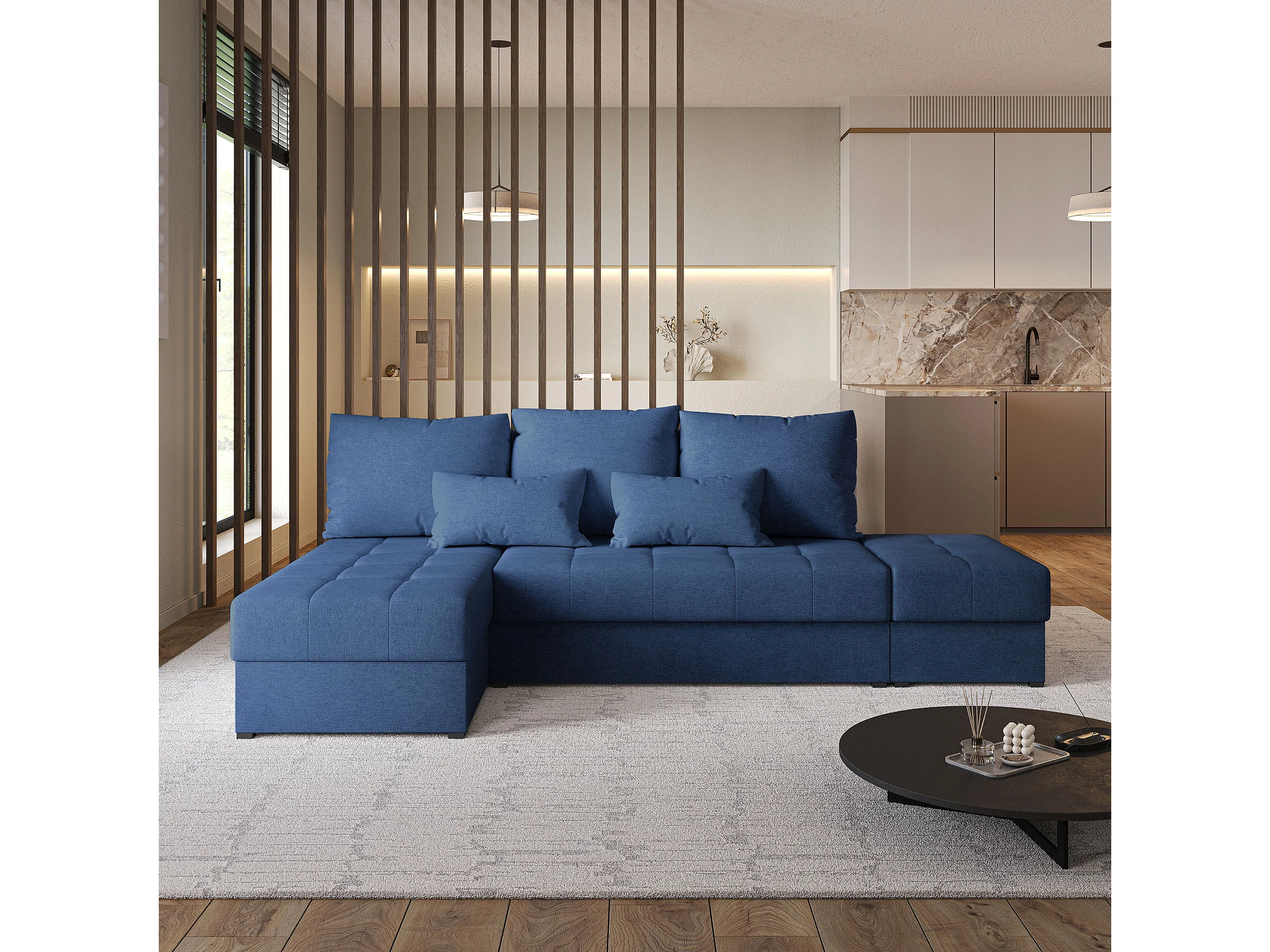 Hoekbank NORVI van fluweel met slaapfunctie Blau