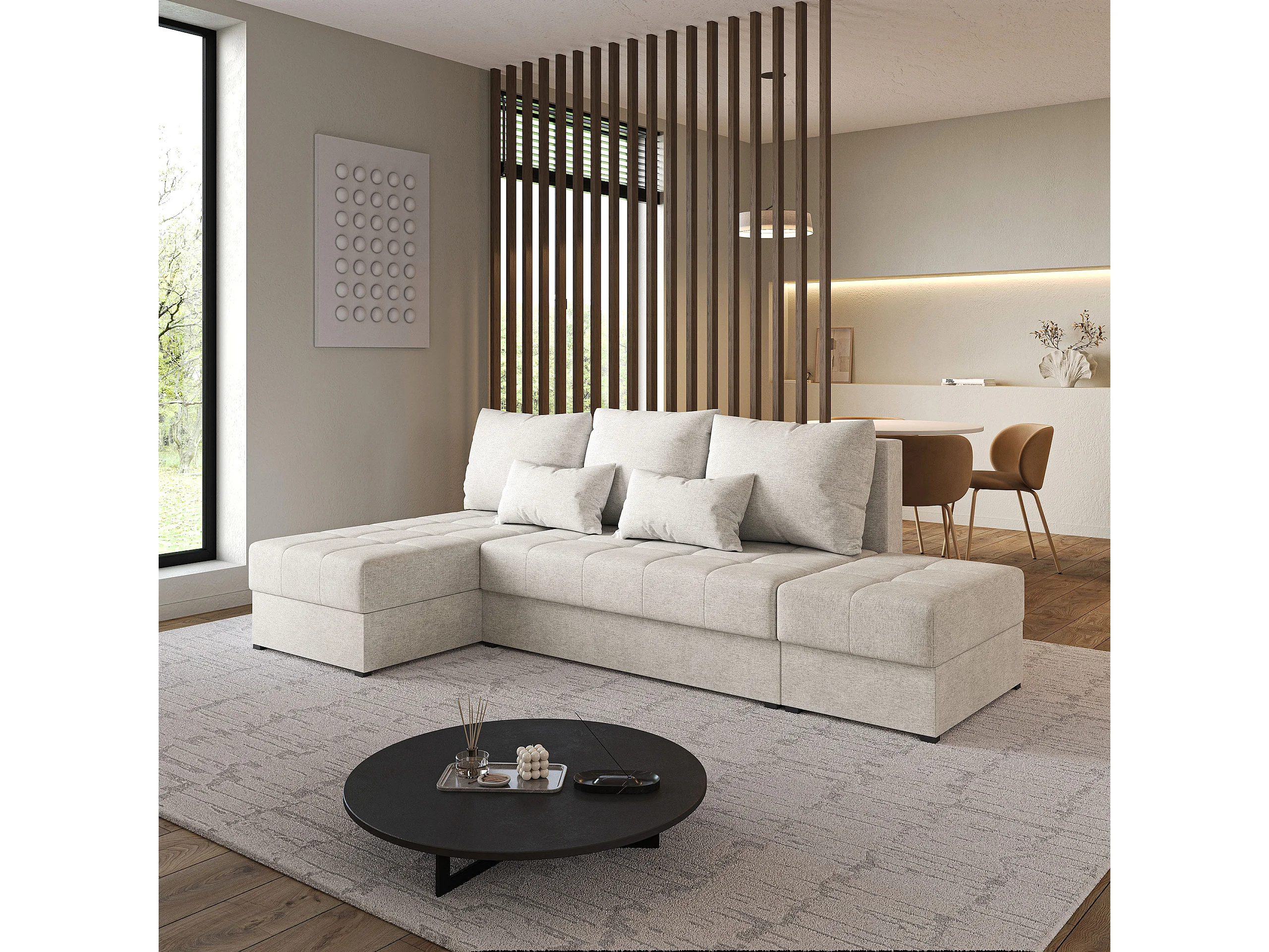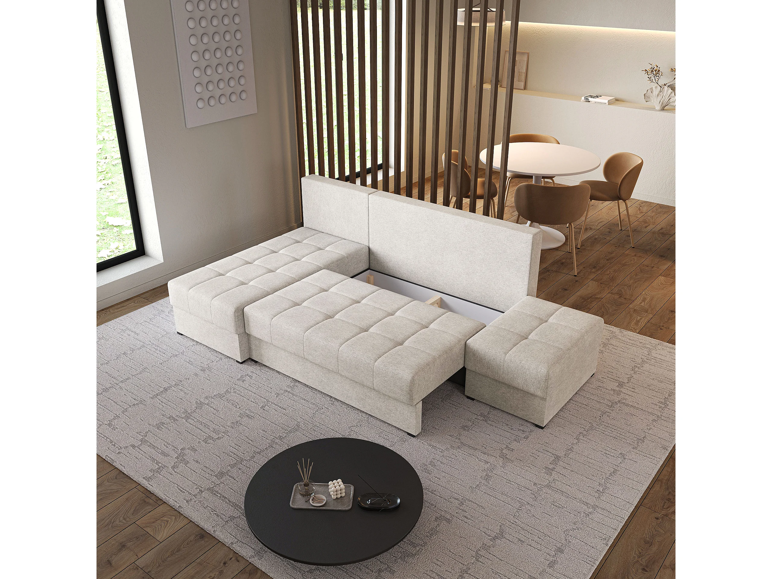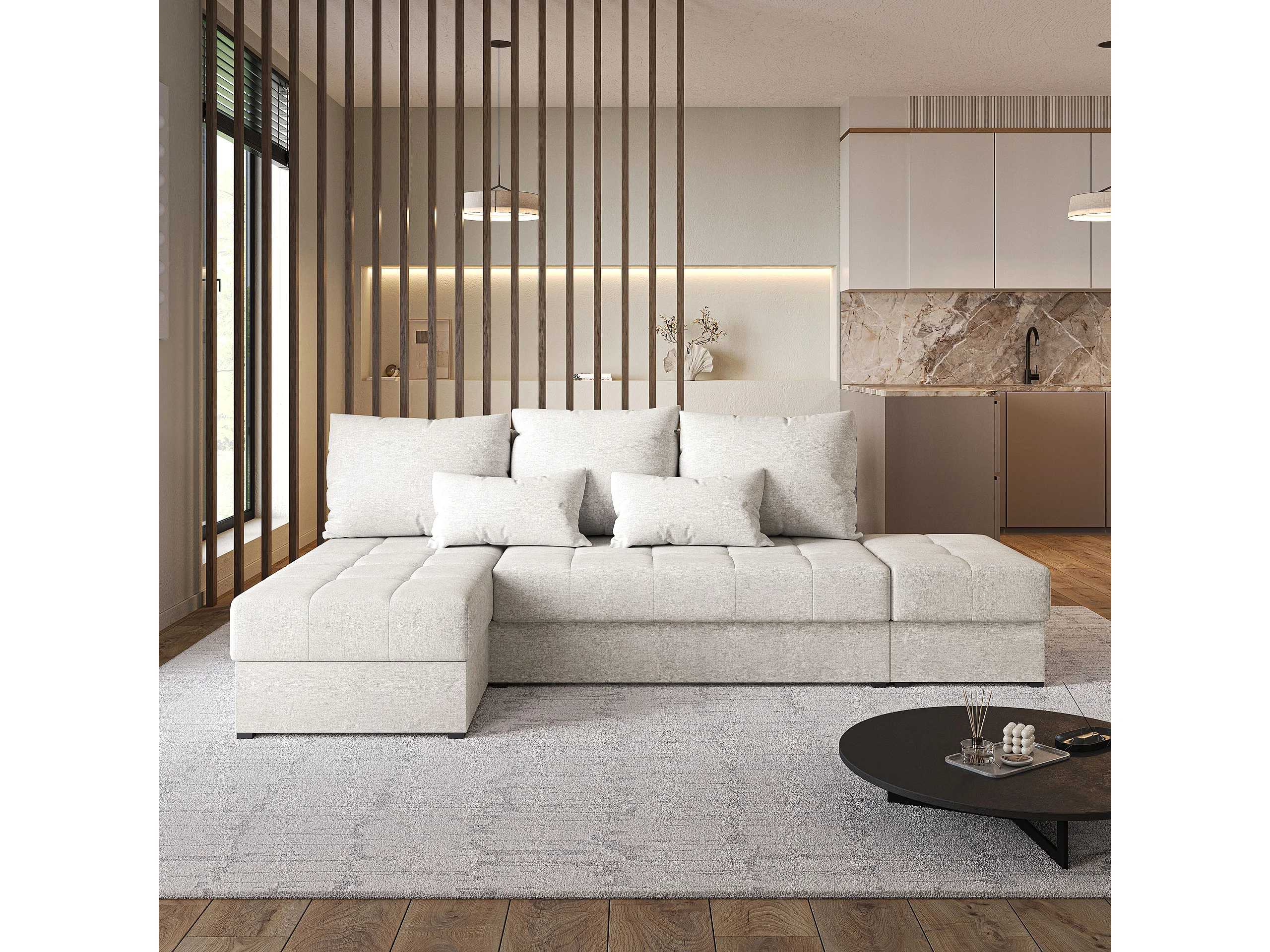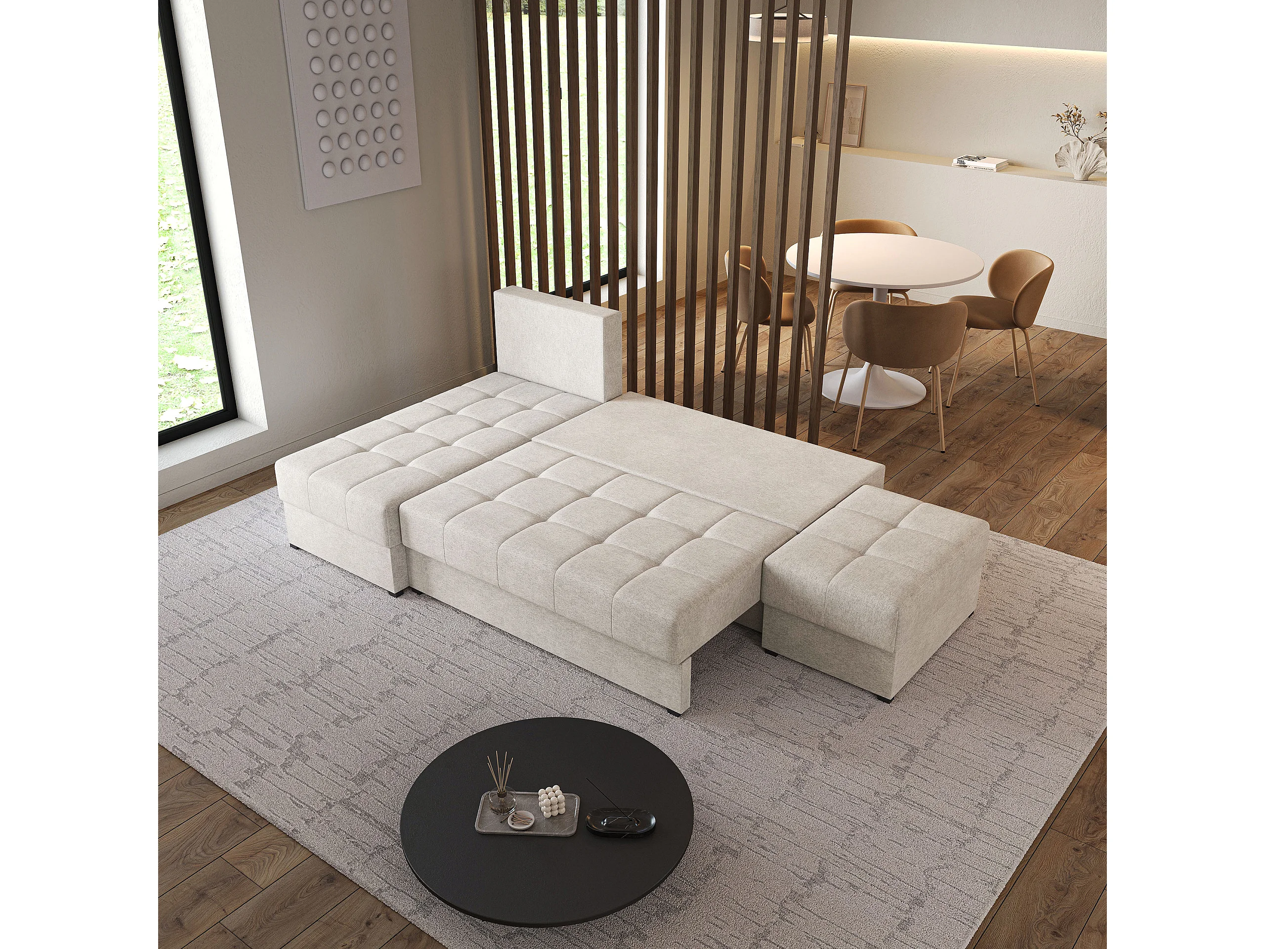 Hoekbank NORVI van fluweel met slaapfunctie Creme