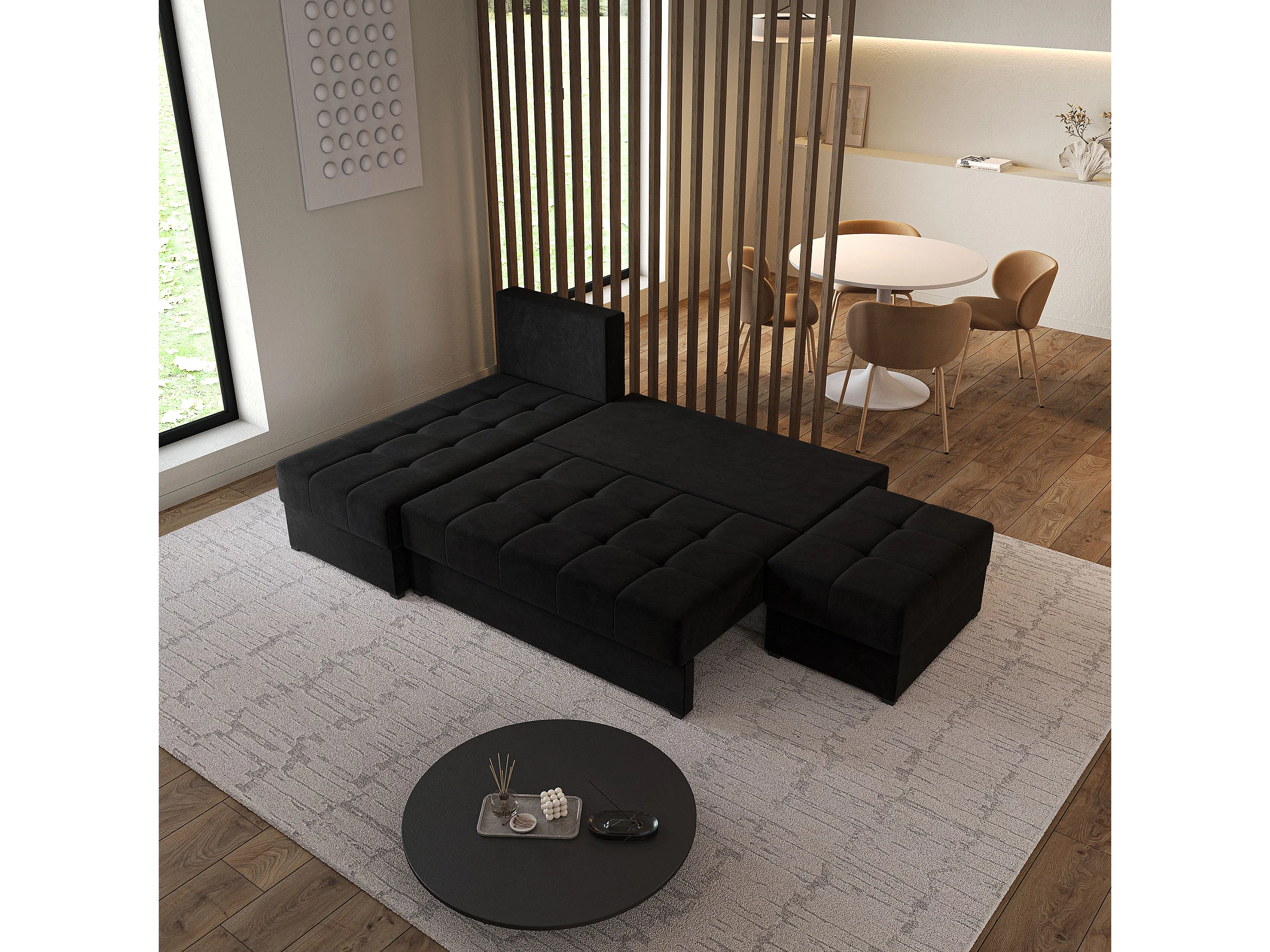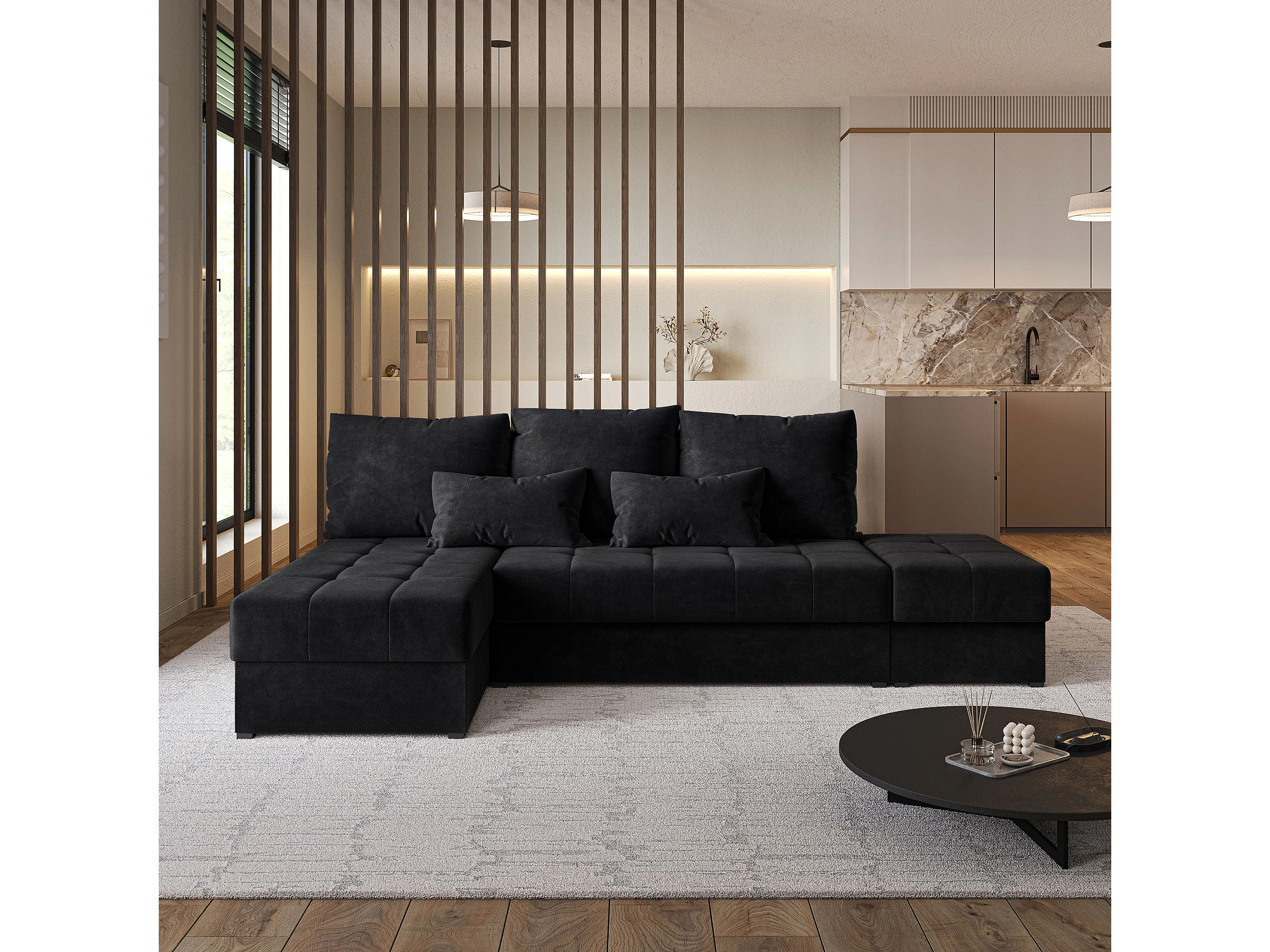 Hoekbank NORVI van fluweel met slaapfunctie Schwarz