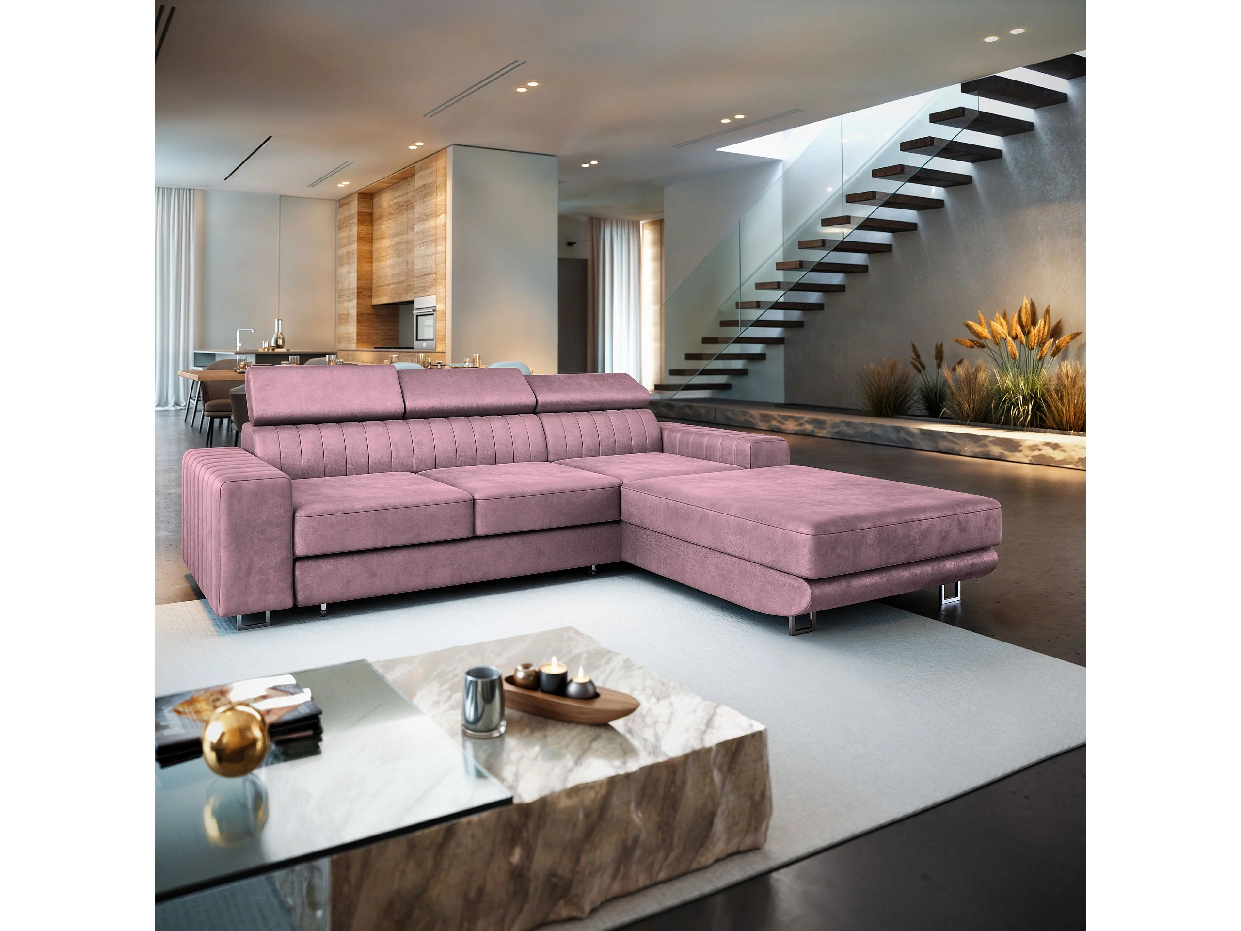 Hoekbank NOTO van fluweel met slaapfunctie Lila