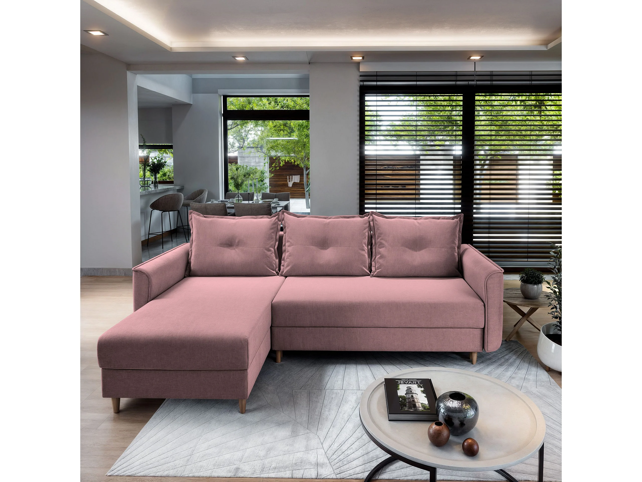 Hoekbank PISAN van fluweel met slaapfunctie Rosa