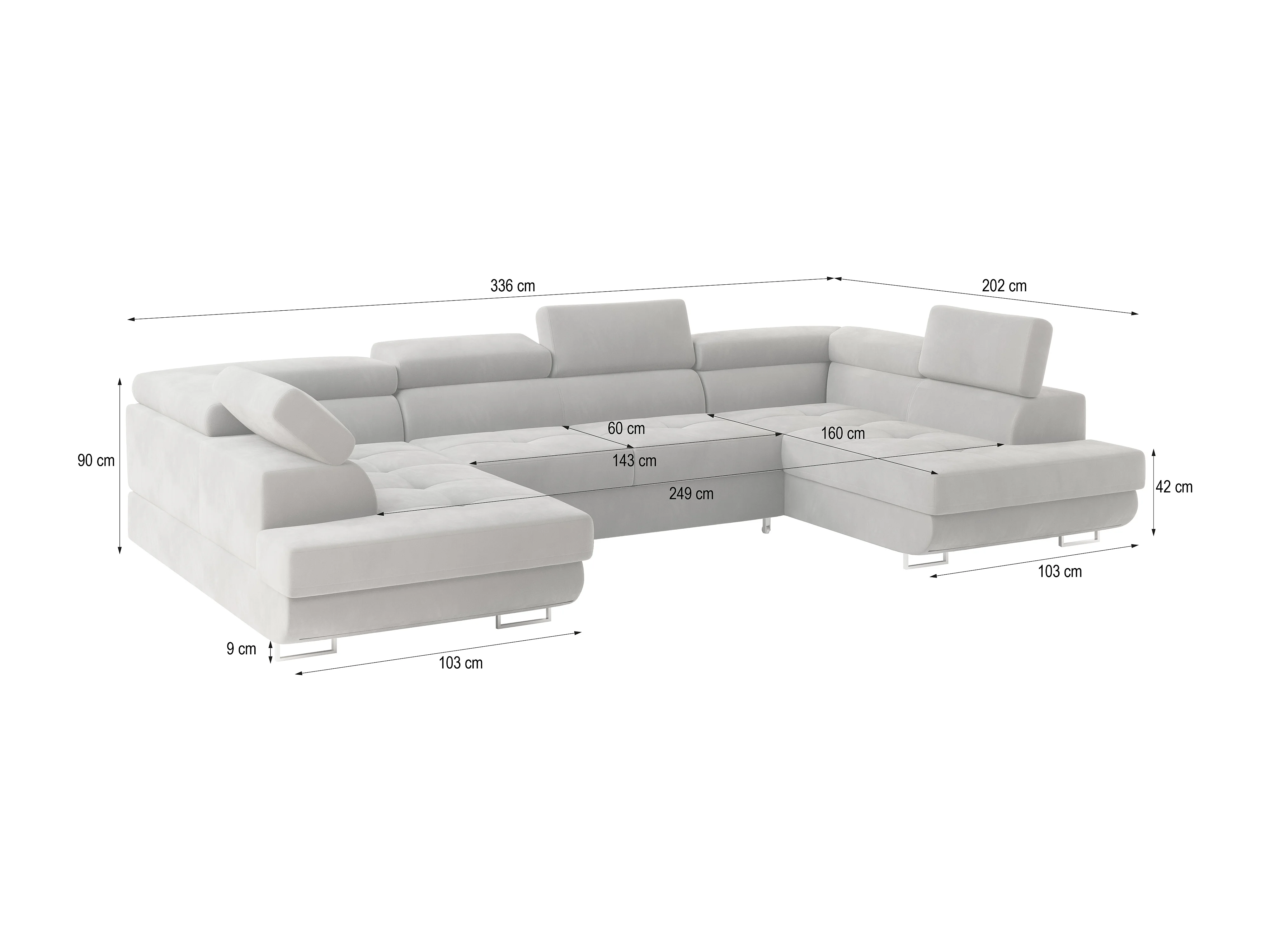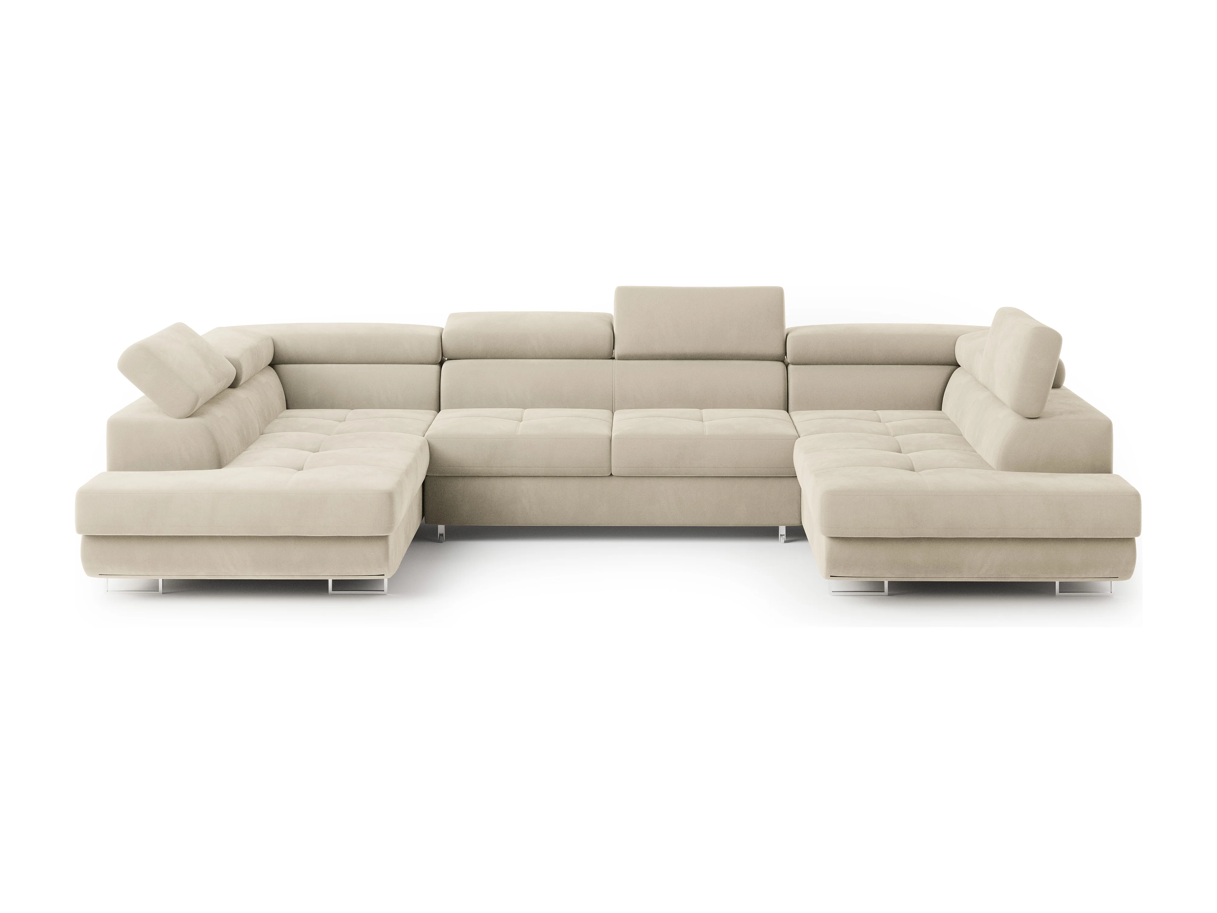 Hoekbank RAGGIO van fluweel met slaapfunctie Creme