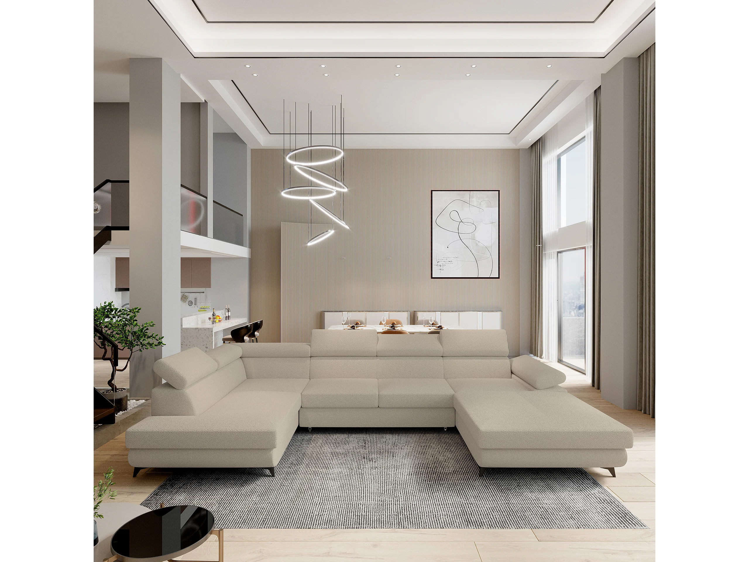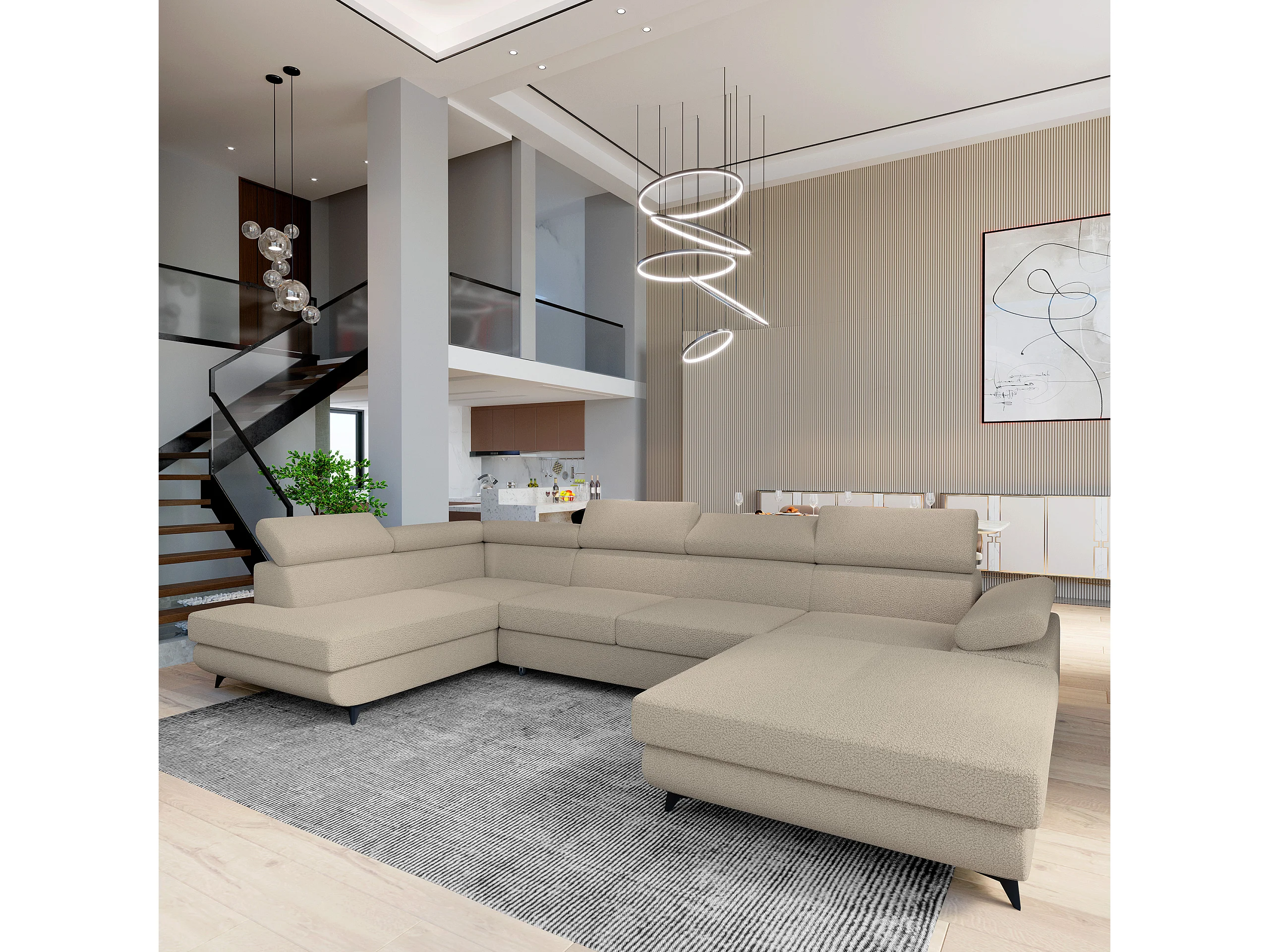 Hoekbank RUBANO van fluweel met slaapfunctie Beige