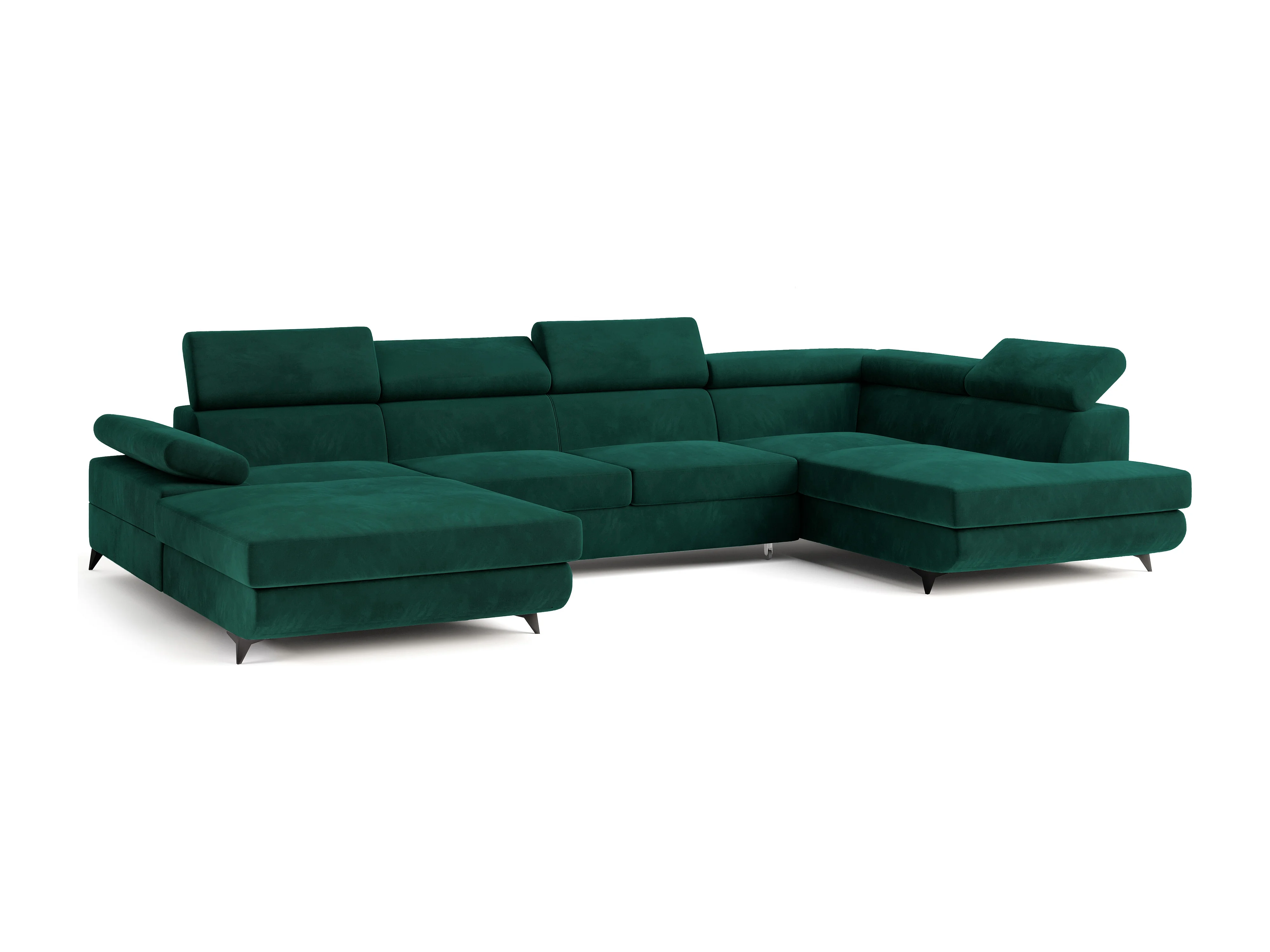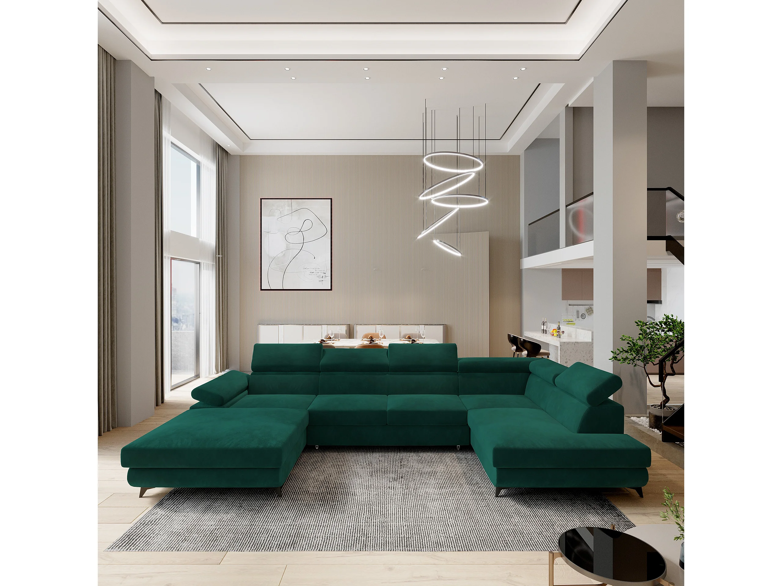 Hoekbank RUBANO van fluweel met slaapfunctie Grün