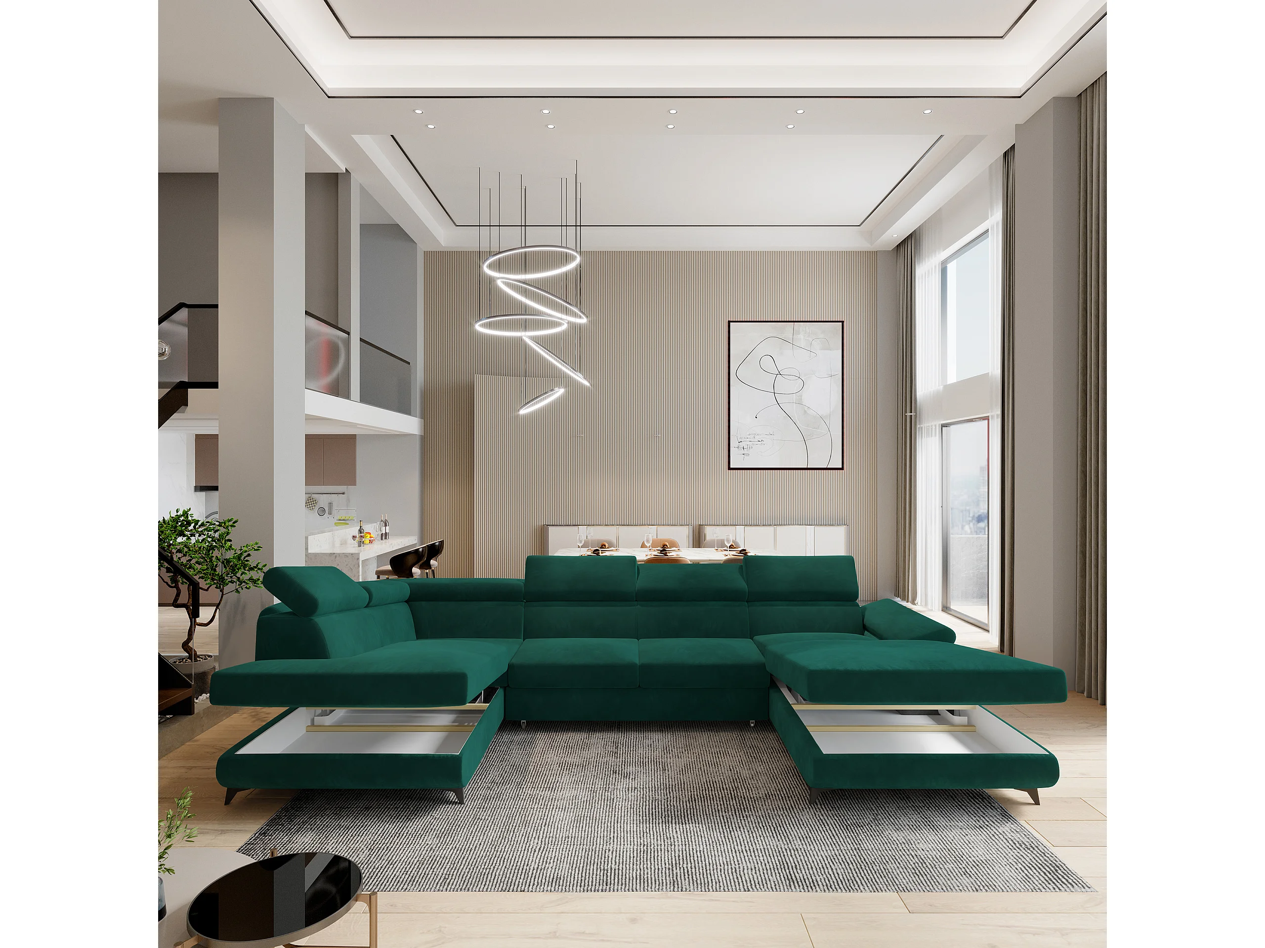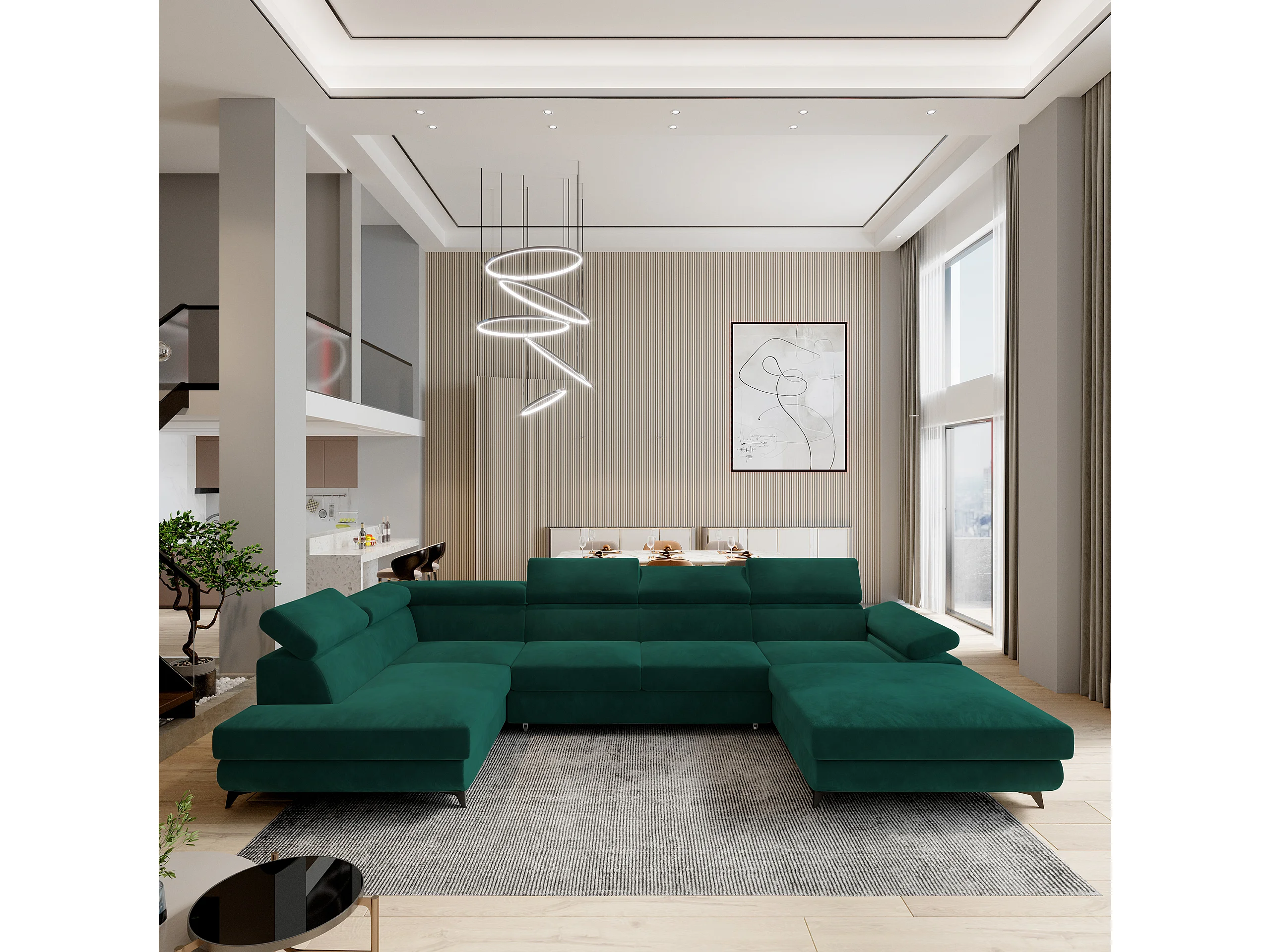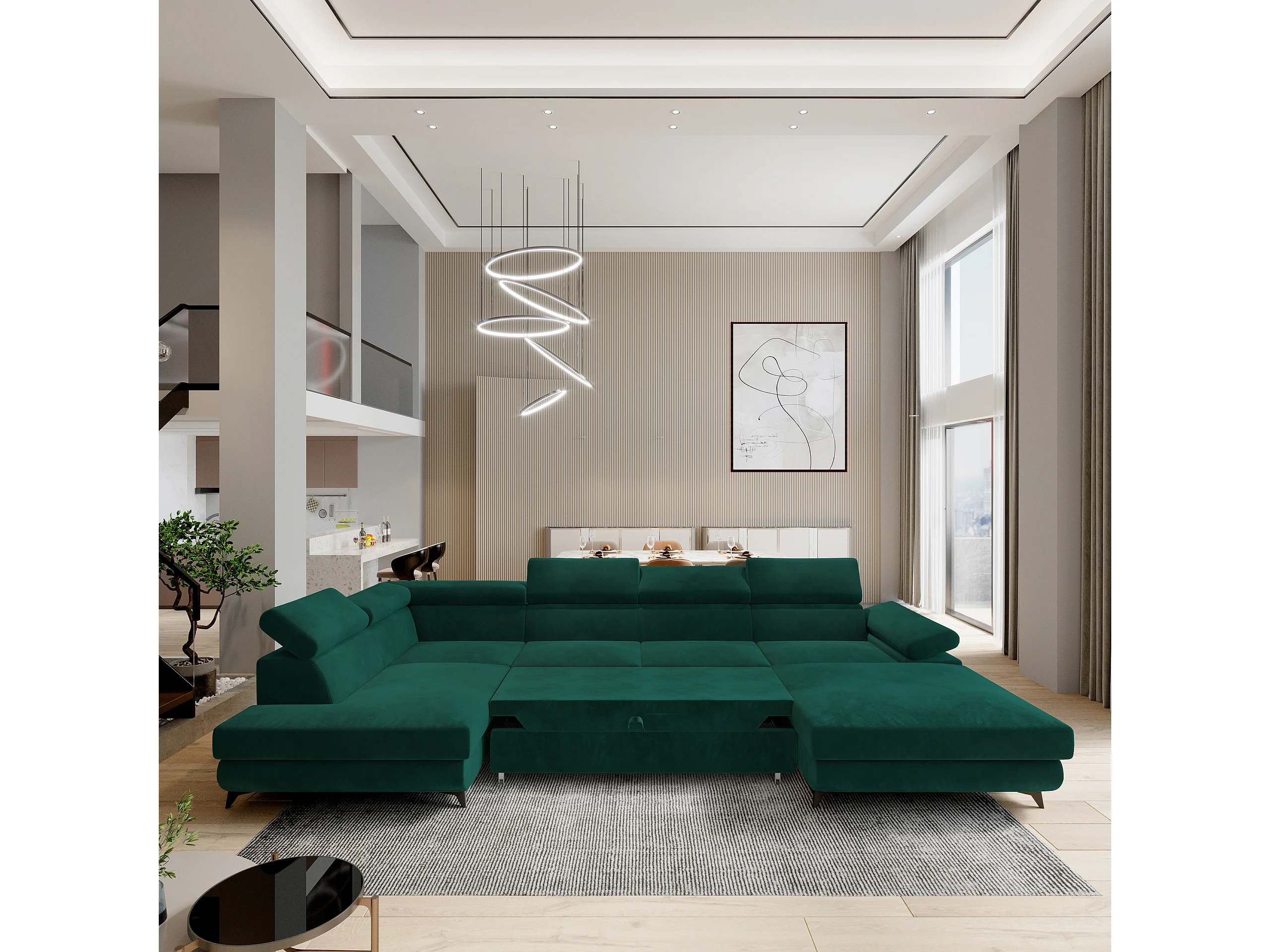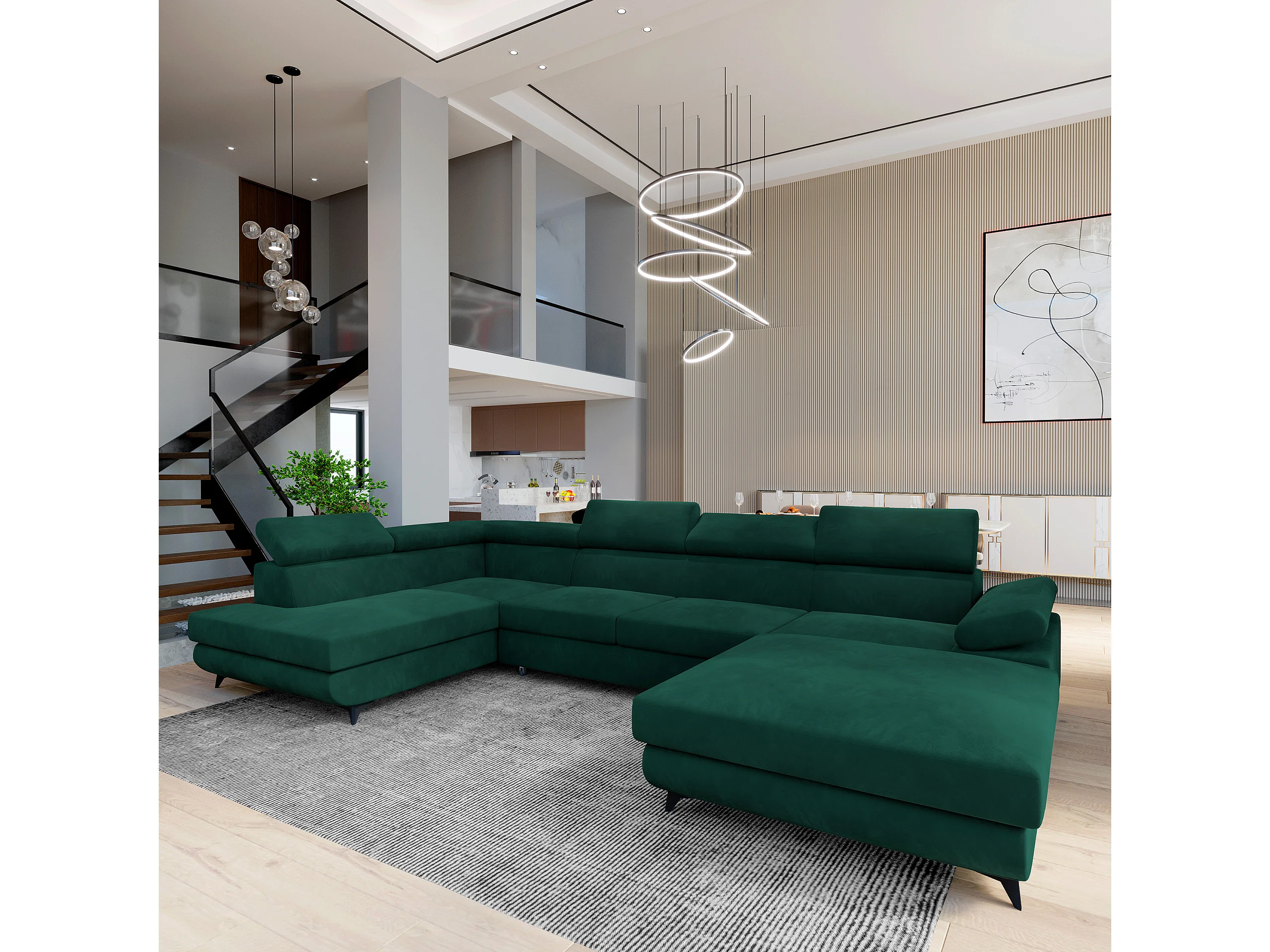 Hoekbank RUBANO van fluweel met slaapfunctie Grün