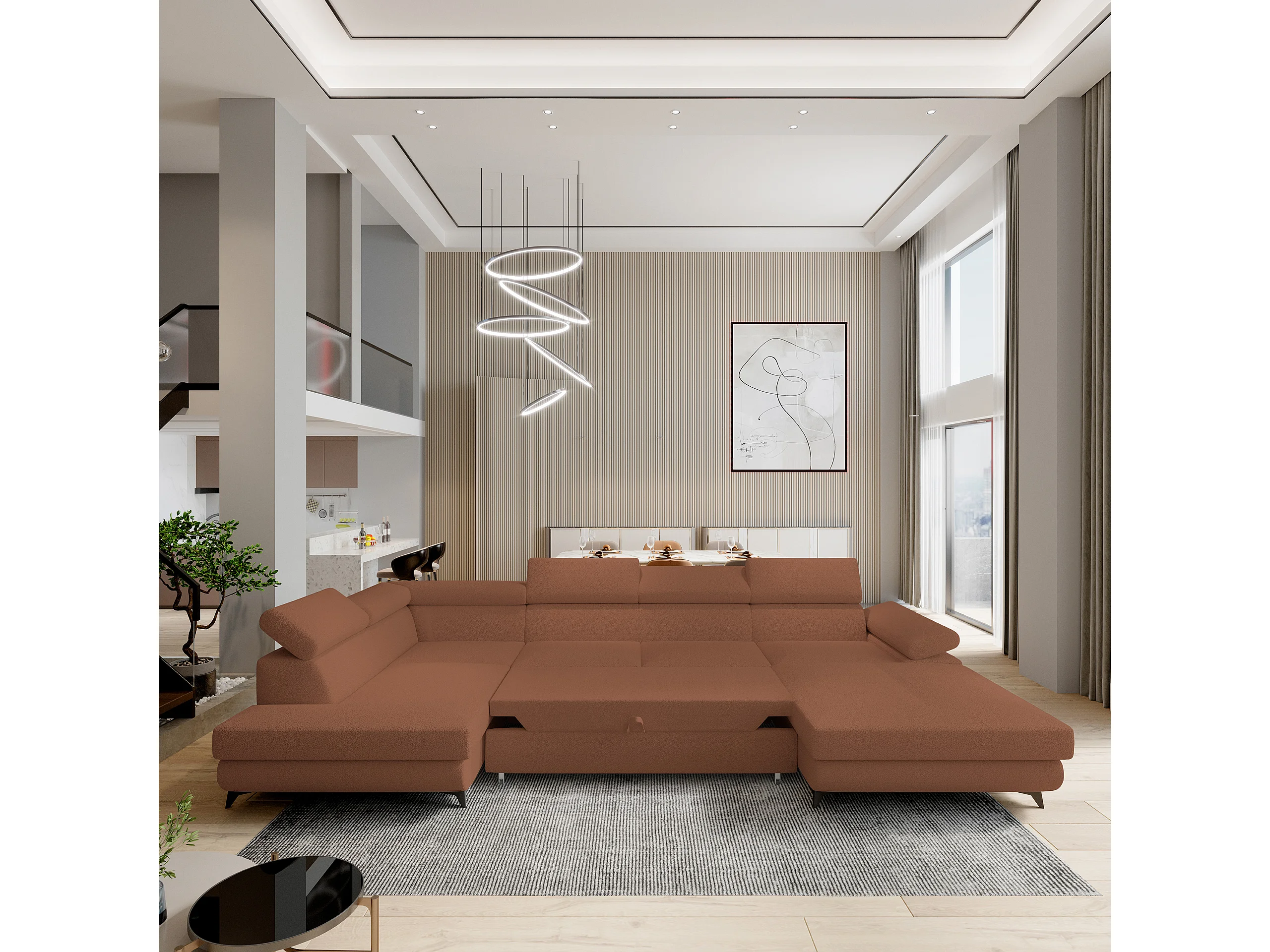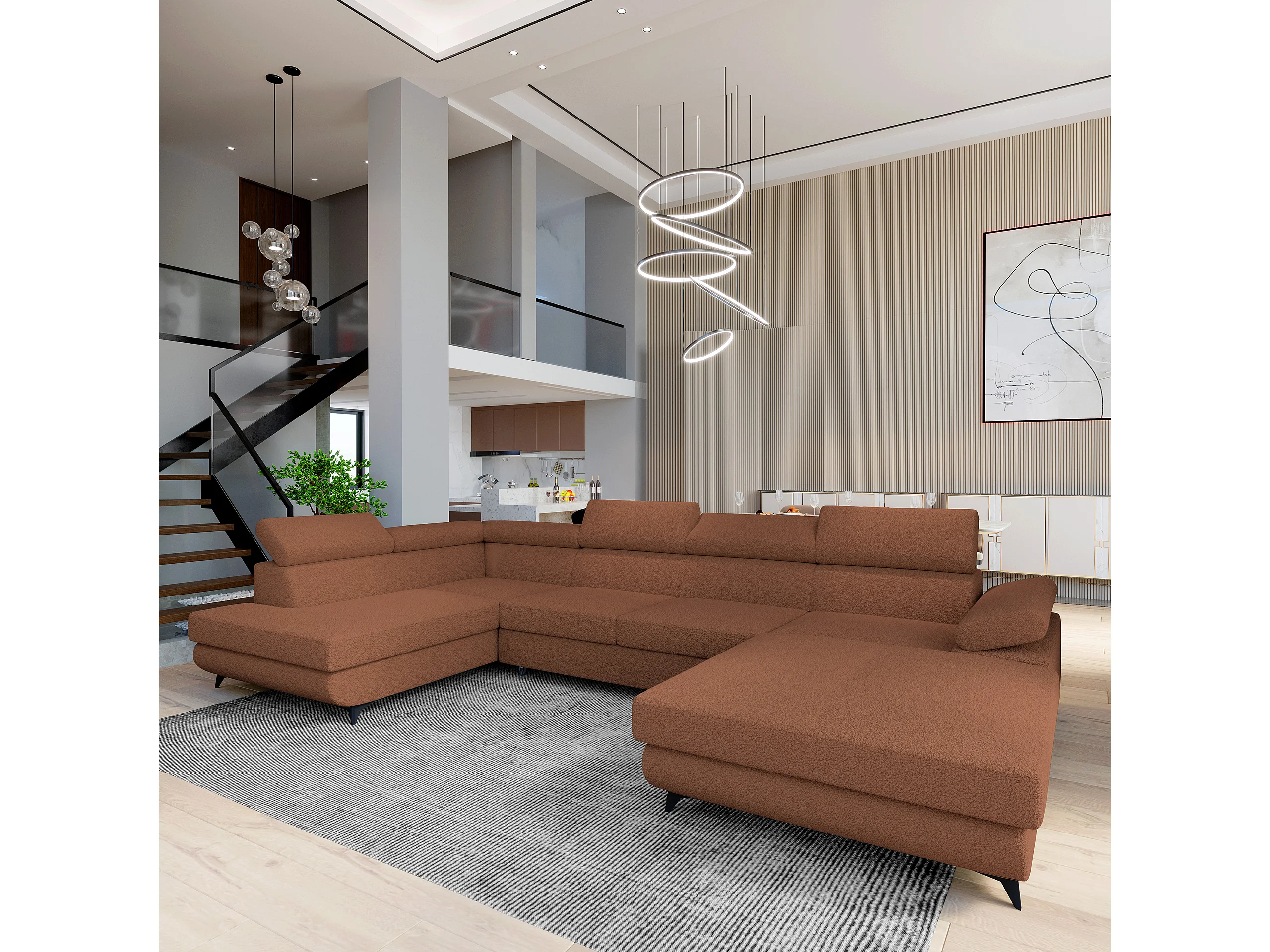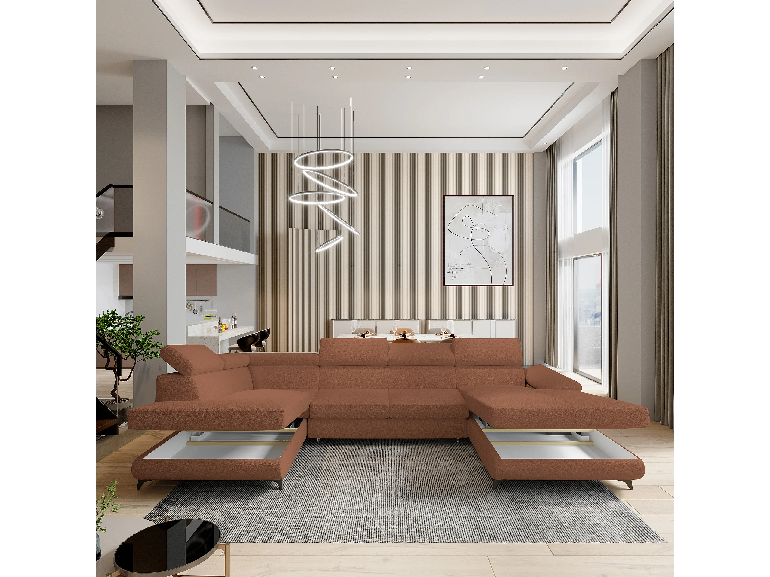 Hoekbank RUBANO van fluweel met slaapfunctie Orange