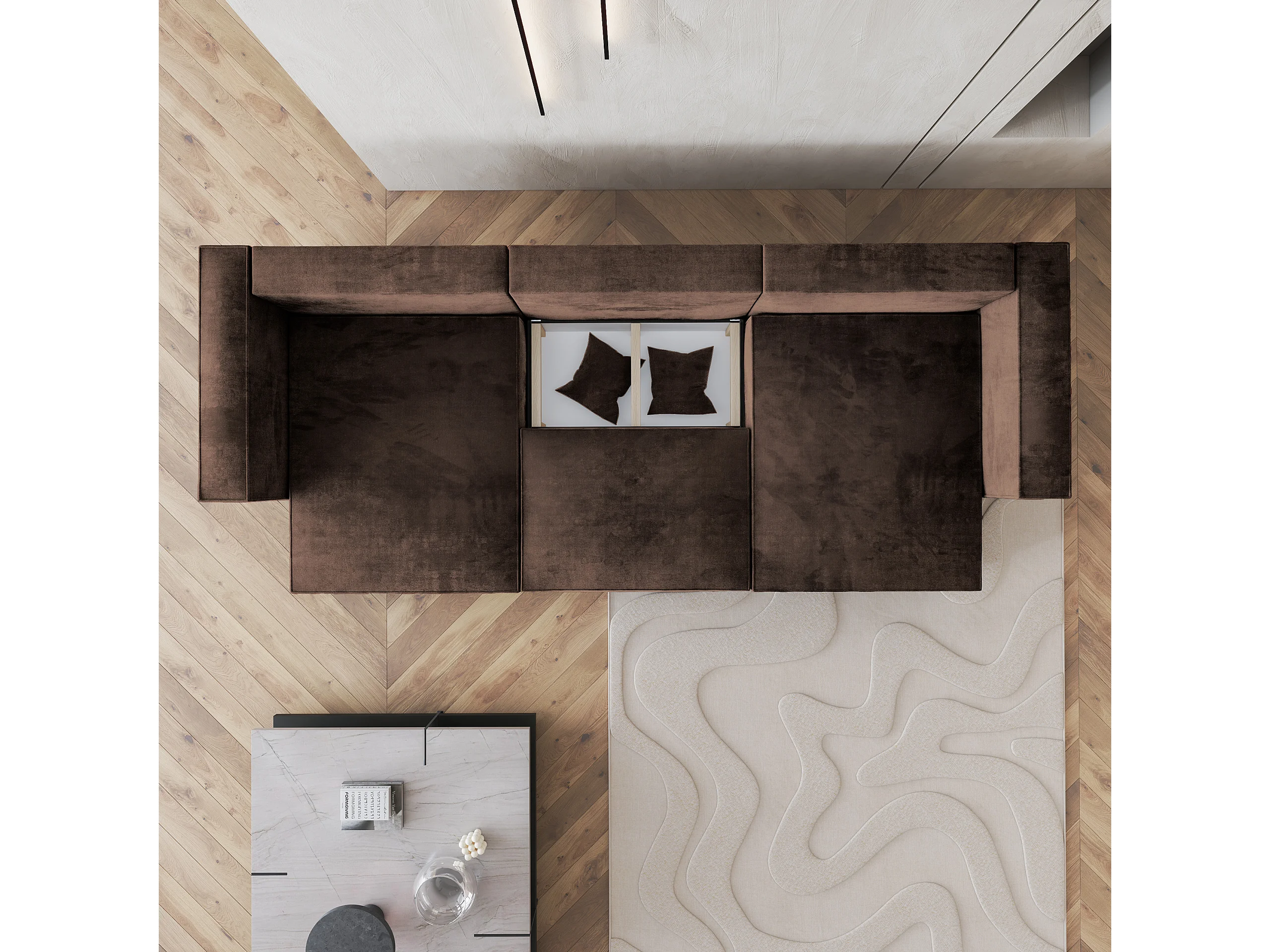 Hoekbank SARMO van fluweel met slaapfunctie Braun