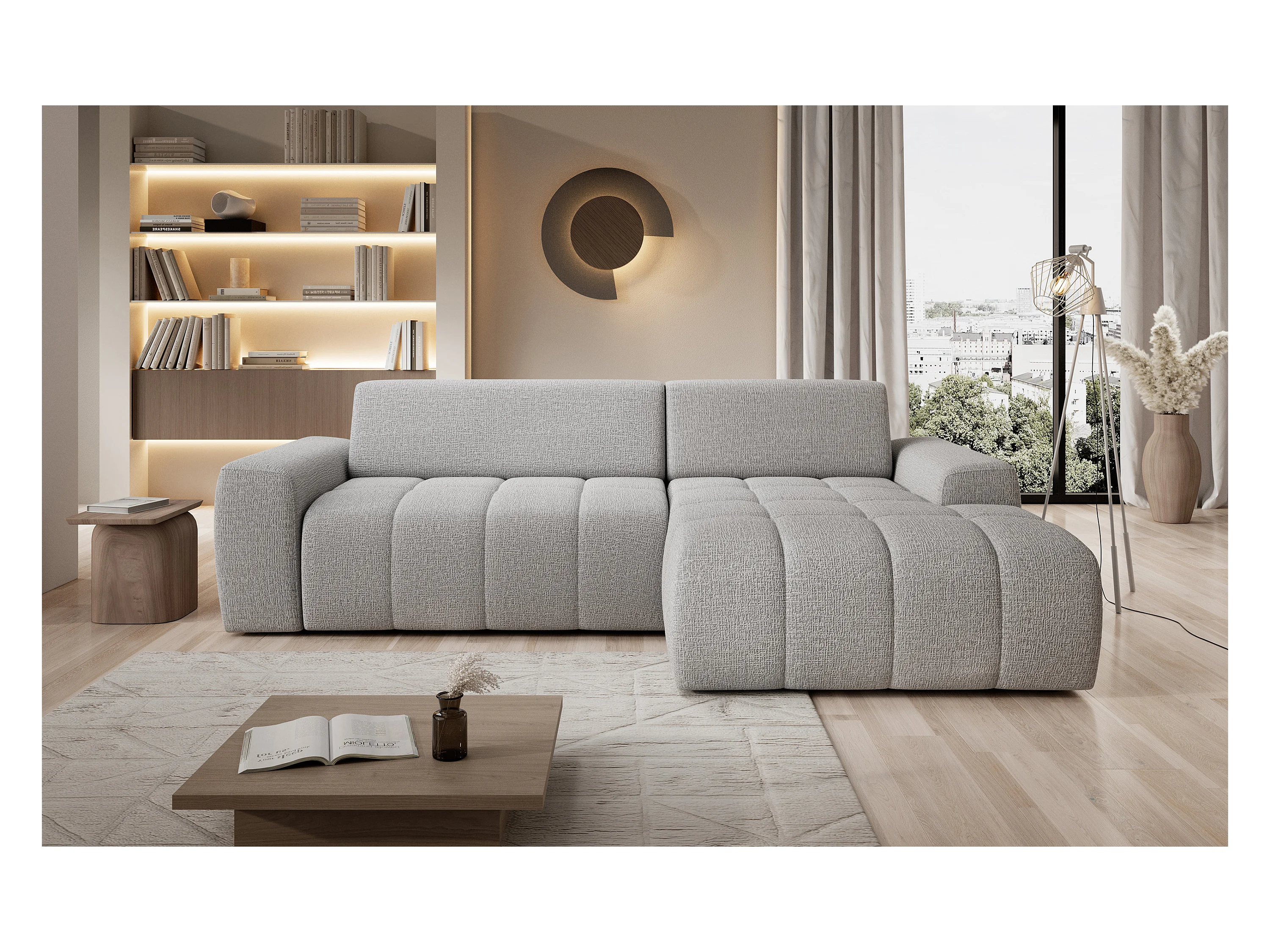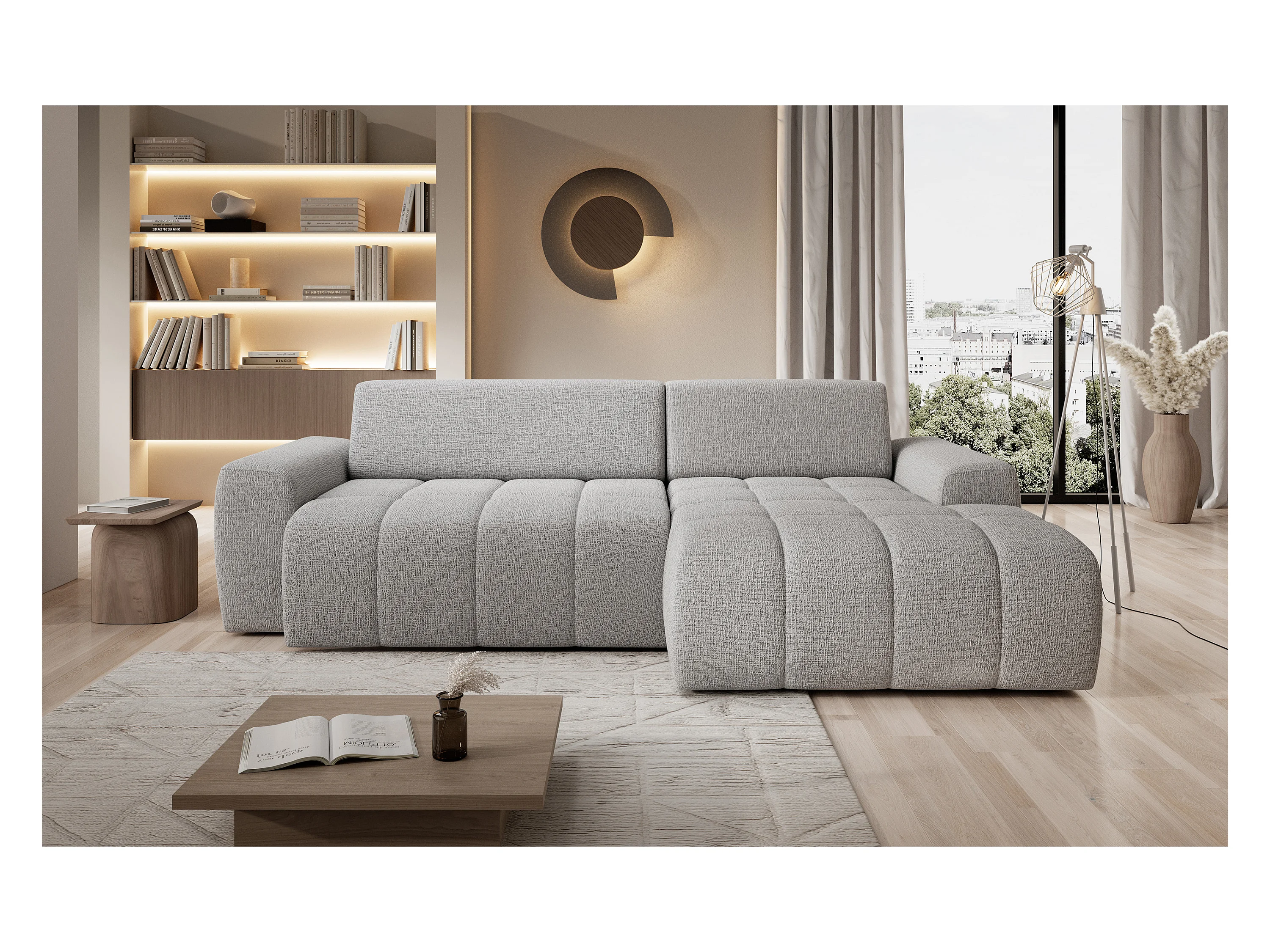 Gestoffeerde hoekbankRAVEN L met bedfunctie, bedruimte separaat, gestoffeerd met verstelbare hoofdsteunen 257x198x96 cm Rechts Asgrijs