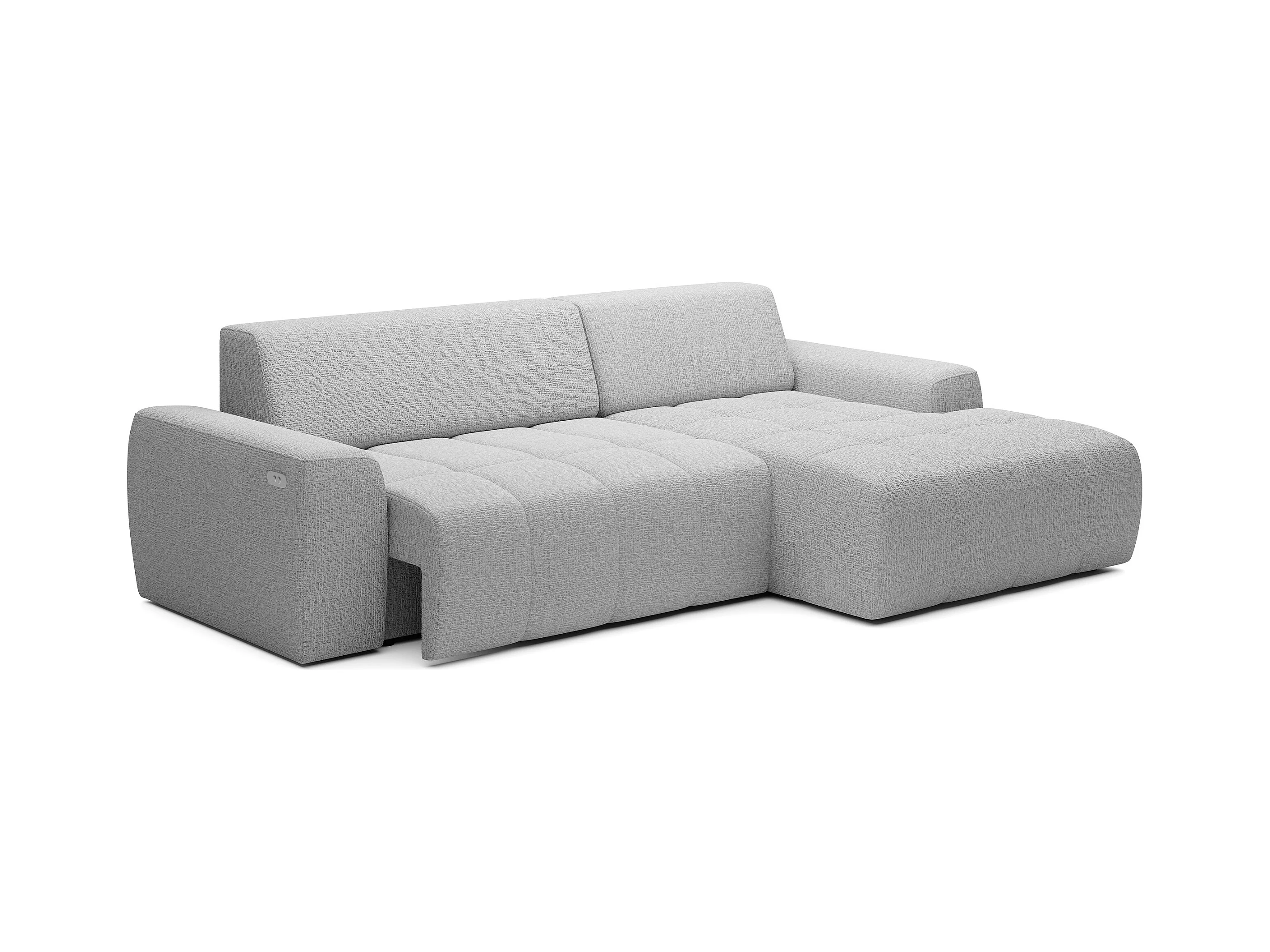 Hoekbank Tollo Grijs Anthology-stof Rechterkant 302x217x105 cm, L-vorm bank met slaapfunctie, bedlade 120x85x17 cm, elektrisch verstelbaar