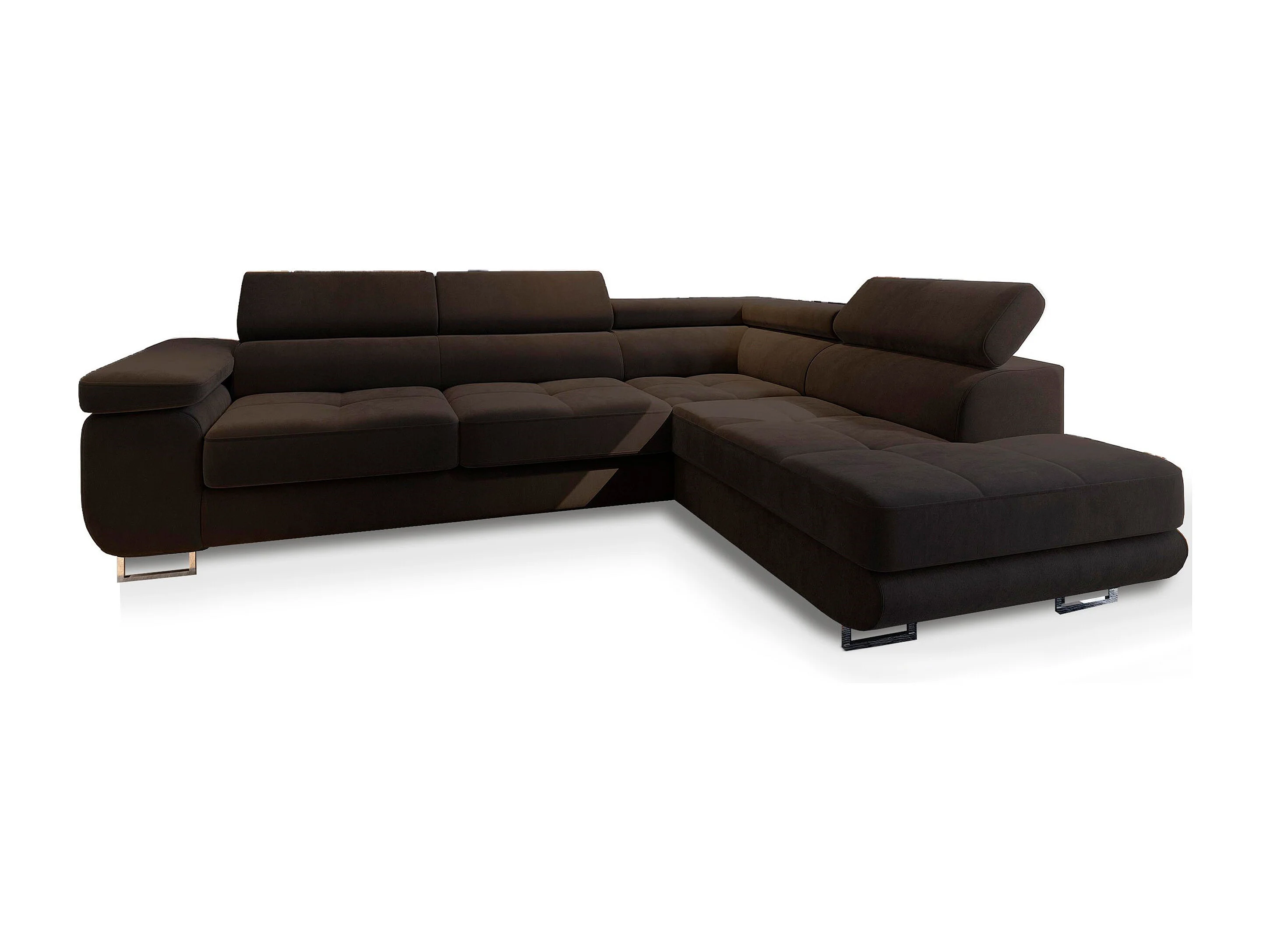 Hoekbank SELVA van fluweel met slaapfunctie Braun