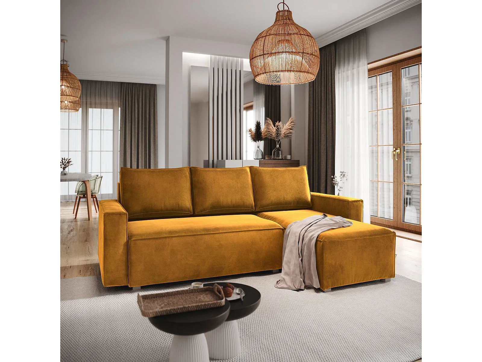 Hoekbank SILES van fluweel met slaapfunctie Gelb