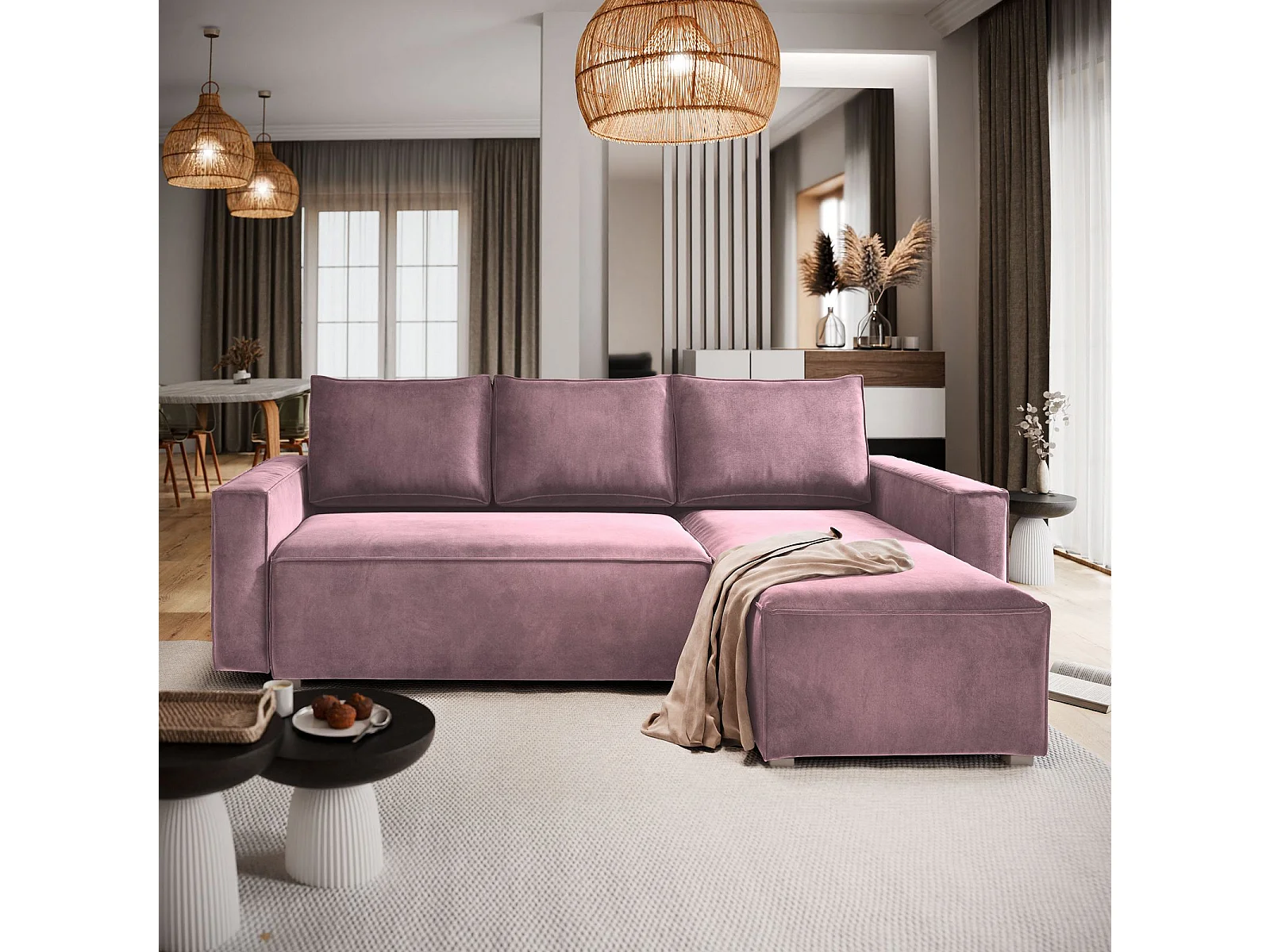 Hoekbank SILES van fluweel met slaapfunctie Lila