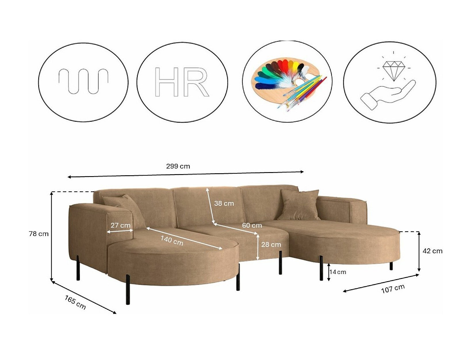 Hoekbank, Sofa Designer Modena U Pure stof Noel Beige
