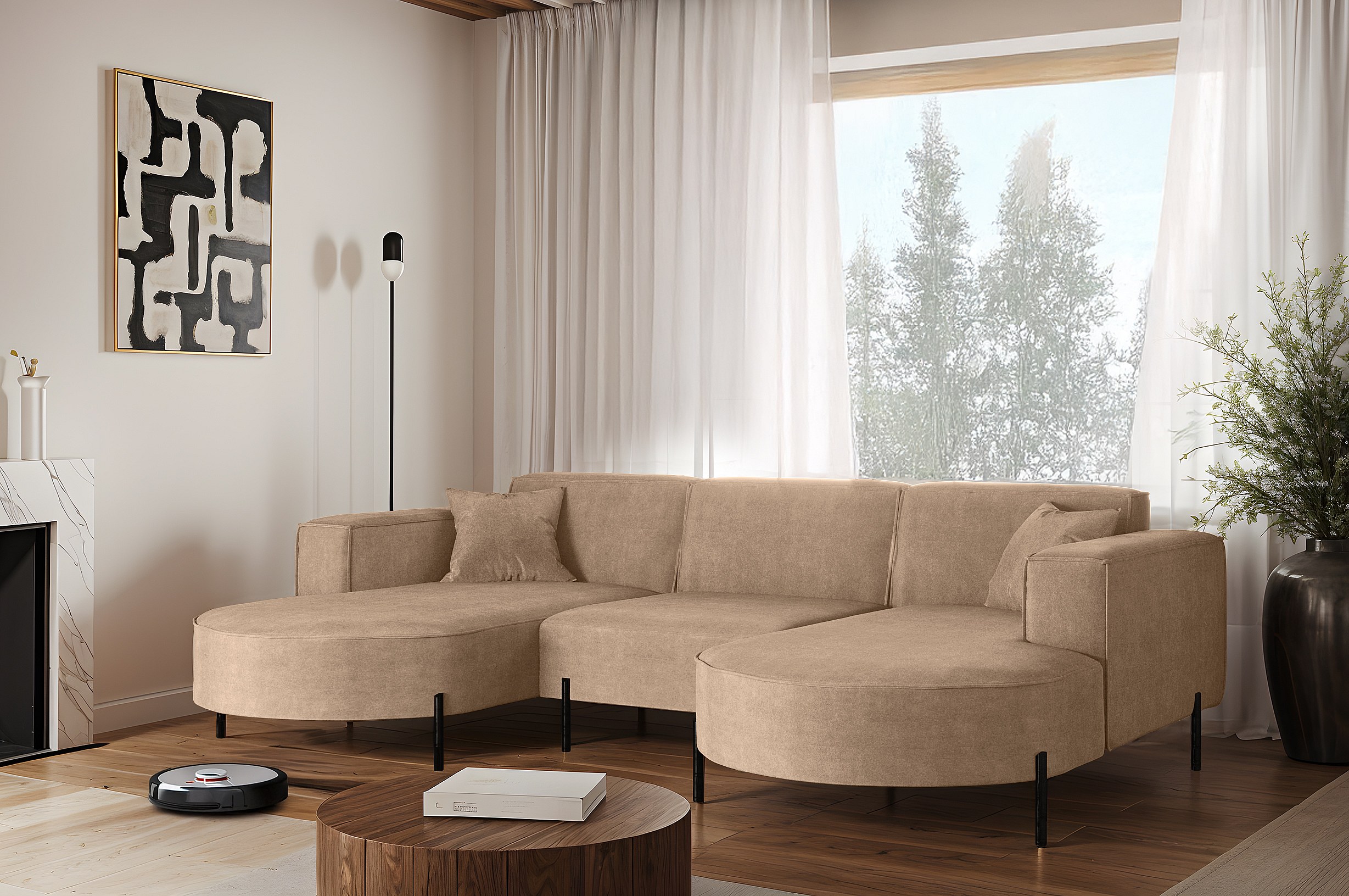 Hoekbank, Sofa Designer Modena U Pure stof Noel Cold Beige