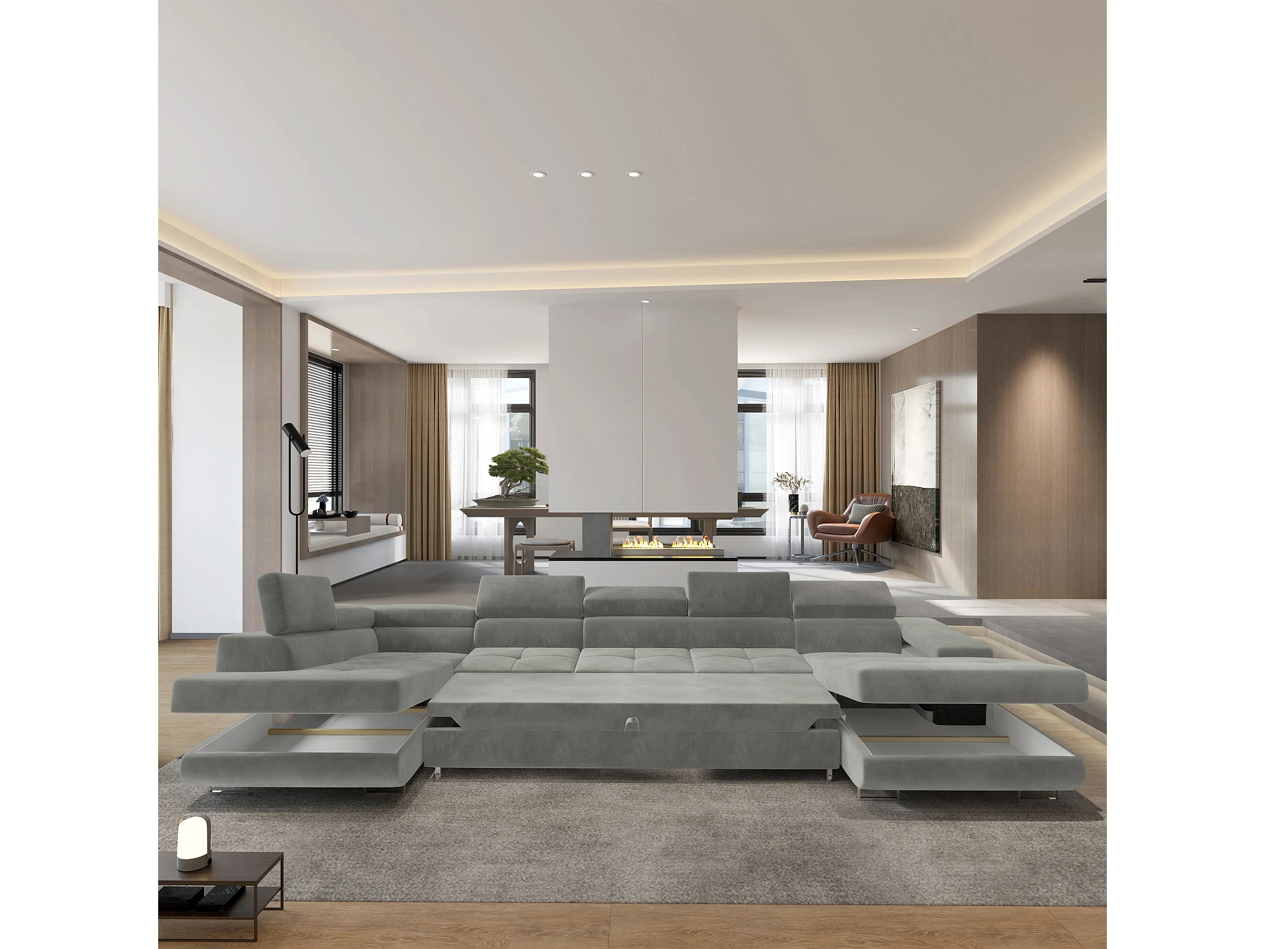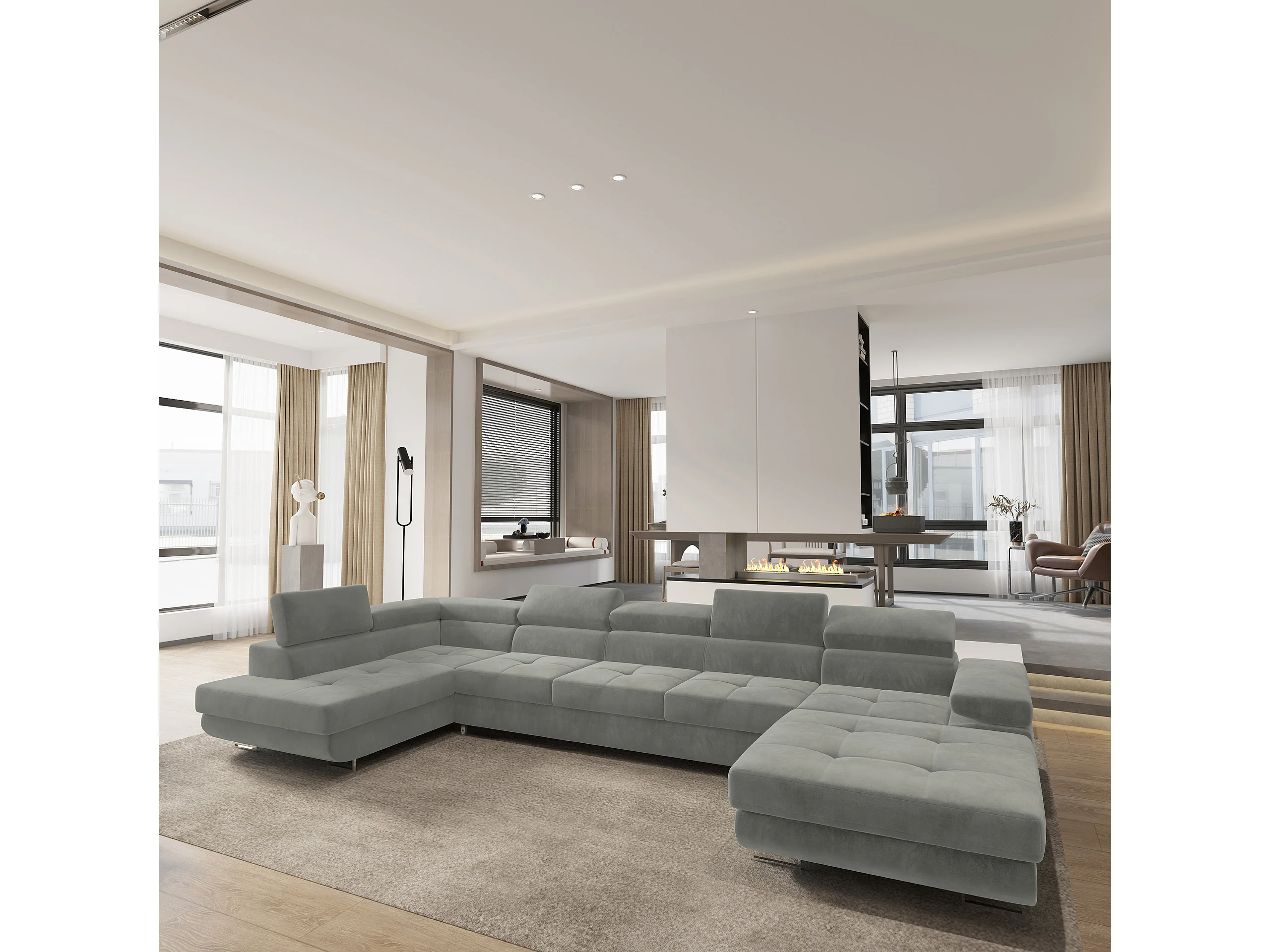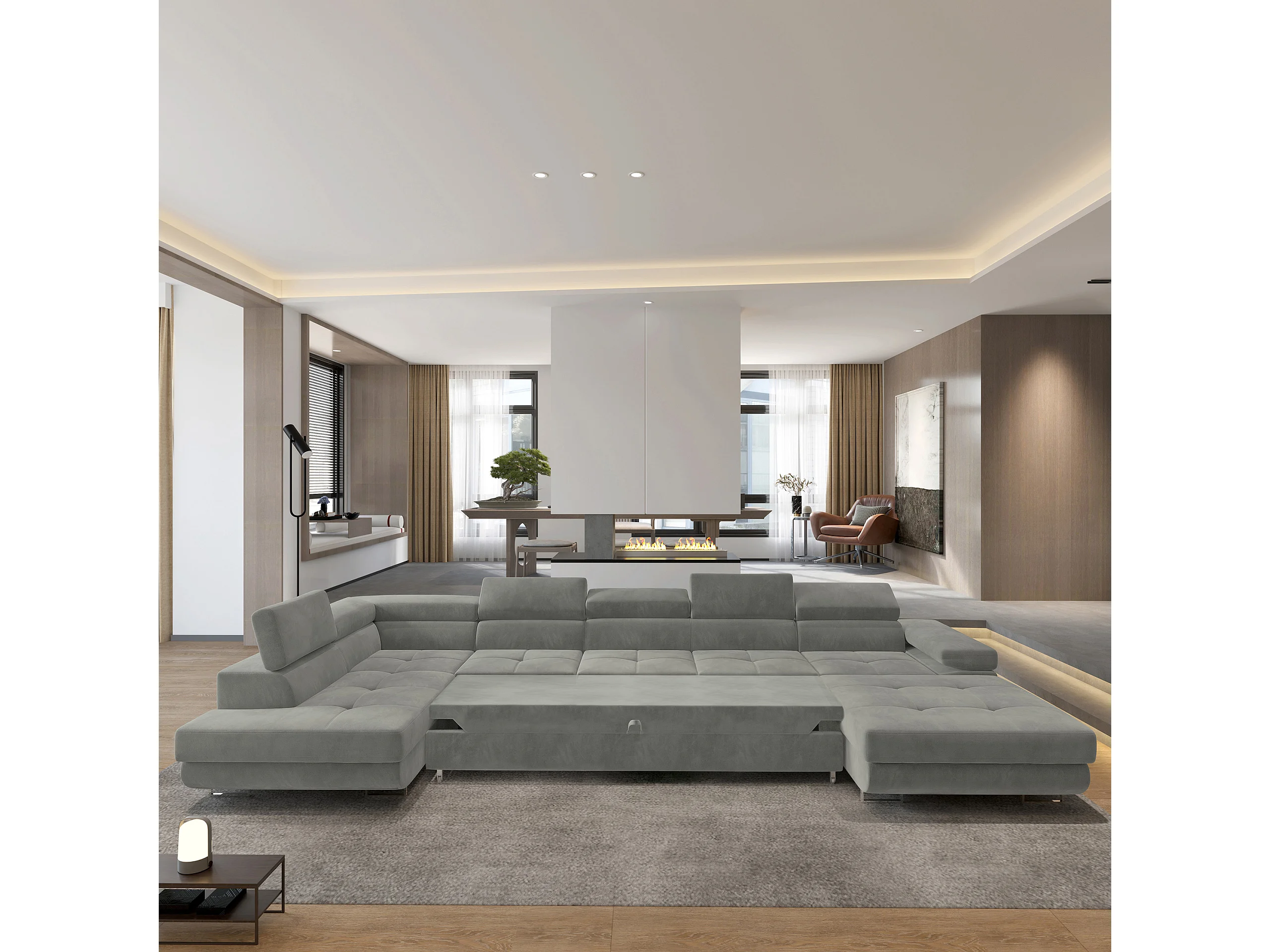 Hoekbank TORIVA van fluweel met slaapfunctie Hellgrau