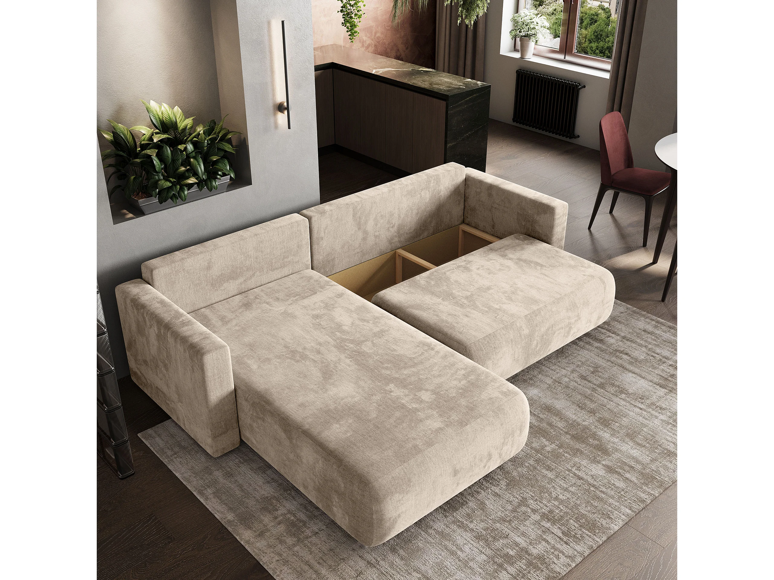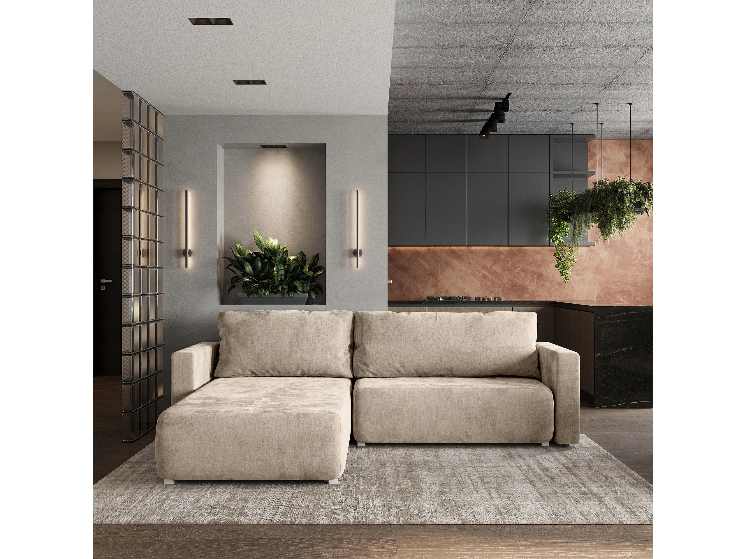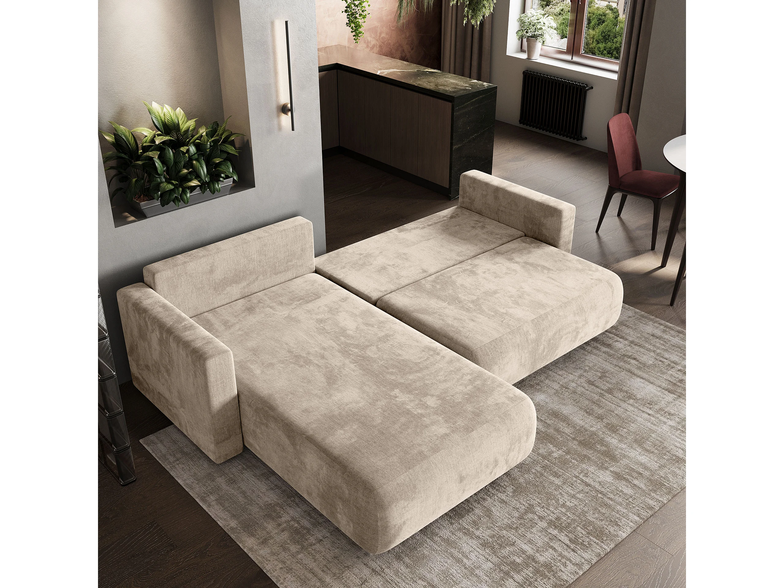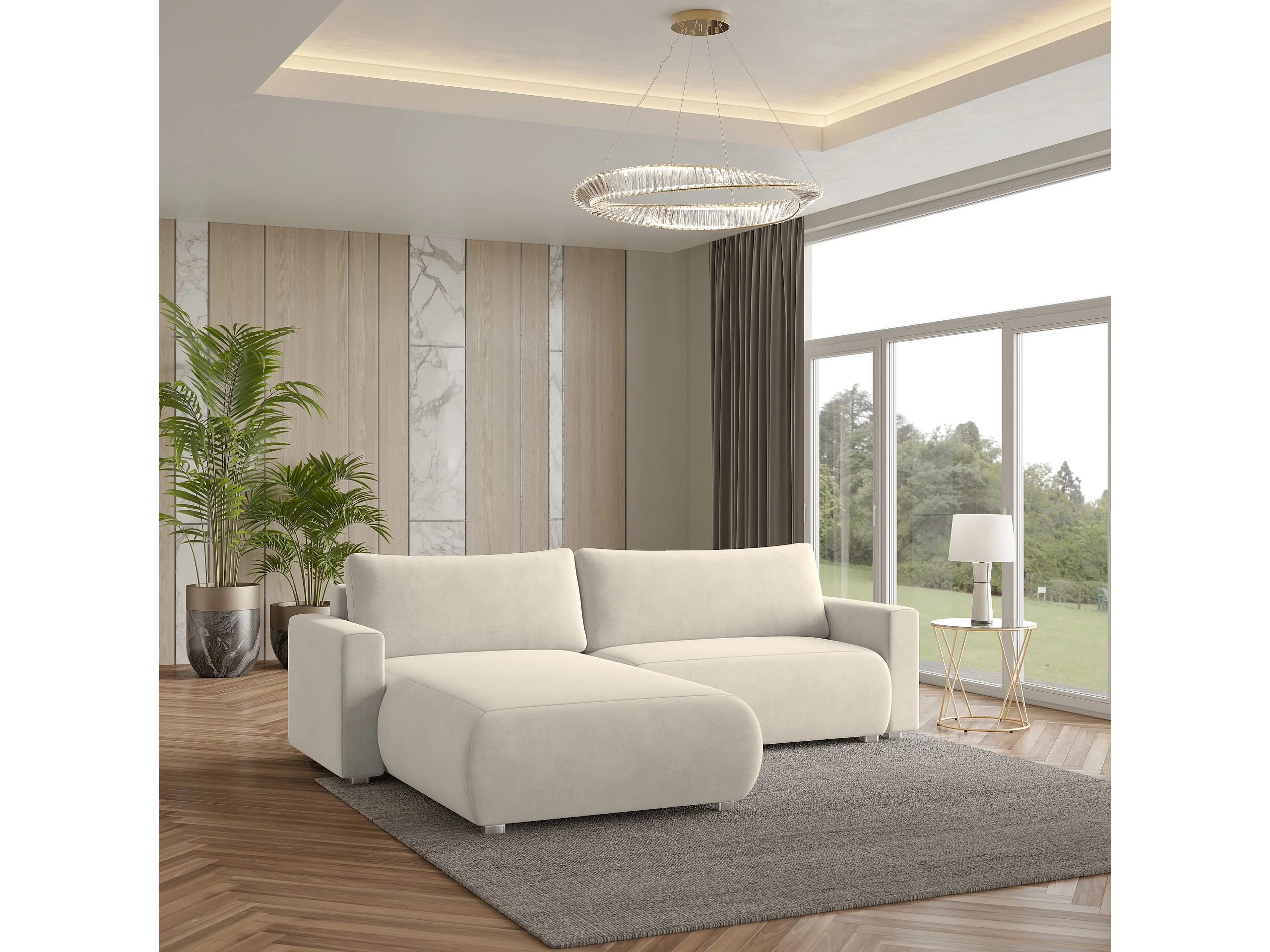 Hoekbank TURIN van fluweel met slaapfunctie Creme