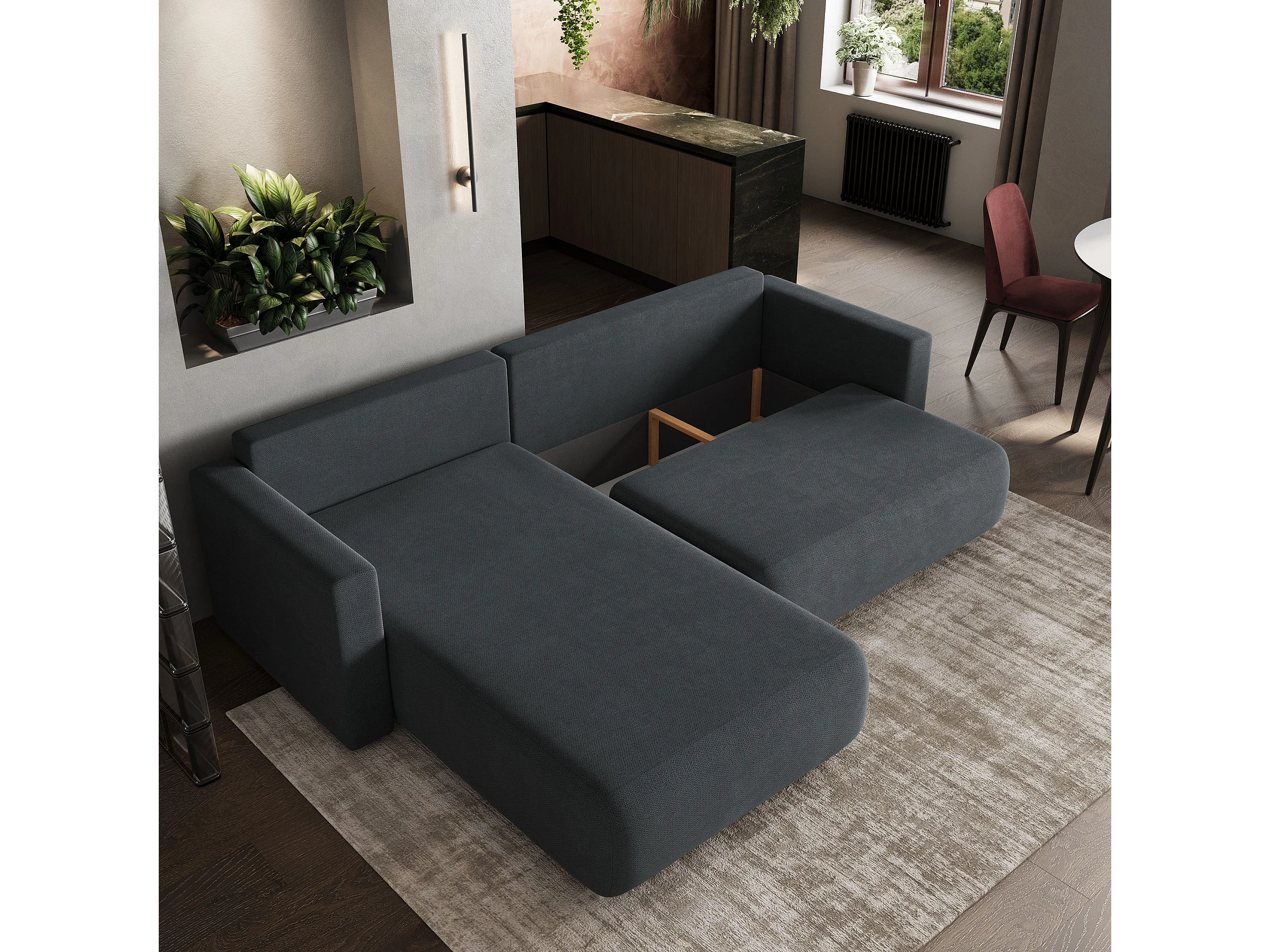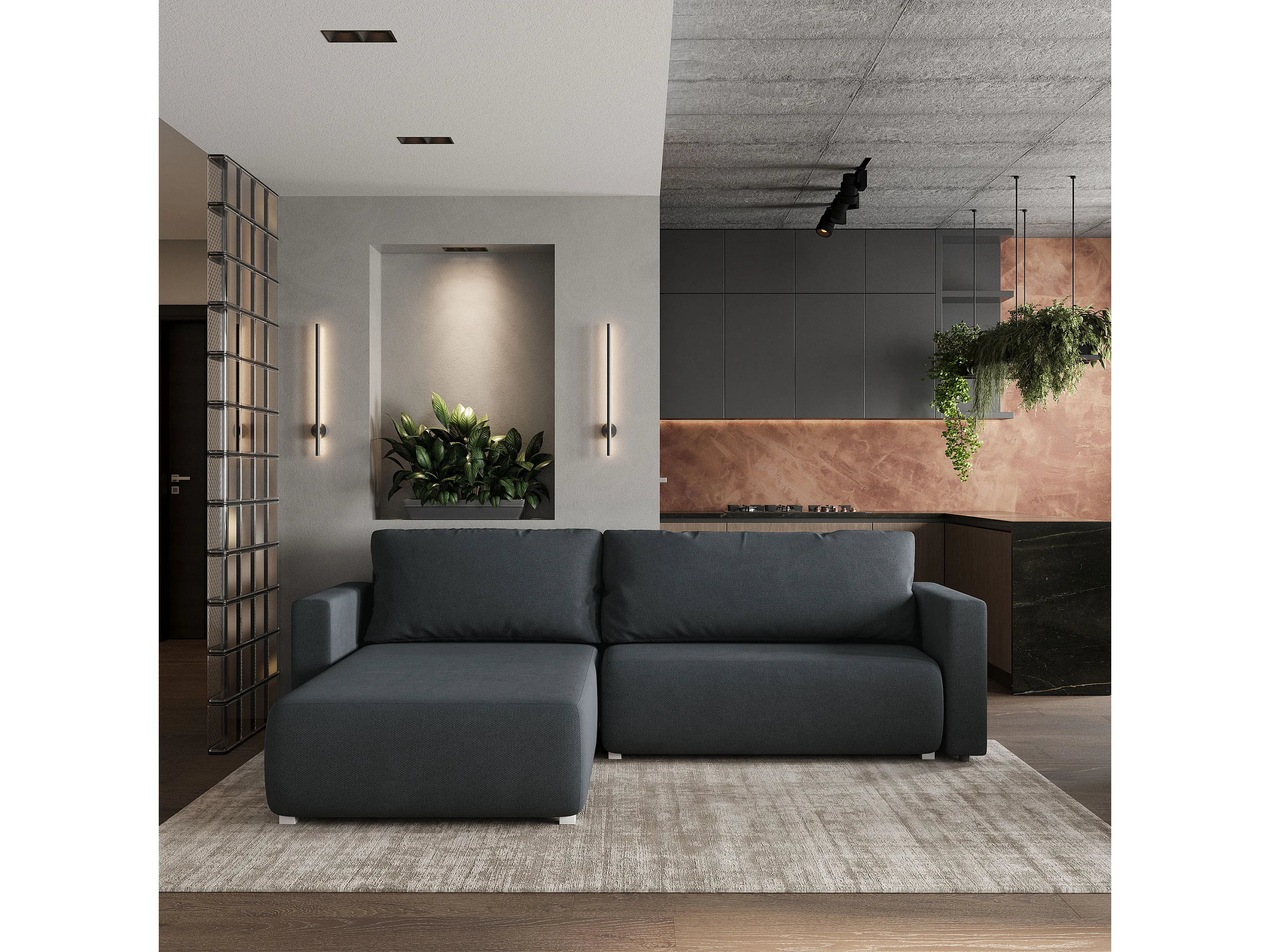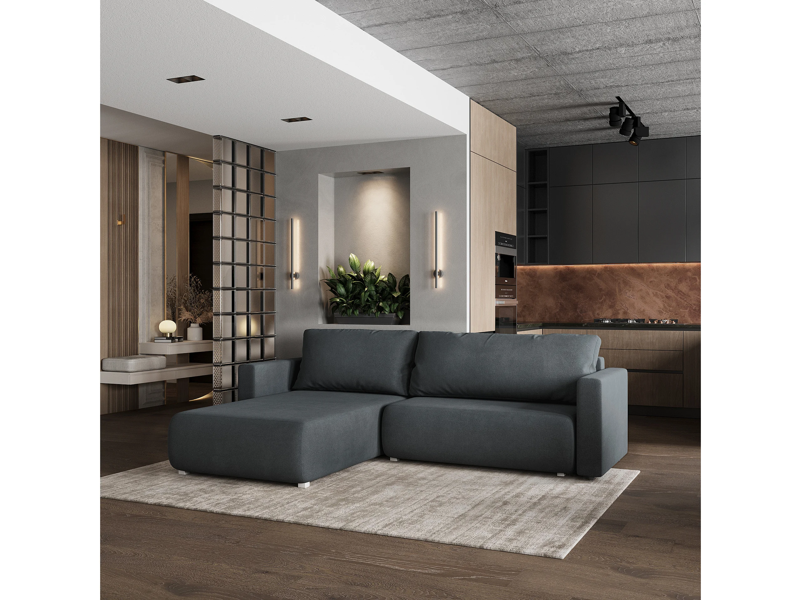 Hoekbank TURIN van fluweel met slaapfunctie Grau