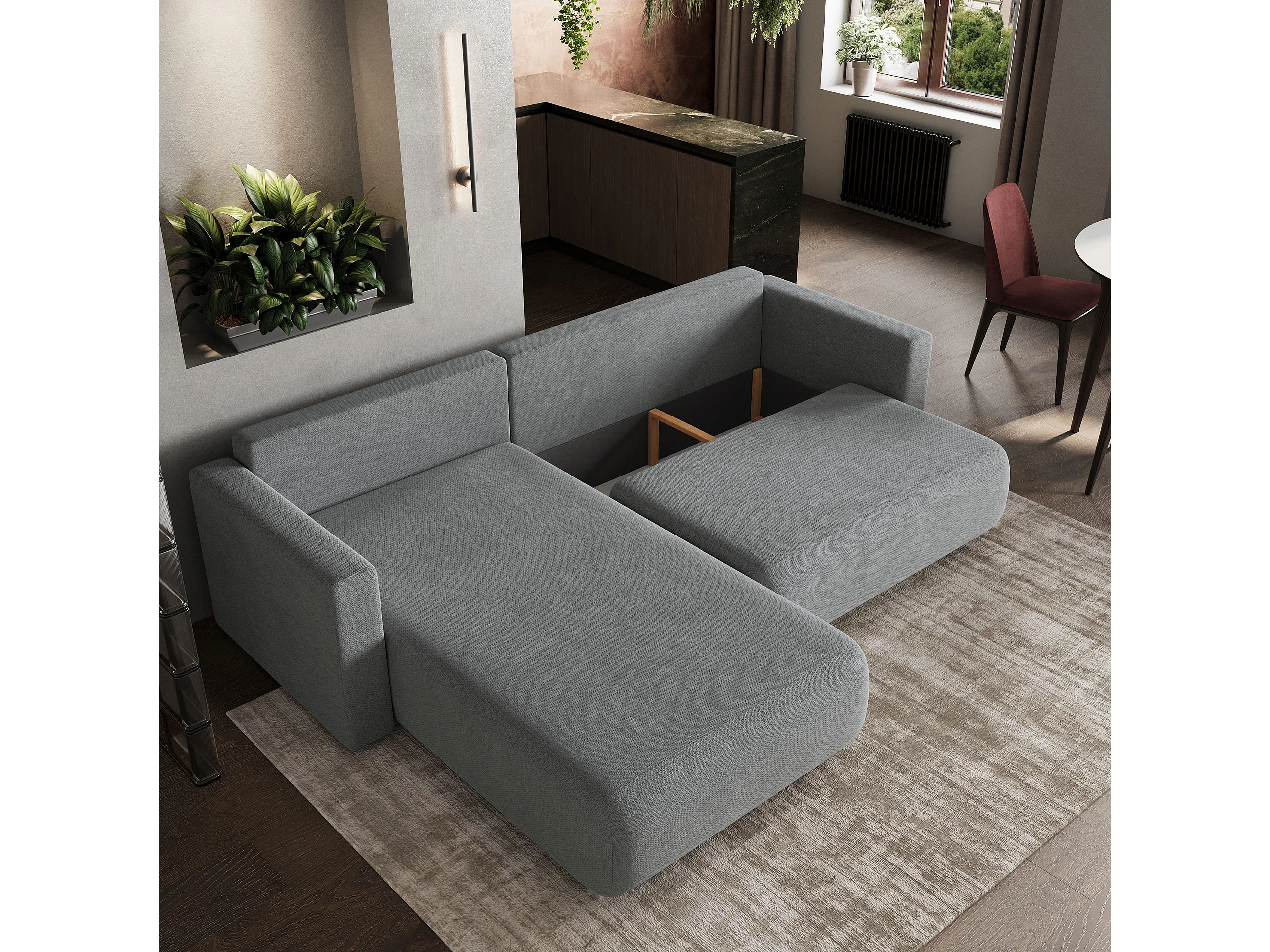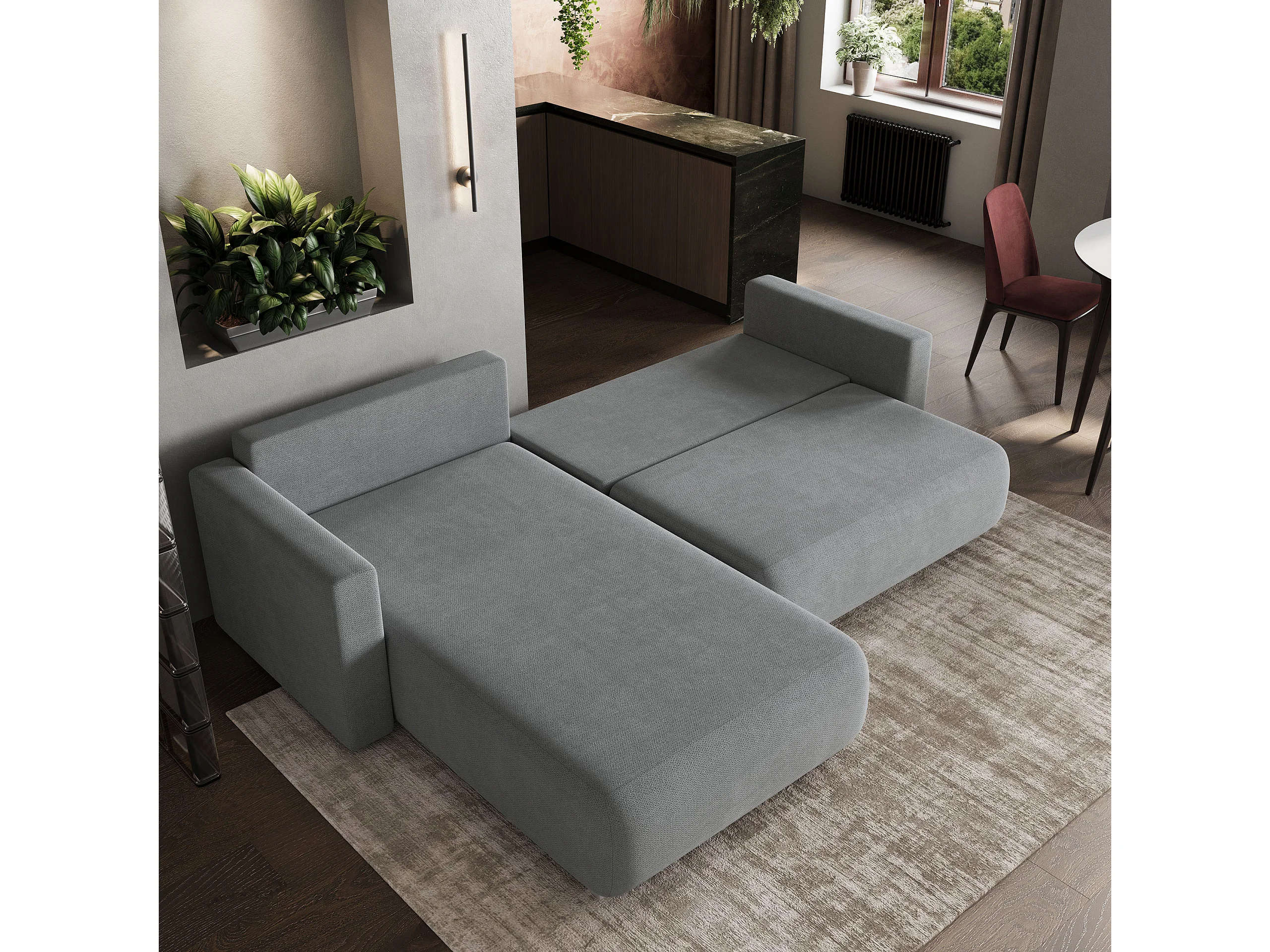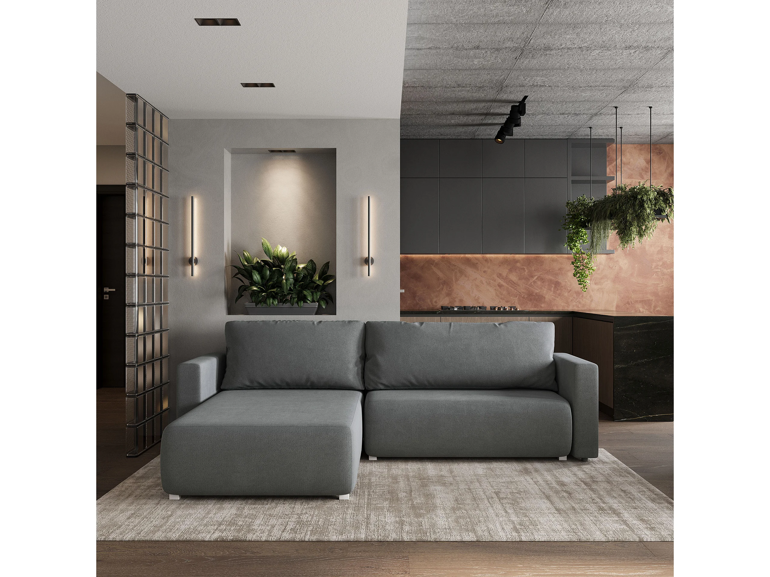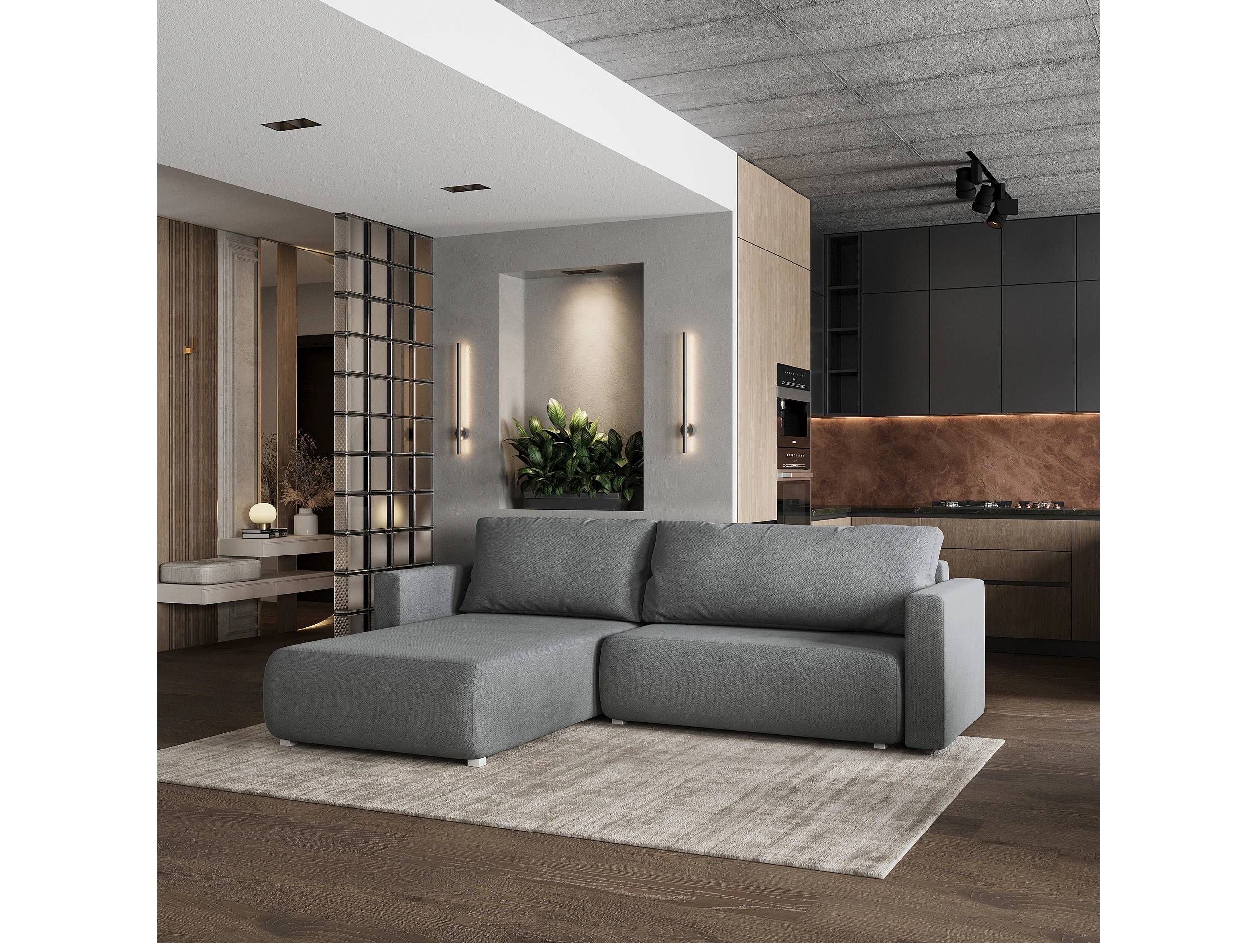 Hoekbank TURIN van fluweel met slaapfunctie Grau