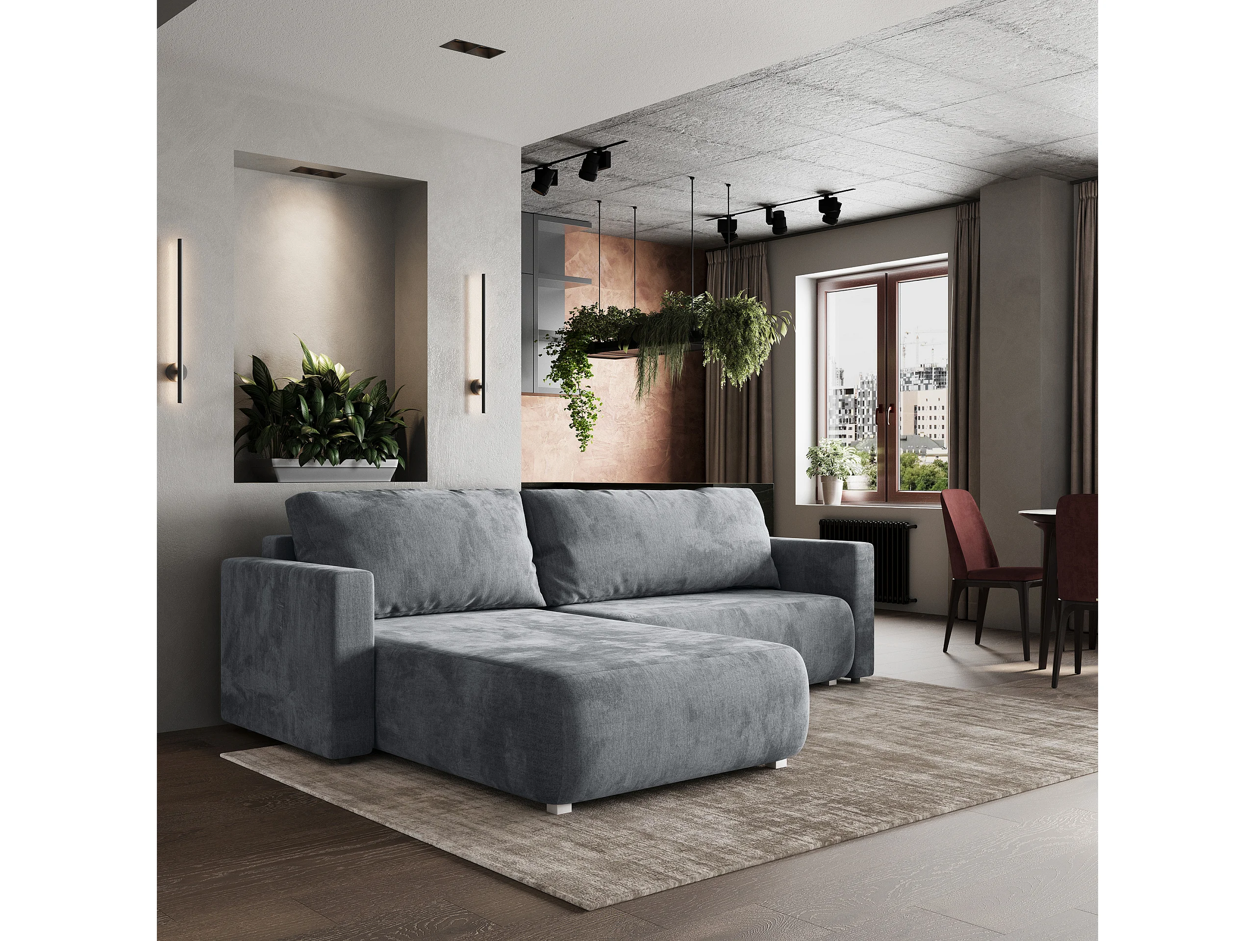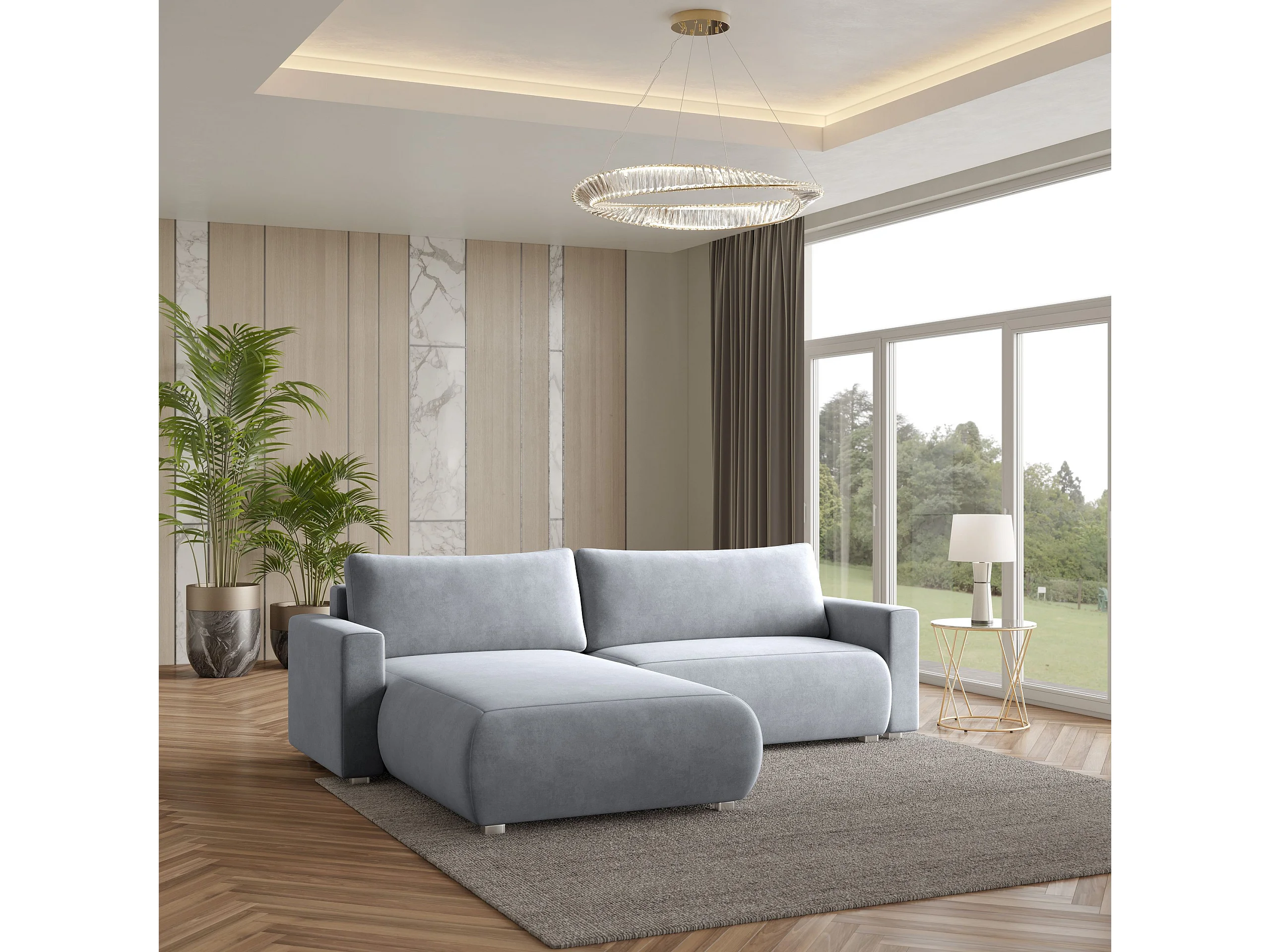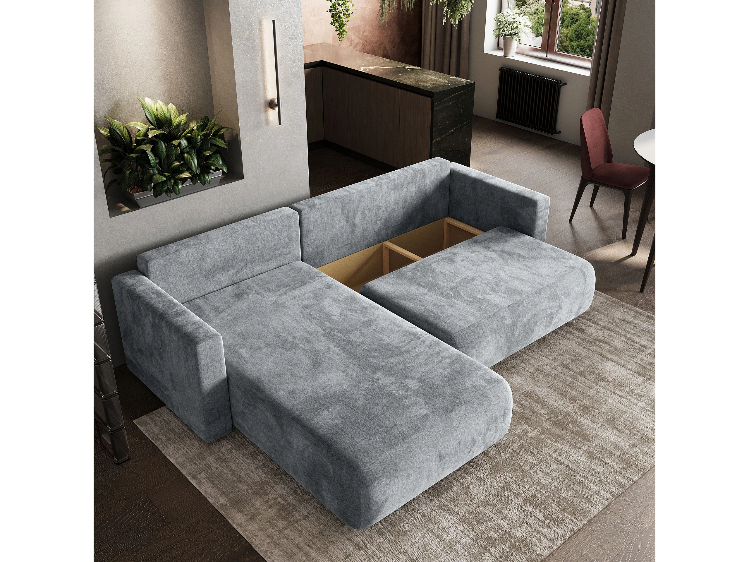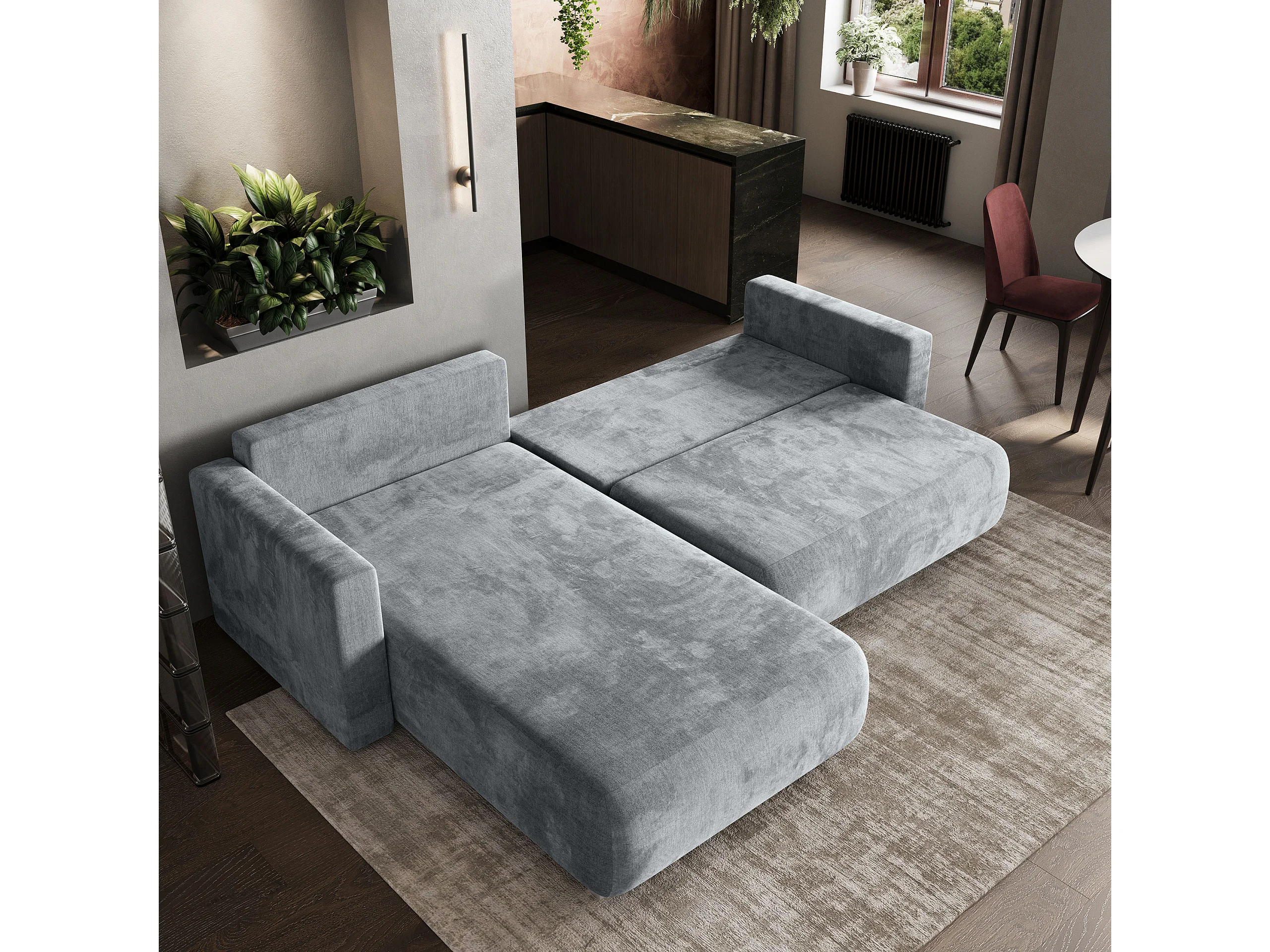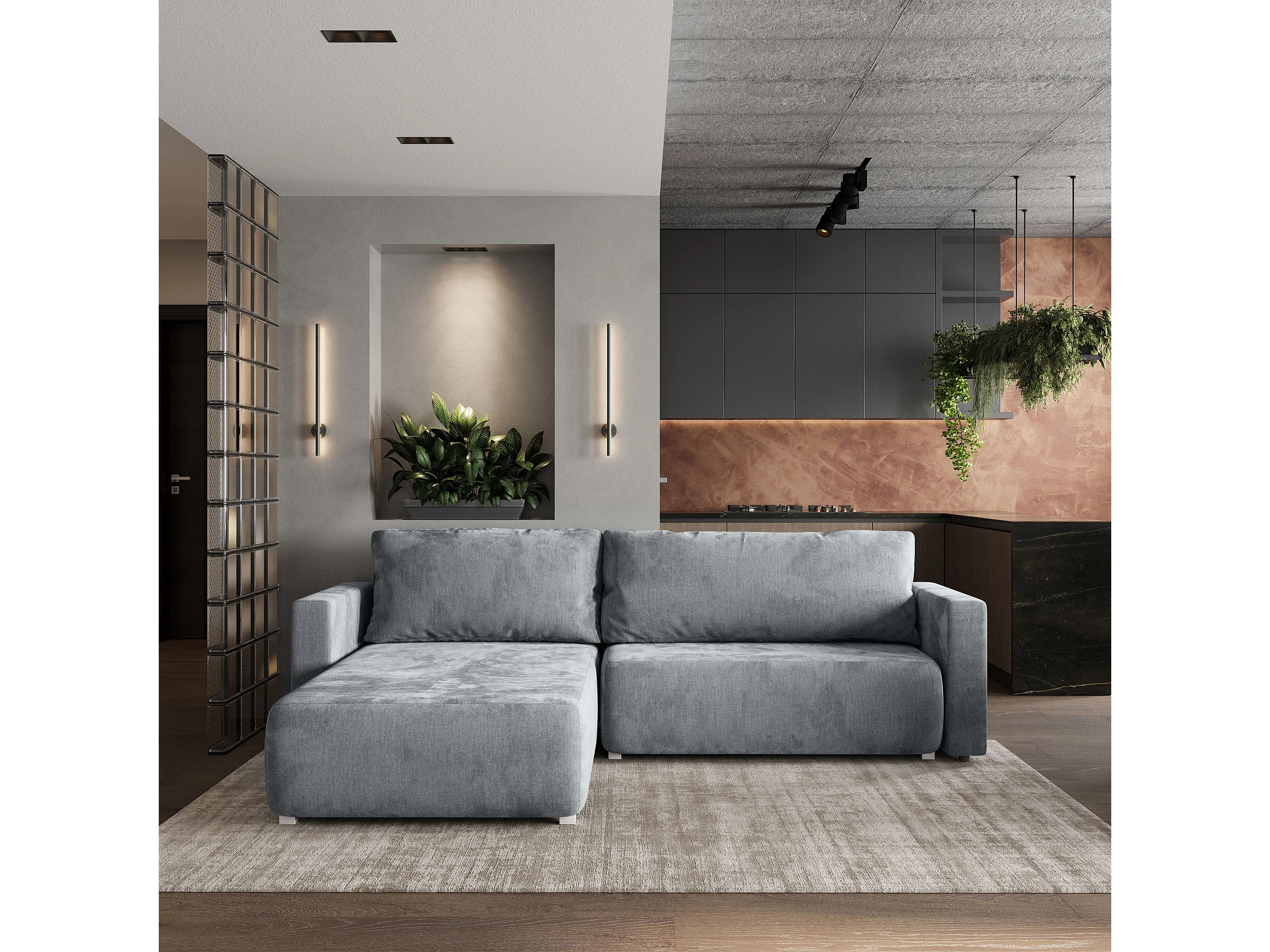 Hoekbank TURIN van fluweel met slaapfunctie Hellgrau