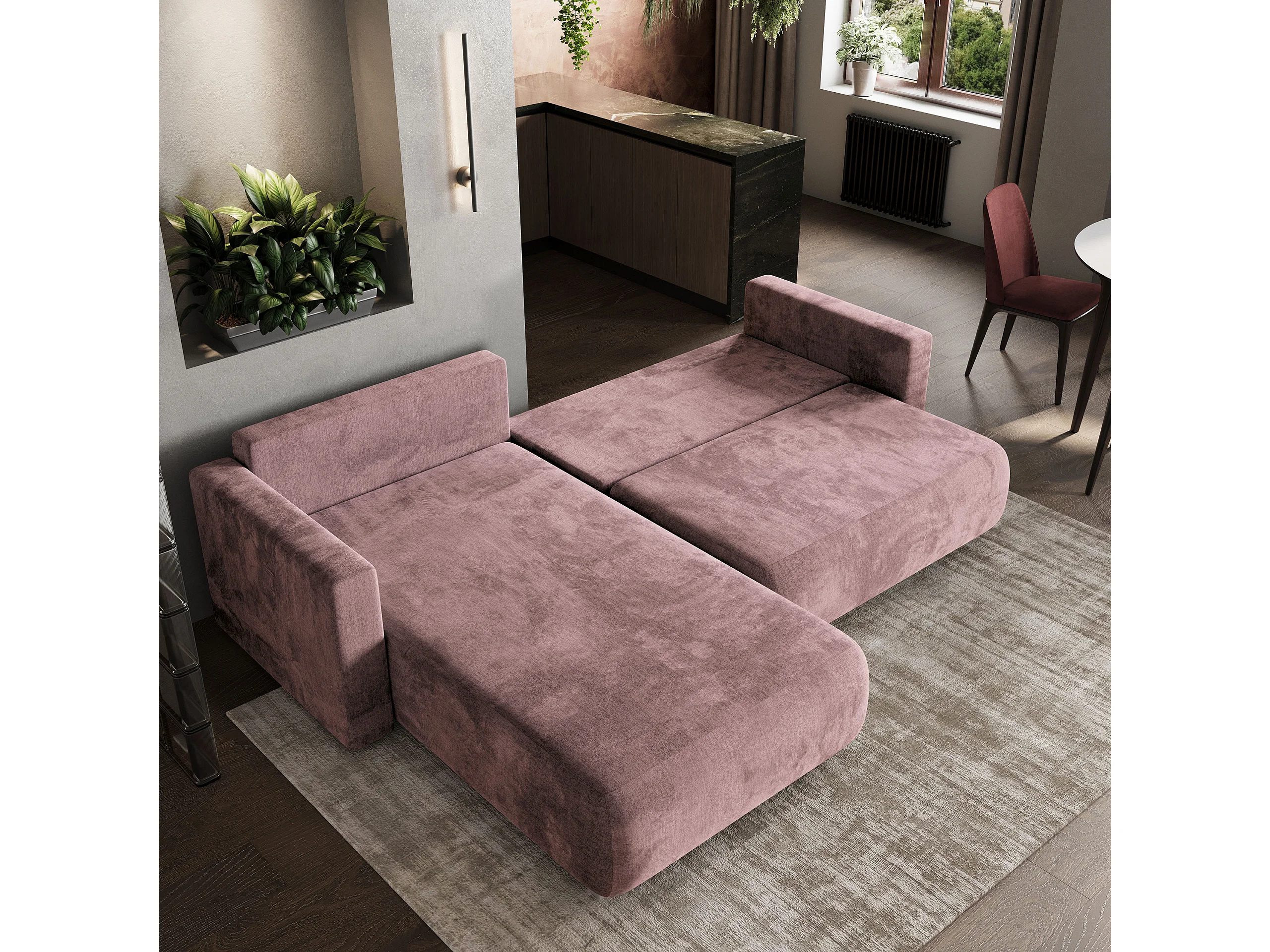 Hoekbank TURIN van fluweel met slaapfunctie Lila