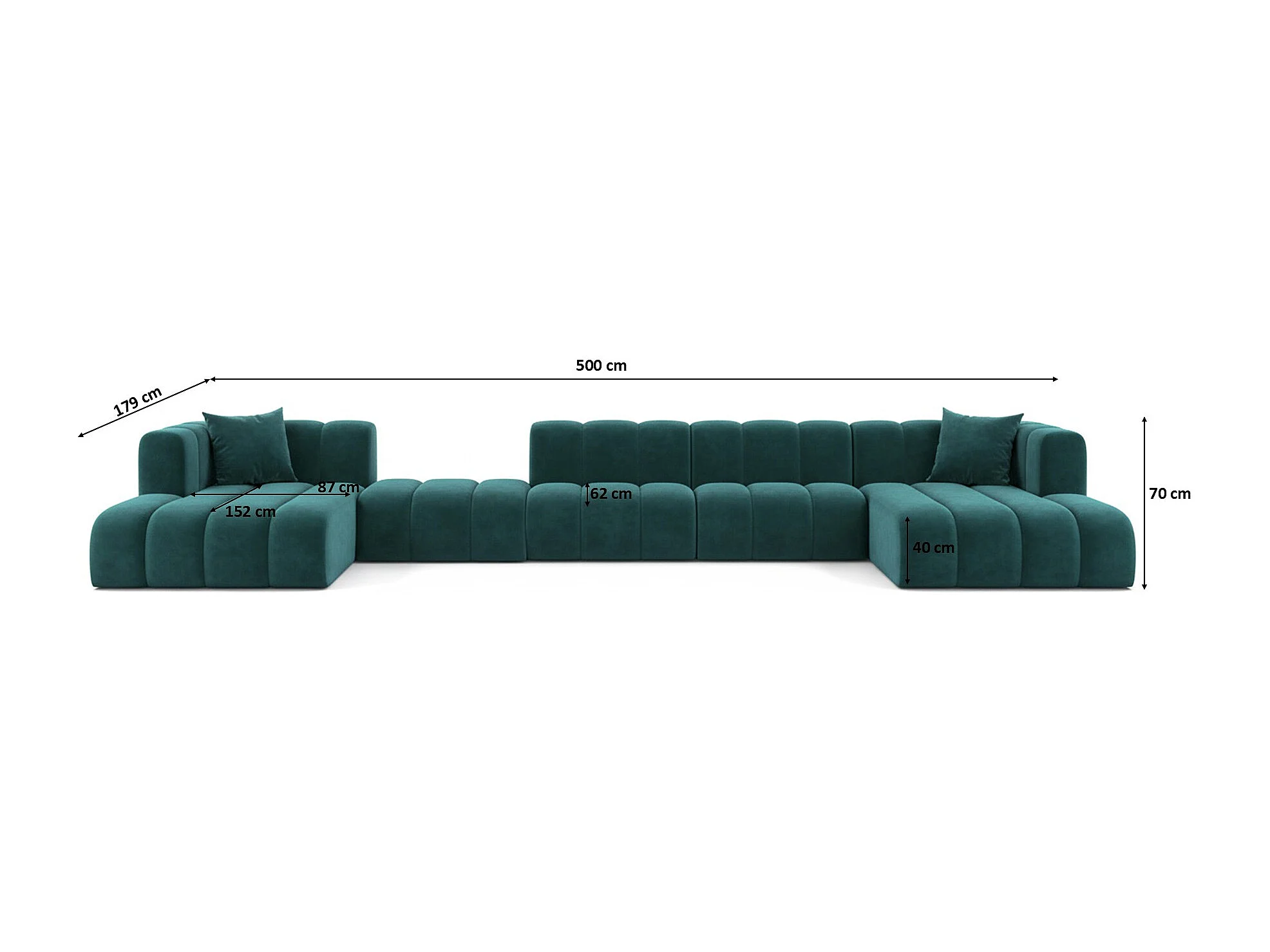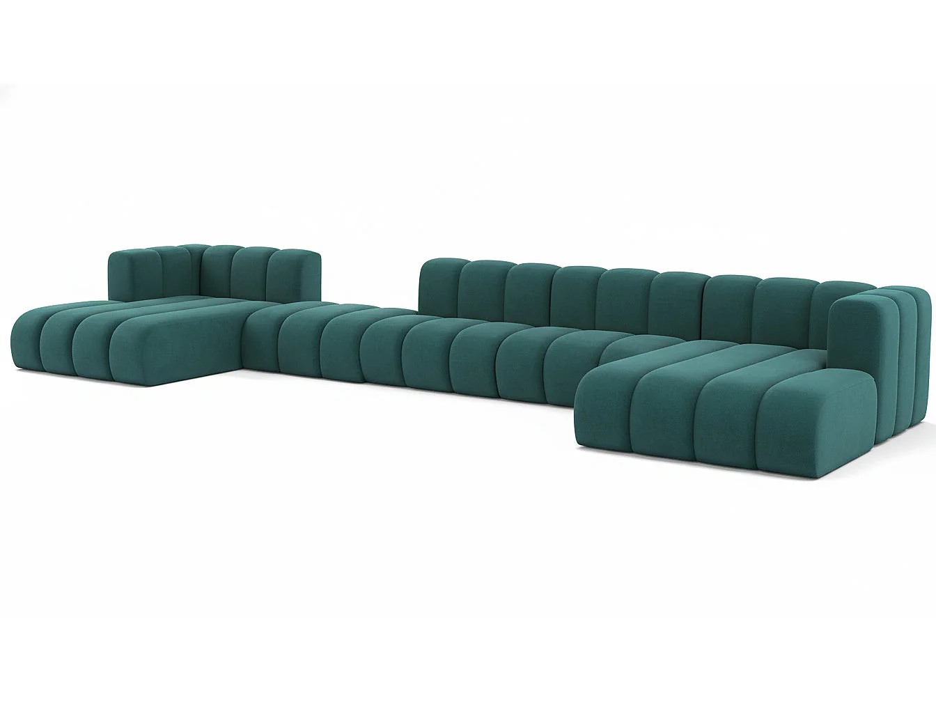 Hoekbank, U-vorm sofa Grand U Big XL 500 cm, veloursstof Salvador, Azuurblauw