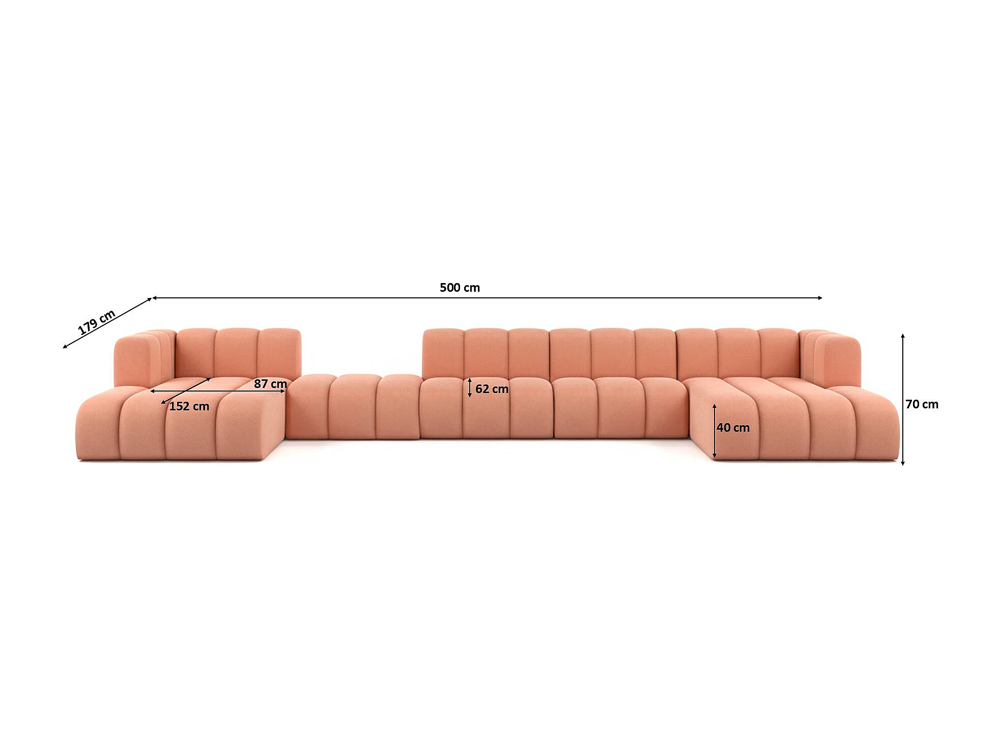 Hoekbank, U-vorm sofa Grand U Big XL 500 cm, veloursstof Salvador, Roze