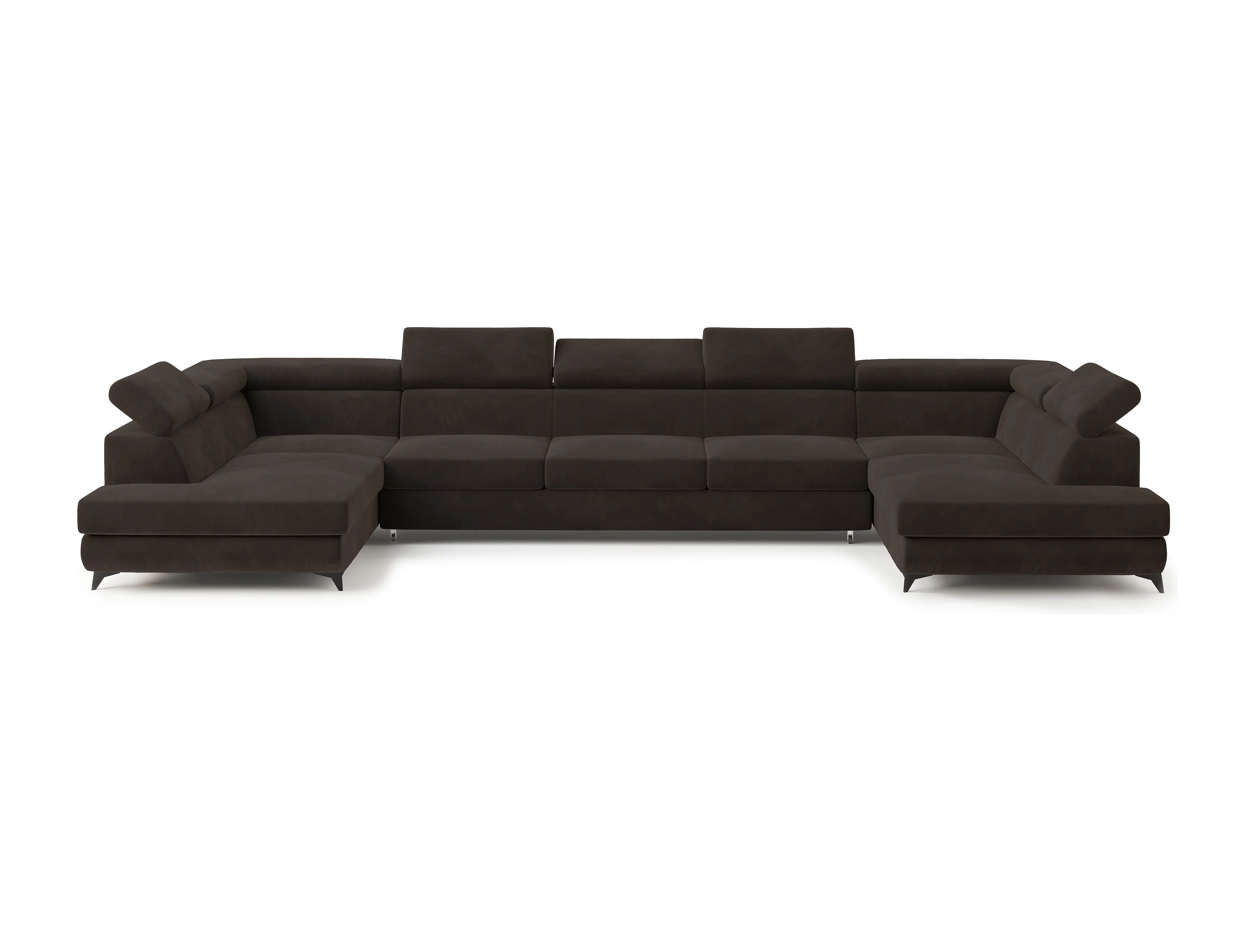 Hoekbank URMANO van fluweel met slaapfunctie Braun