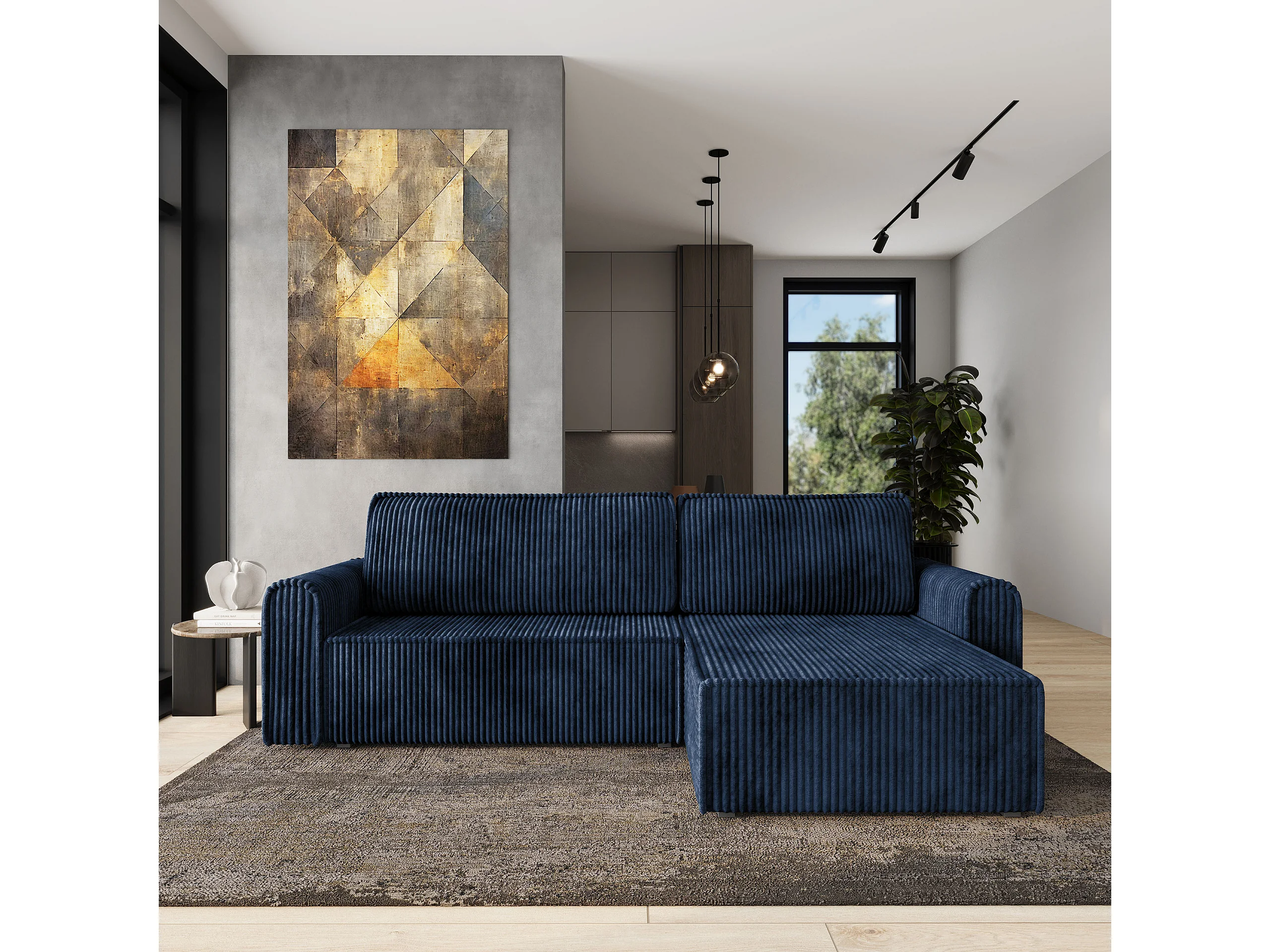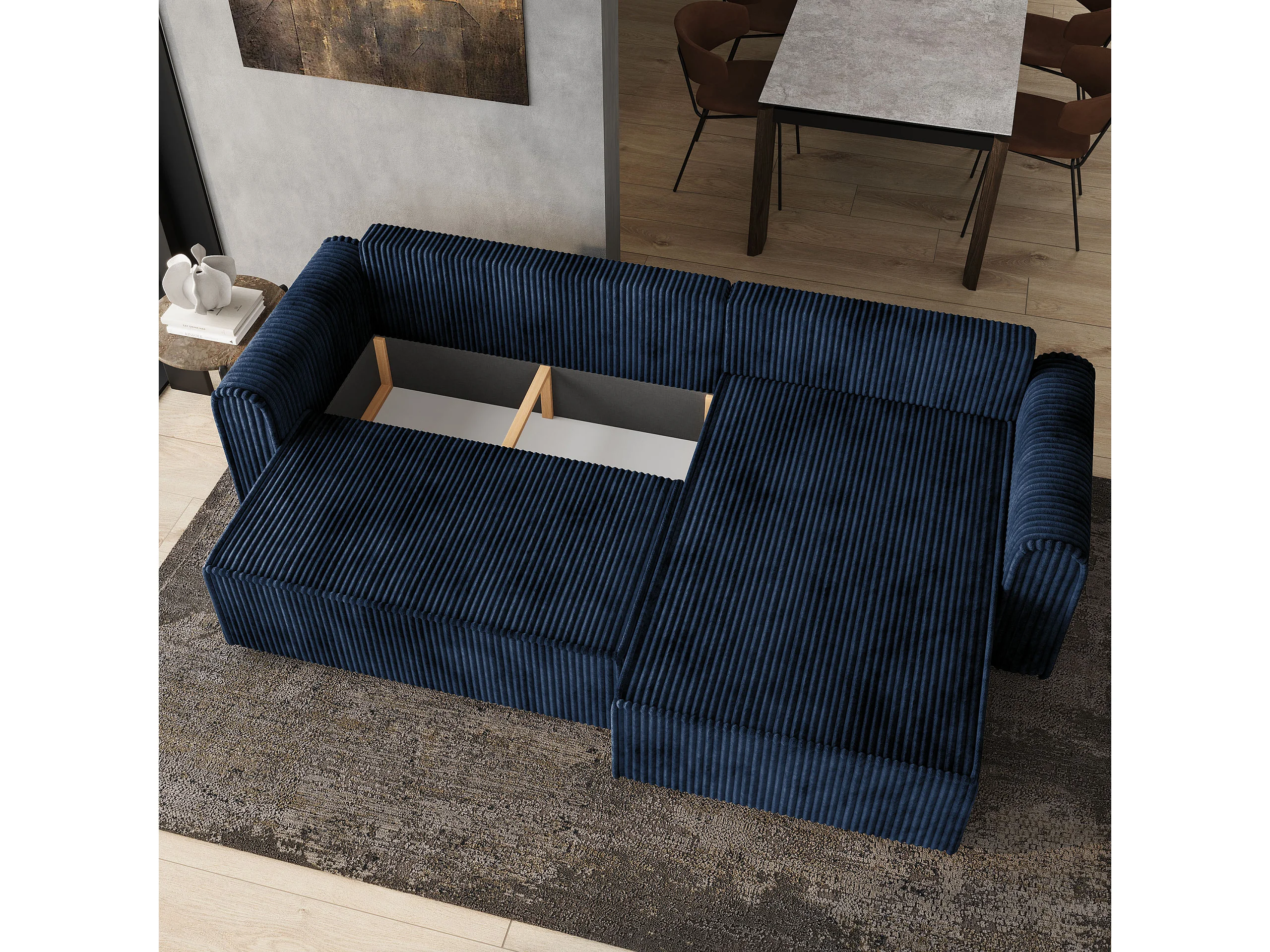 Hoekbank VALTINO van fluweel met slaapfunctie Blau