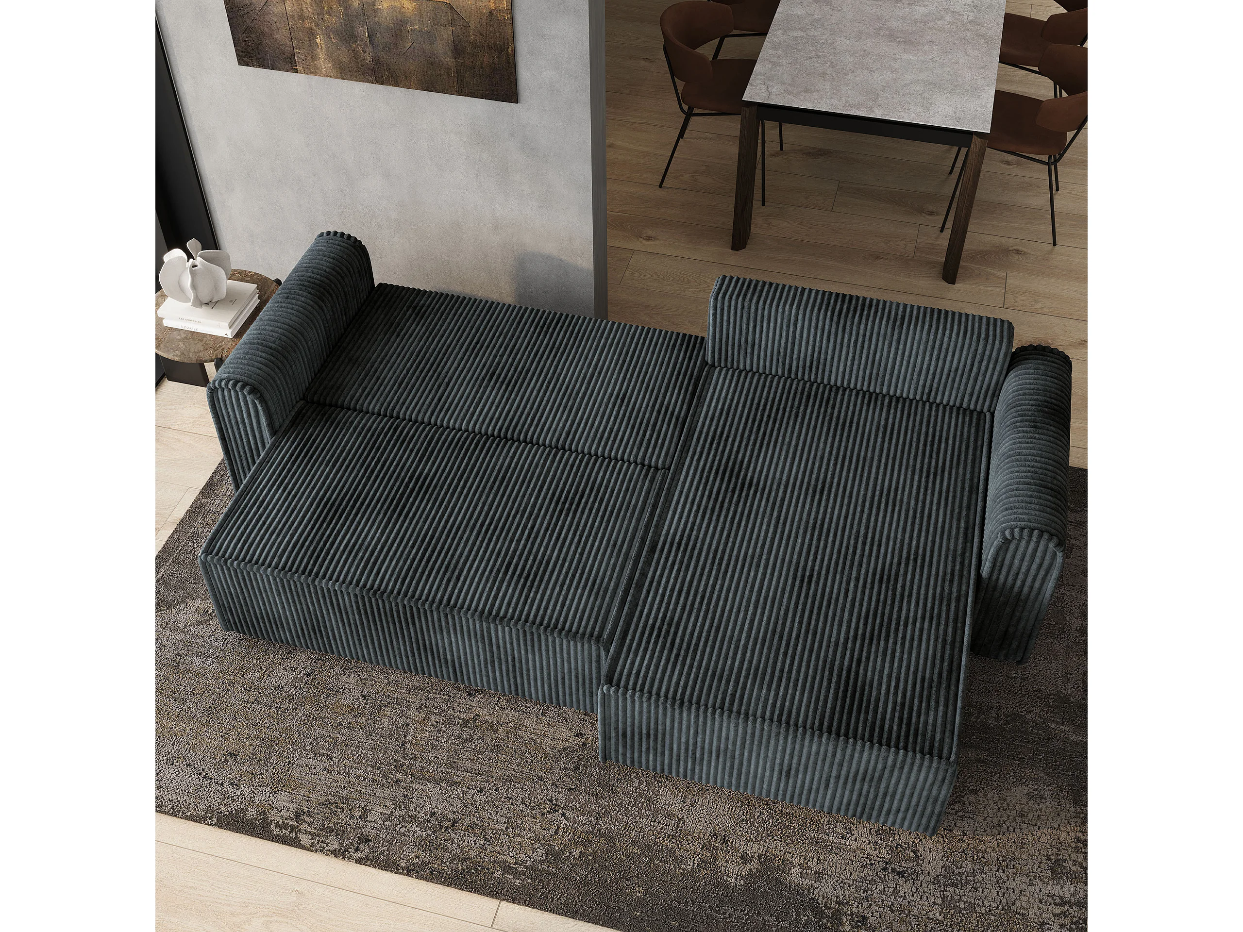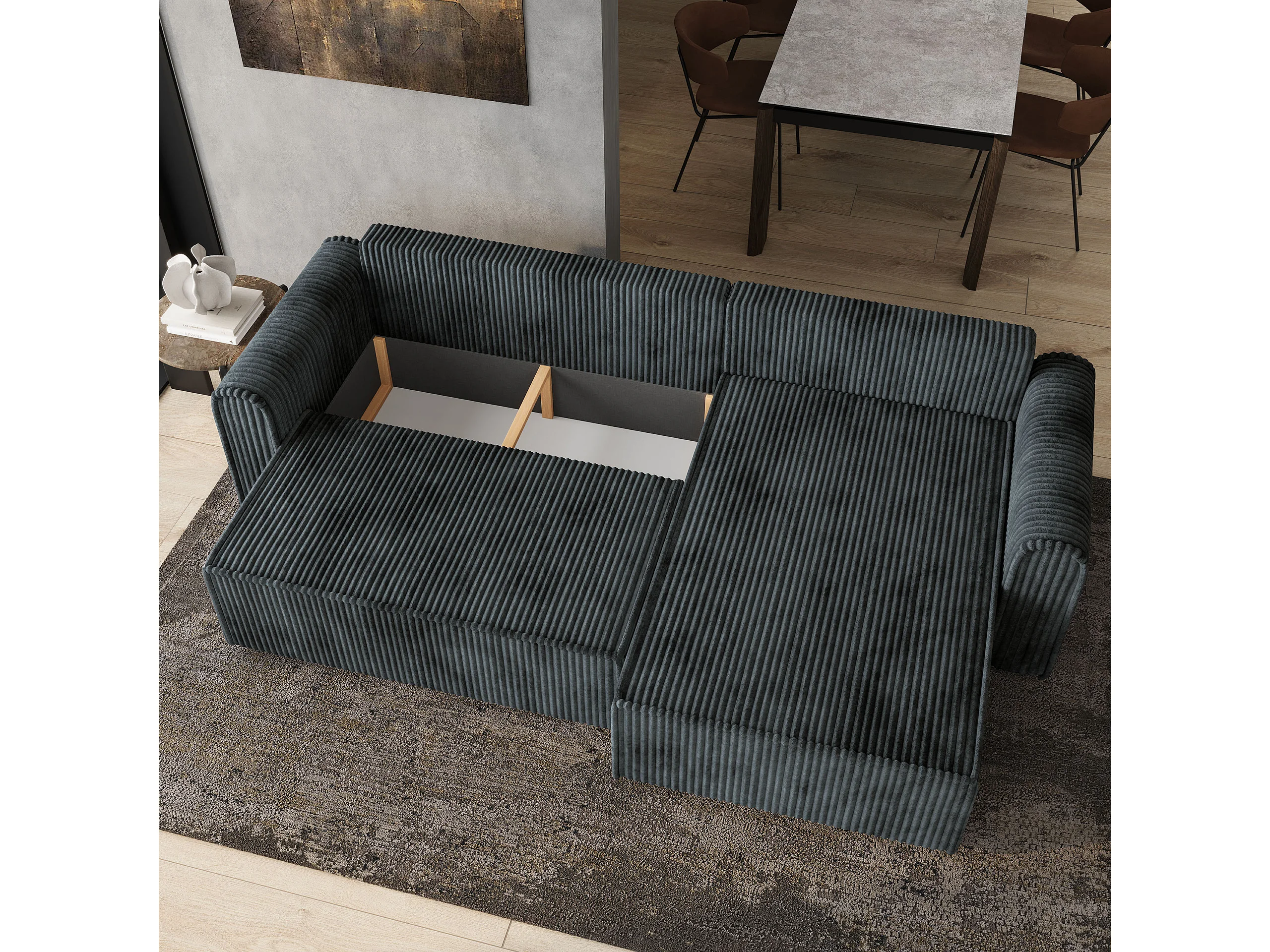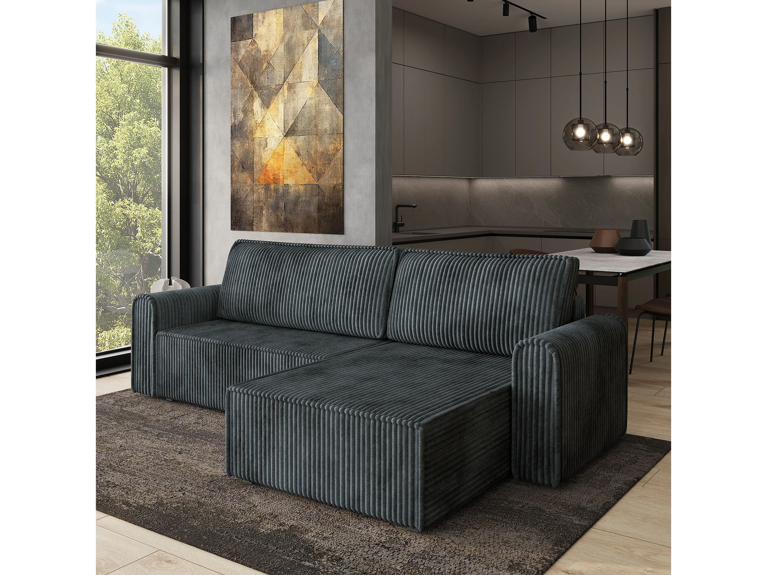 Hoekbank VALTINO van fluweel met slaapfunctie Grau