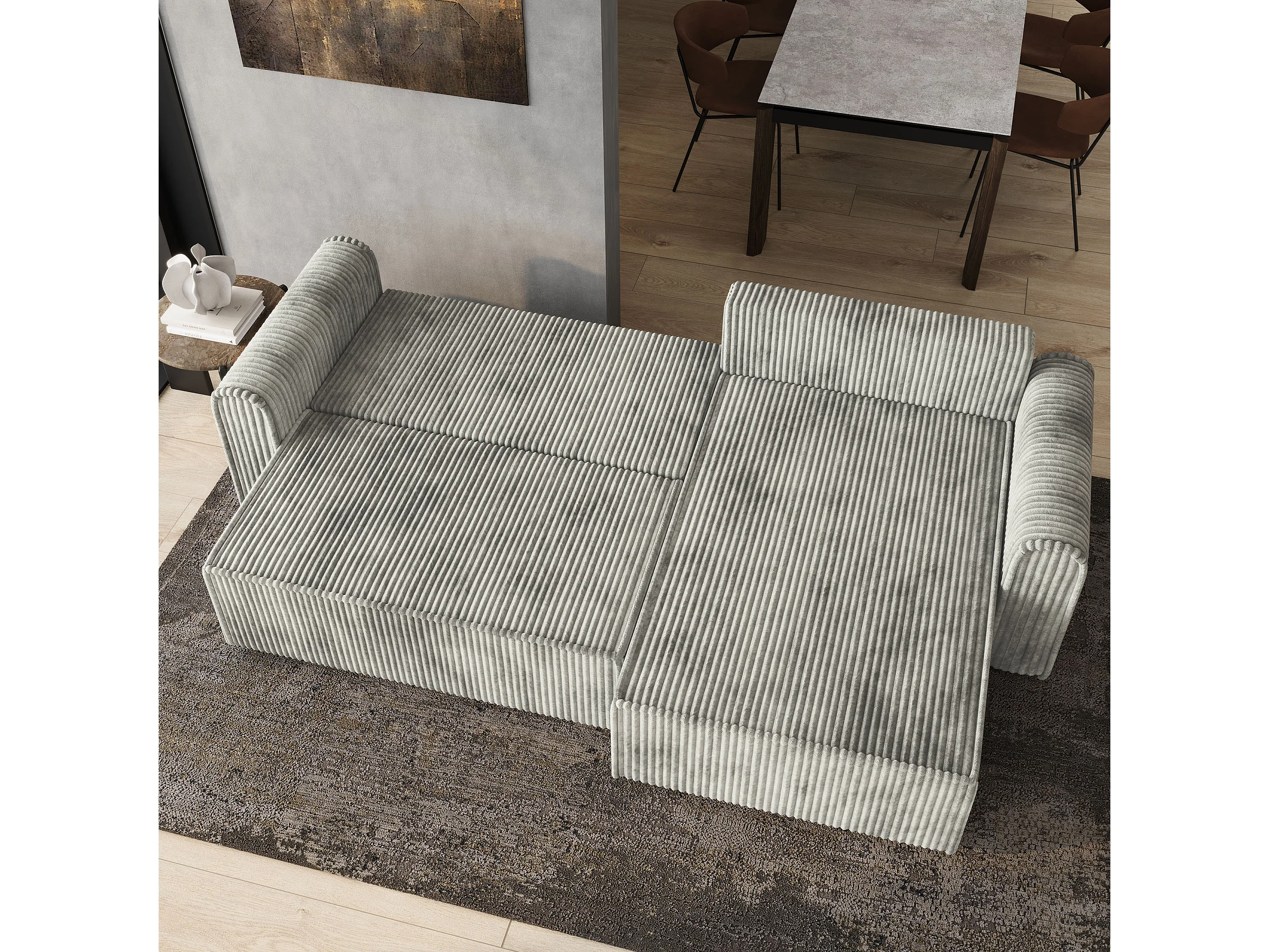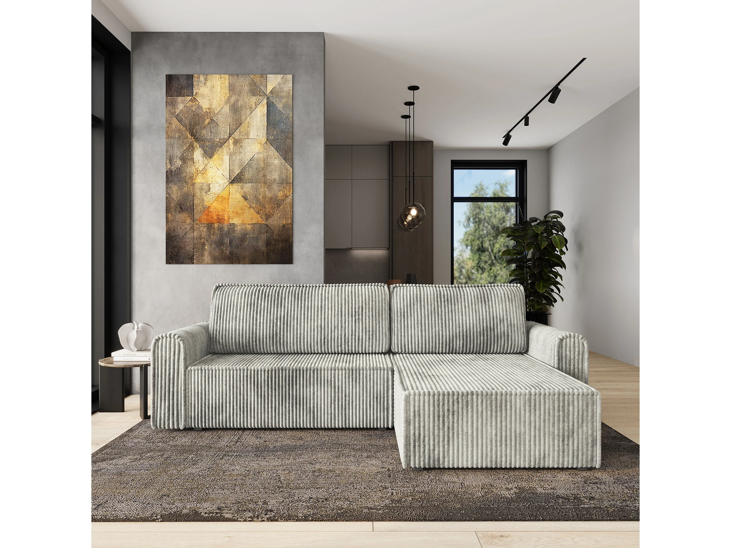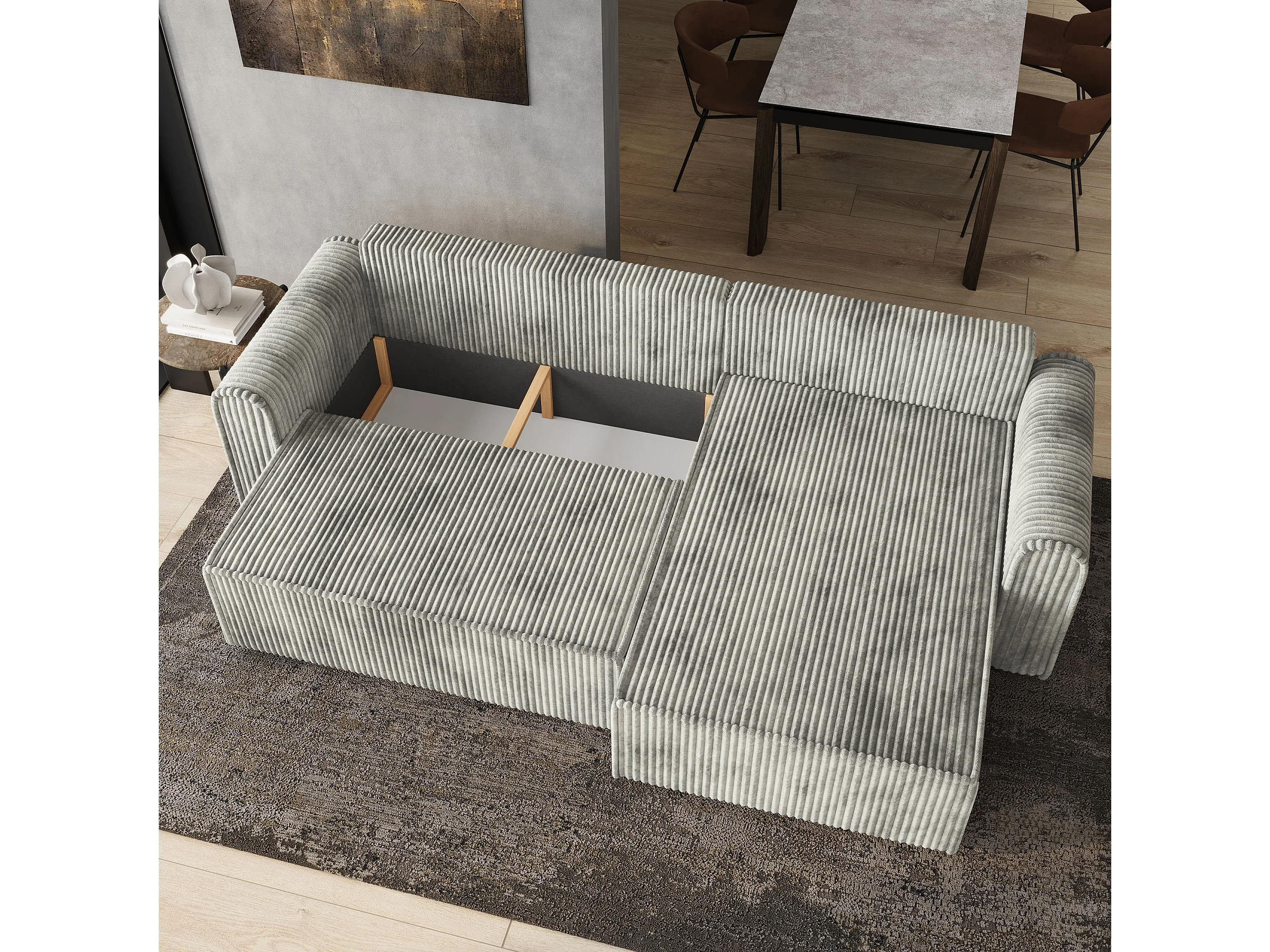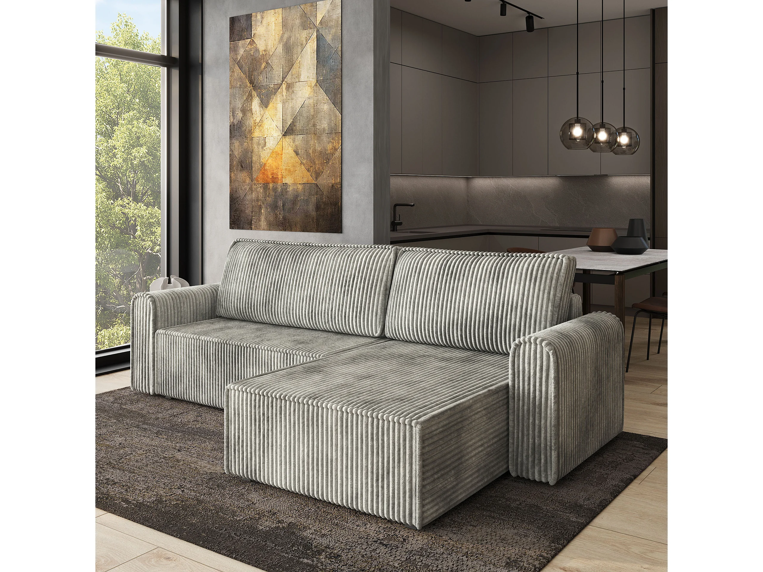 Hoekbank VALTINO van fluweel met slaapfunctie Hellgrau