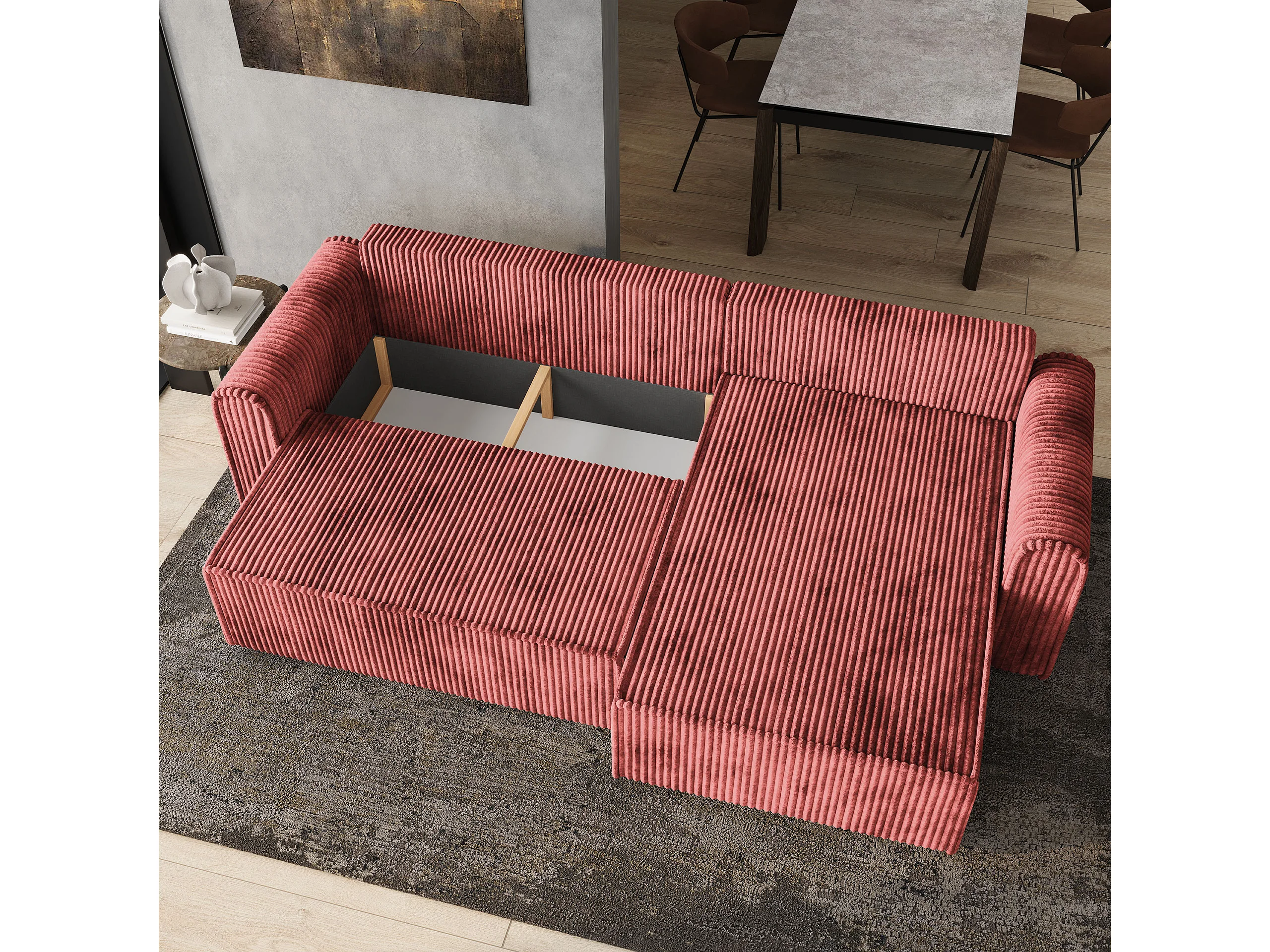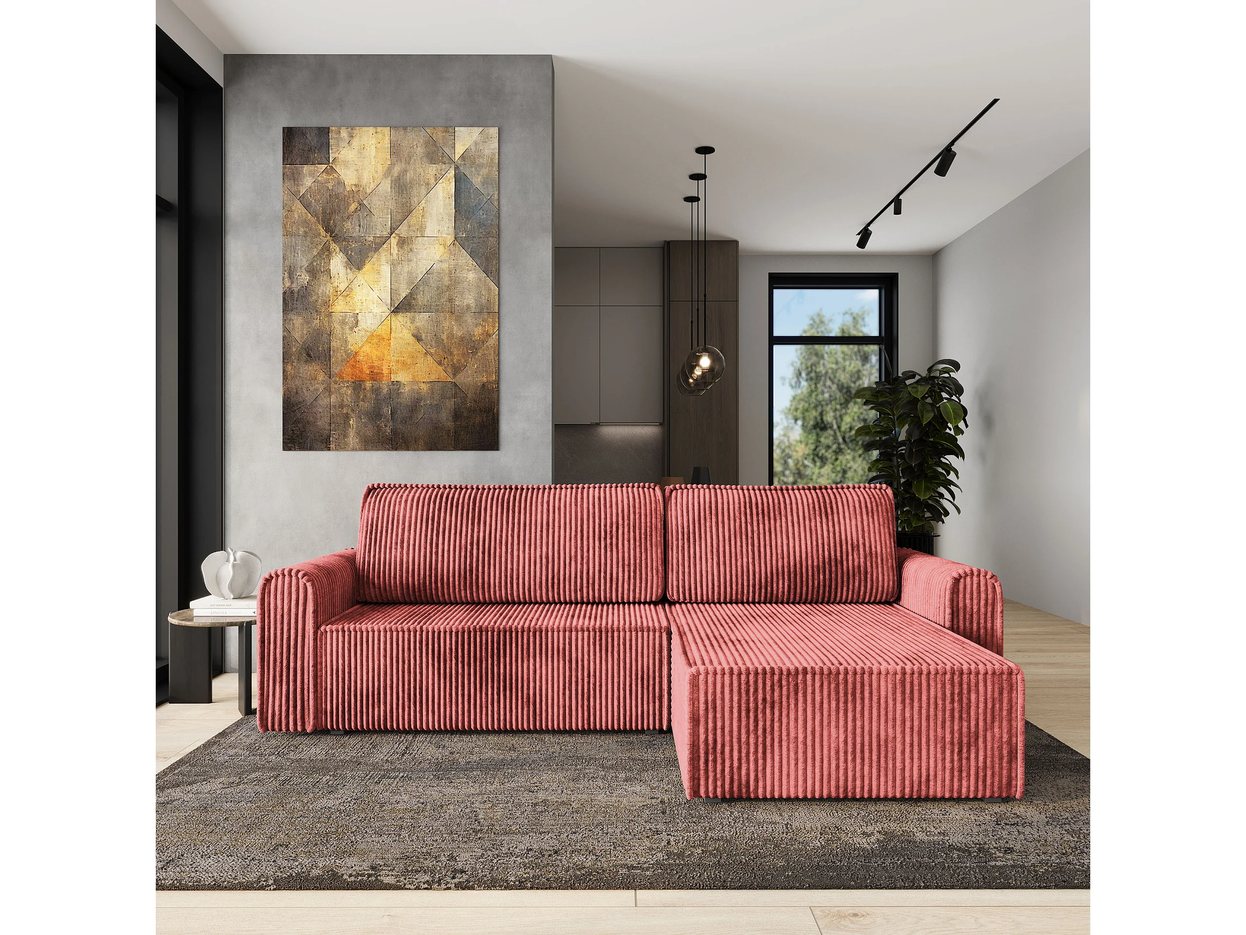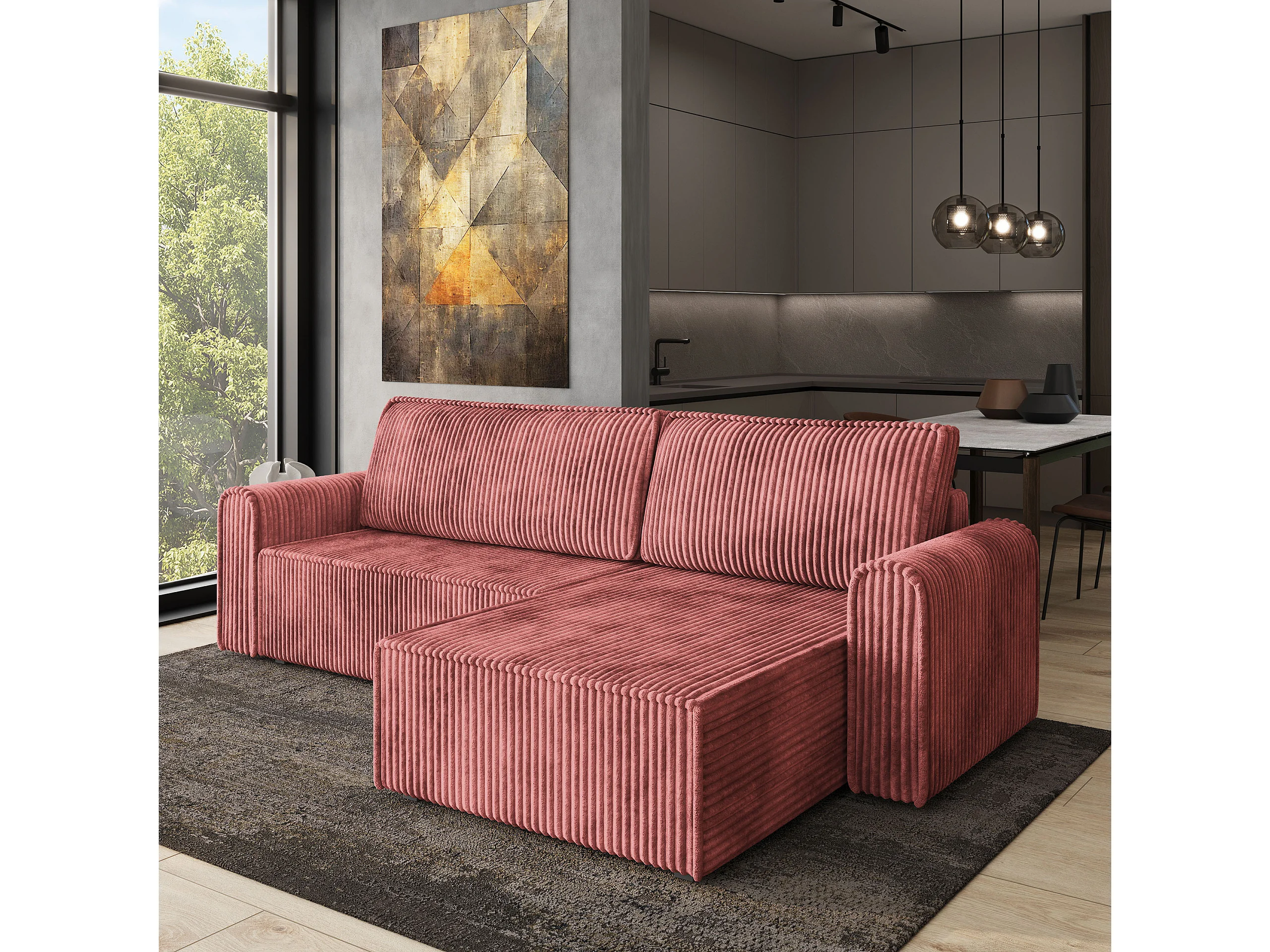 Hoekbank VALTINO van fluweel met slaapfunctie Rosa