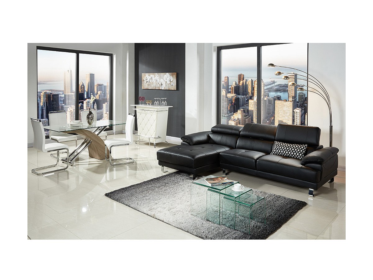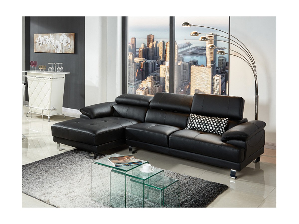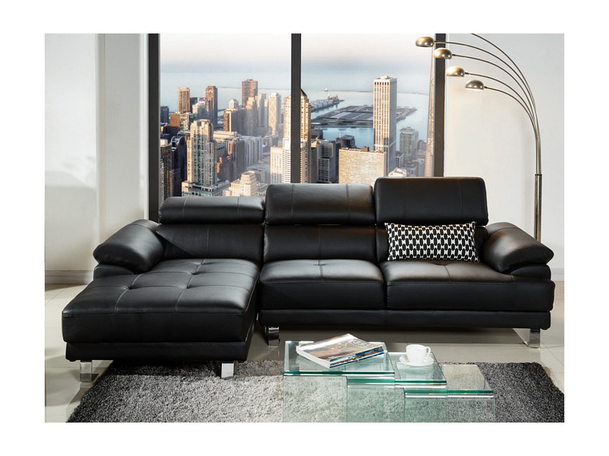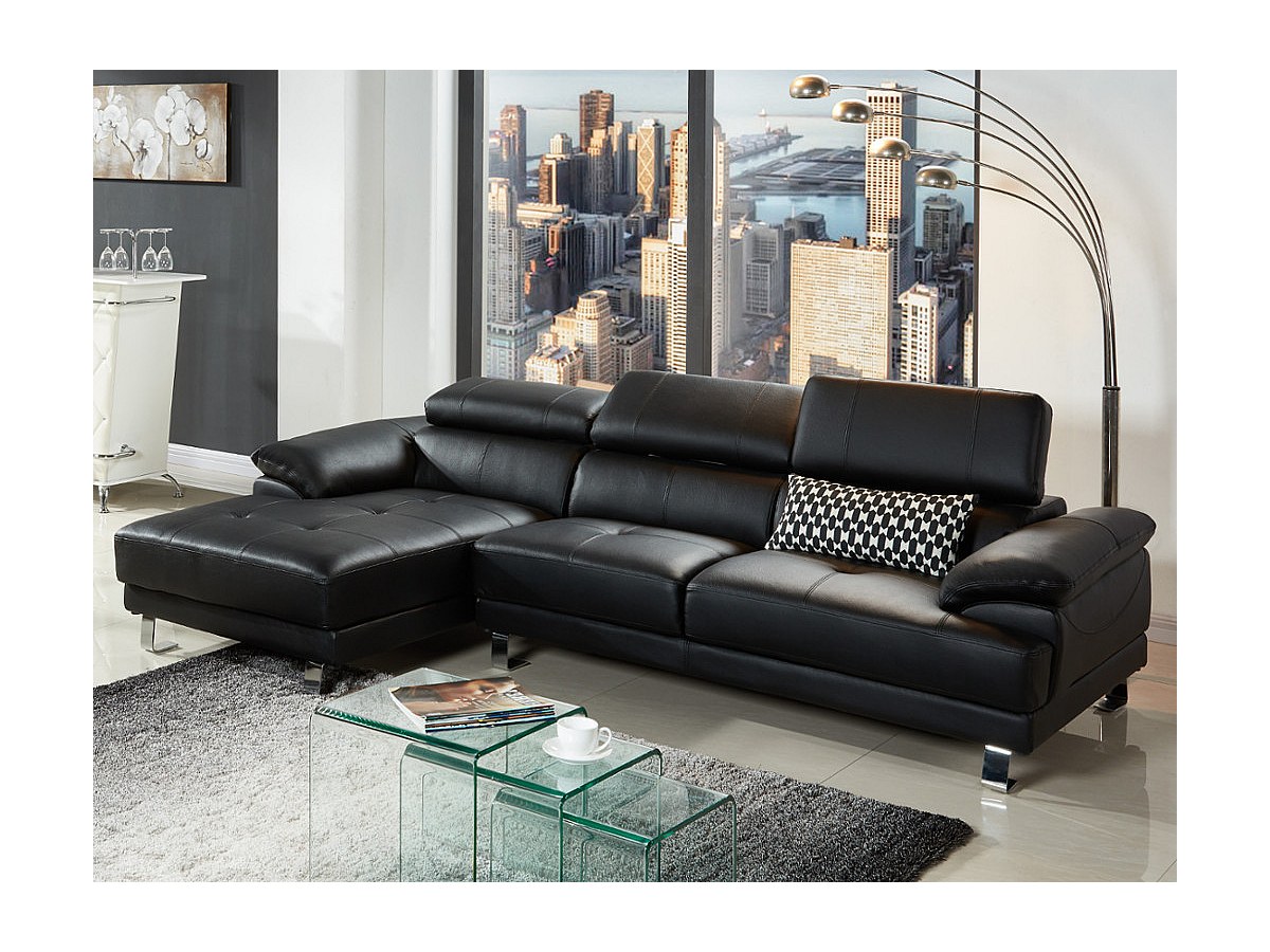 Hoekbank van hoogwaardig leer EXCELSIOR II - zwart - hoek links