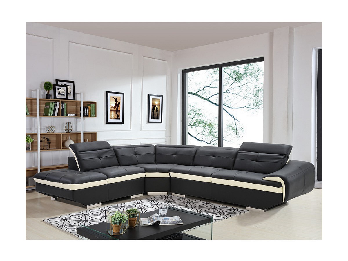 Hoekbank van buffelleer LOMANDE - Zwart - Hoek links