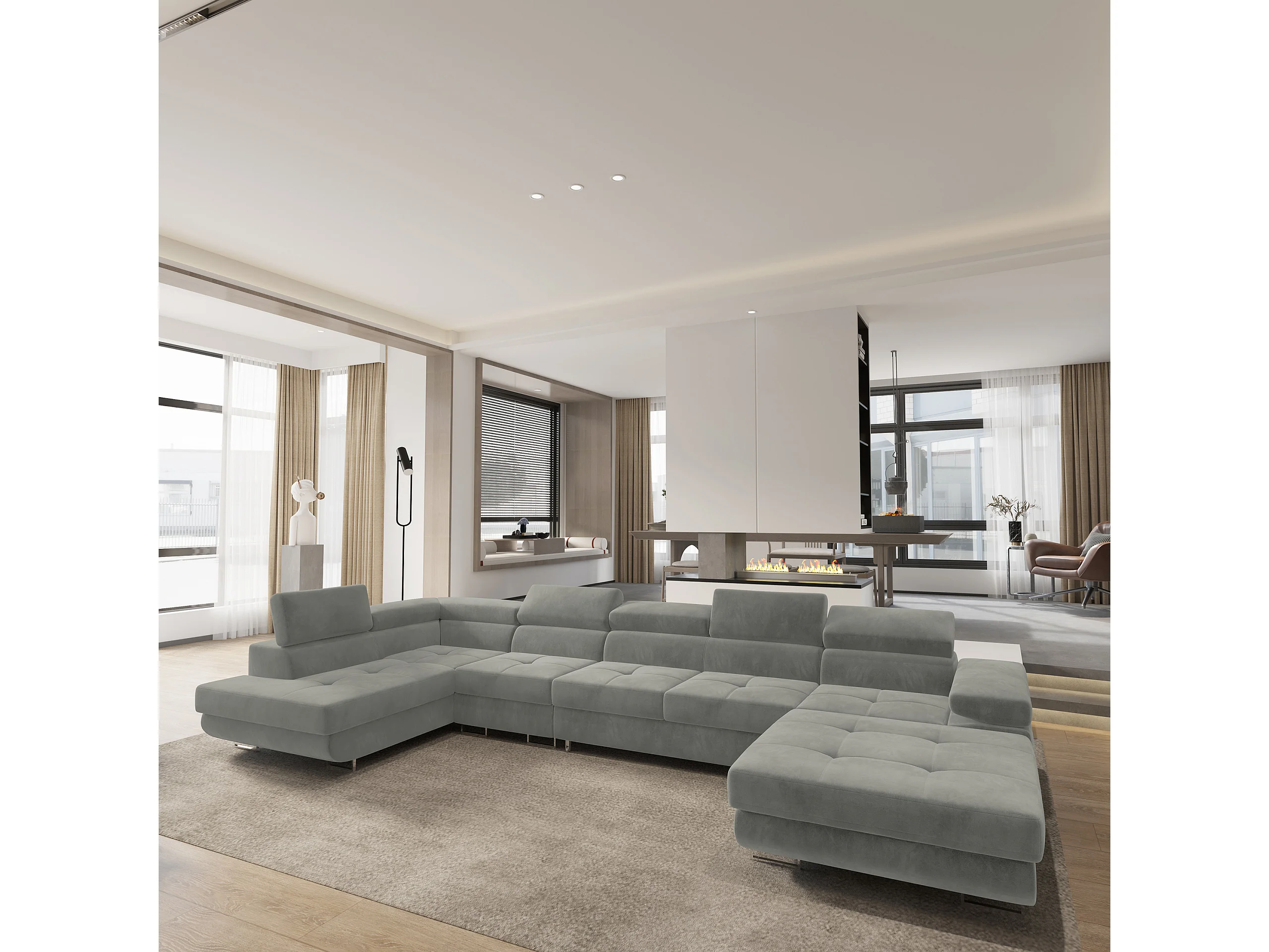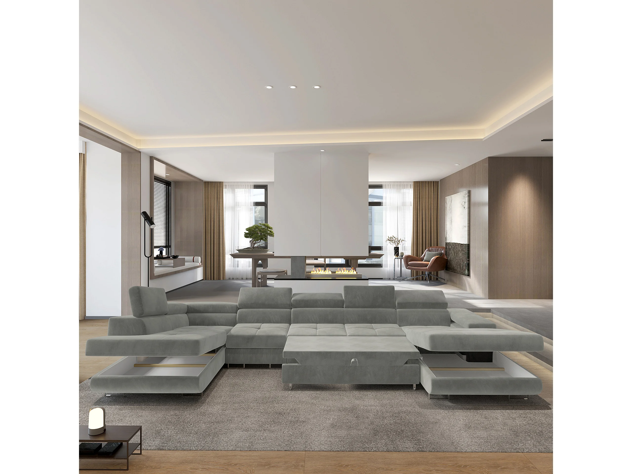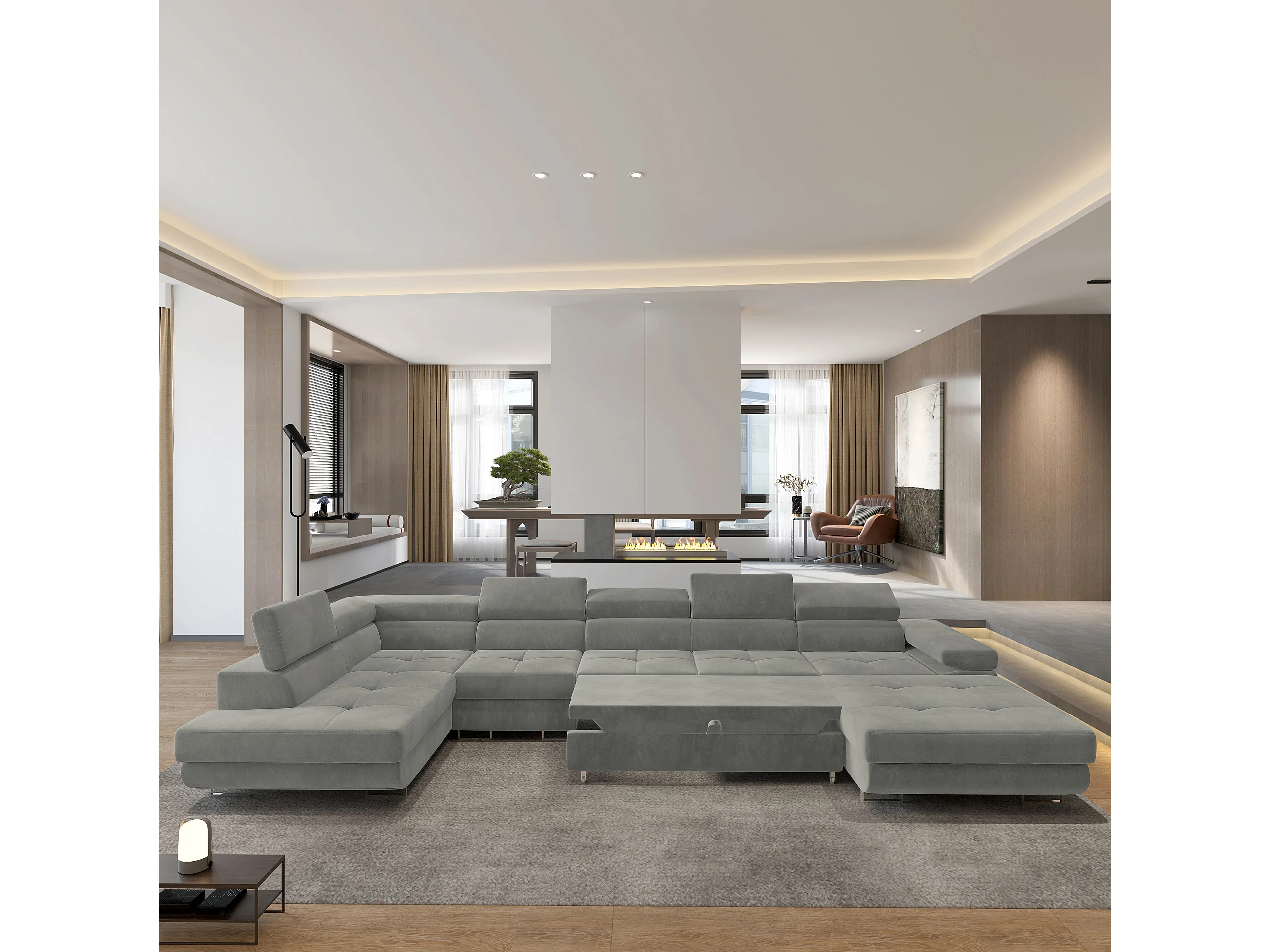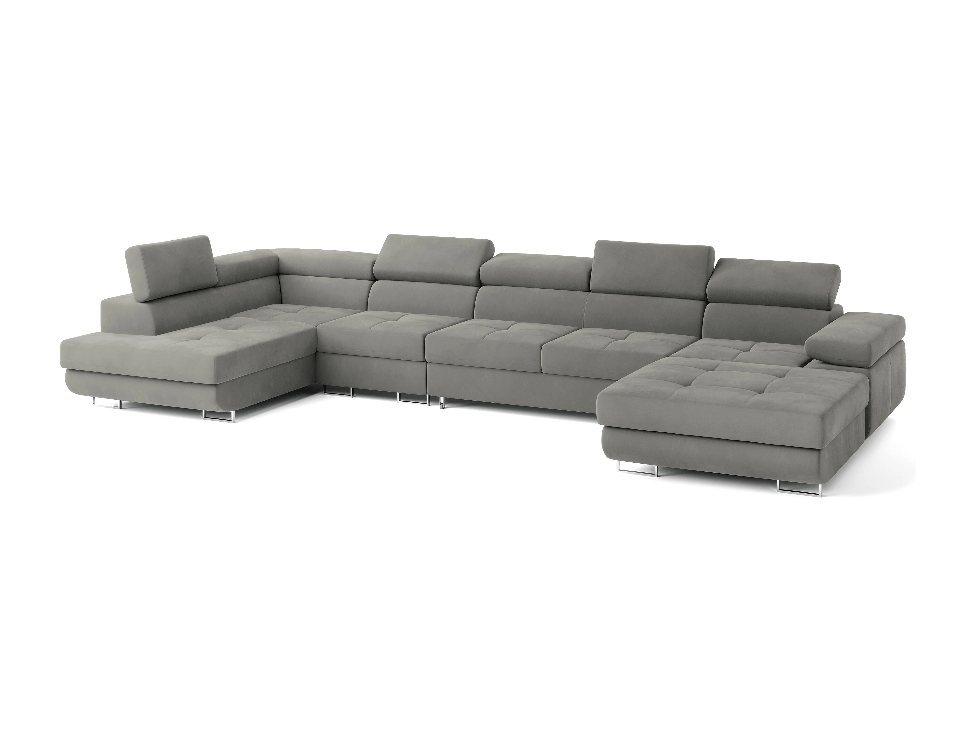 Hoekbank VELORA van fluweel met slaapfunctie Hellgrau